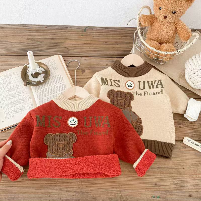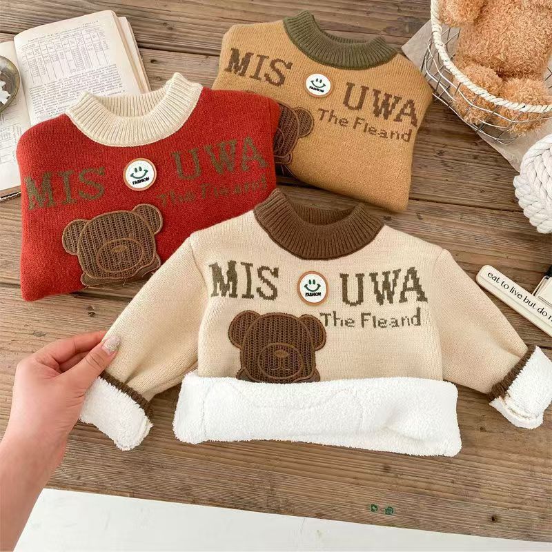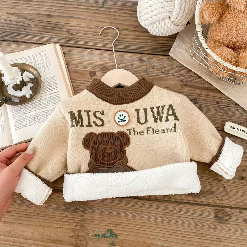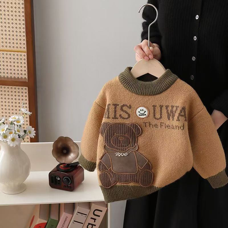 헤어 캐시미어 소년 스웨터 어린이 스웨터 풀오버 크루 넥 어린이 외국 스타일 곰 겨울 코트스토어 가기