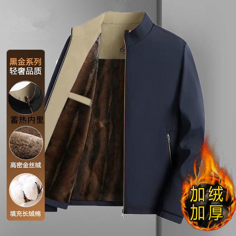 가을과 겨울 새로운 중년 남성 코트 스탠드 칼라 기모 두꺼운 재킷 캐주얼 따뜻한 아버지 코트스토어 가기