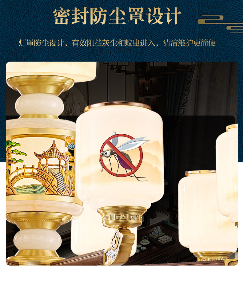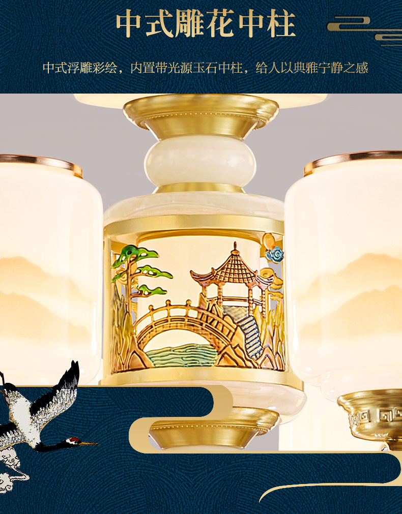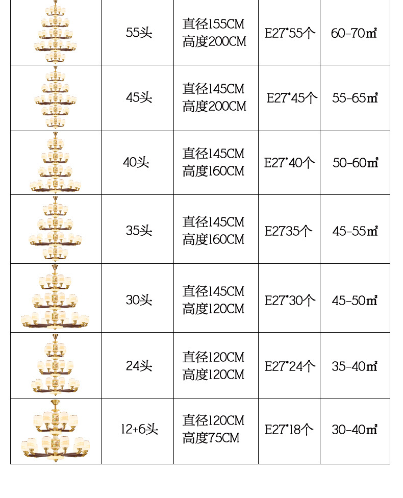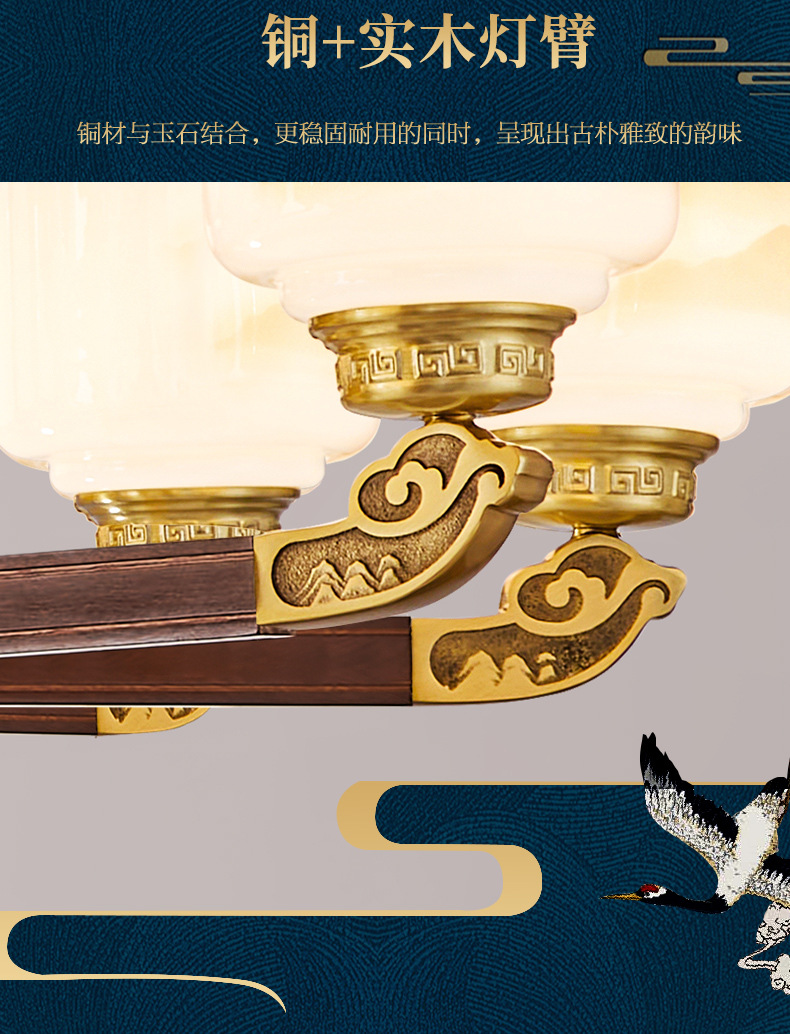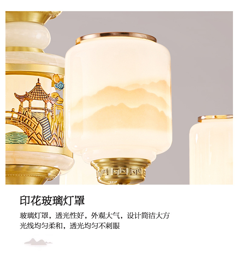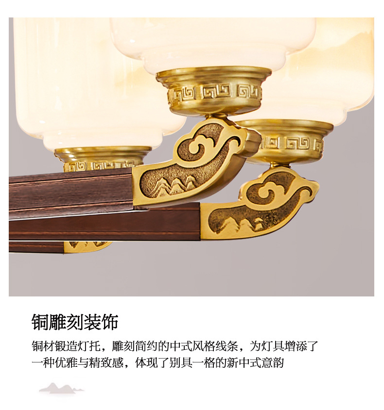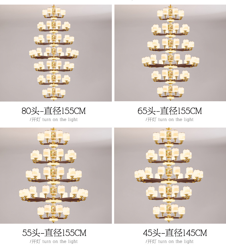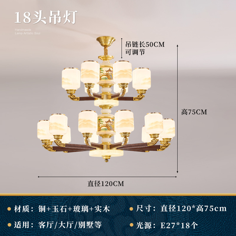 빌라 샹들리에 새로운 중국 스타일의 모든 구리 거실 중공 이중 건물 분위기 자체 제작 된 단단한 목재 옥 램프 도매