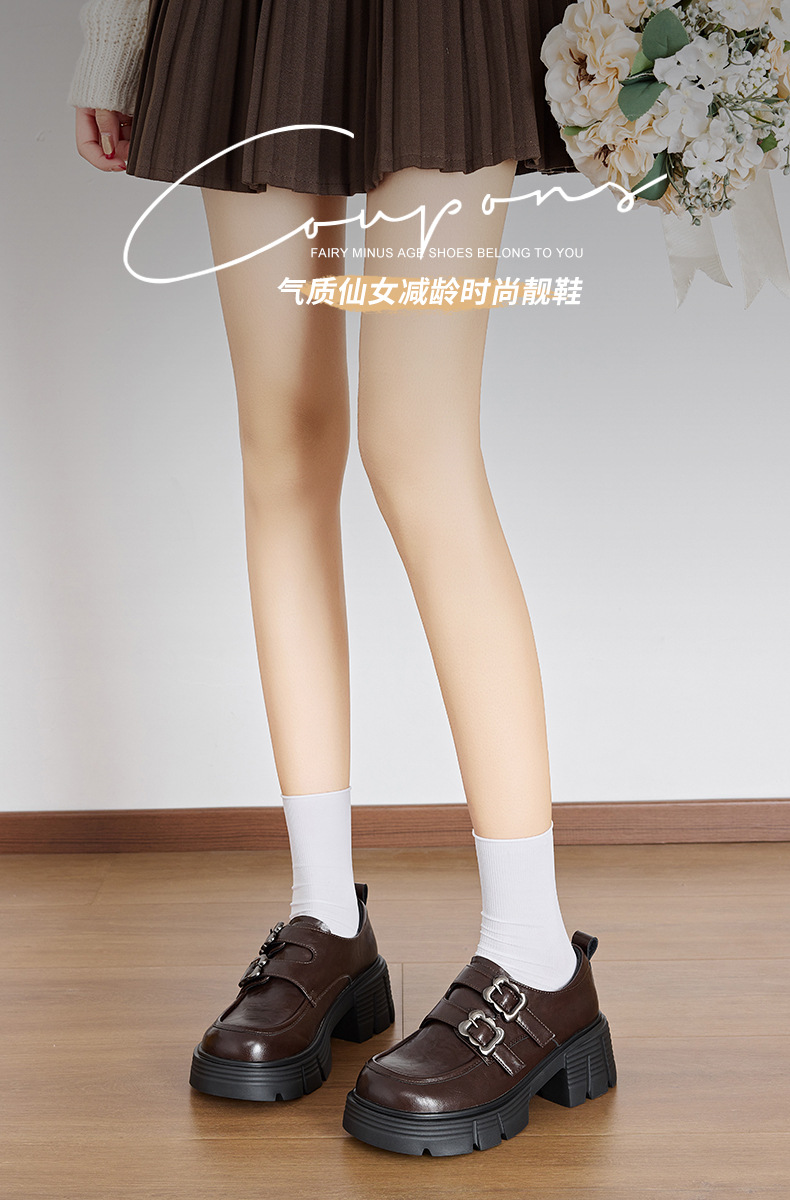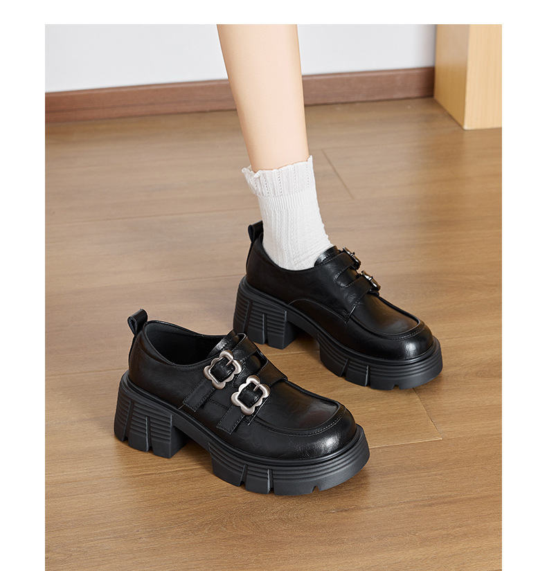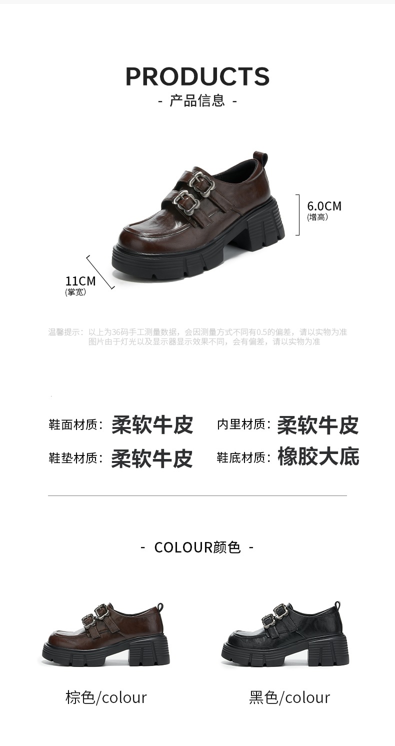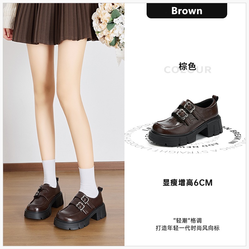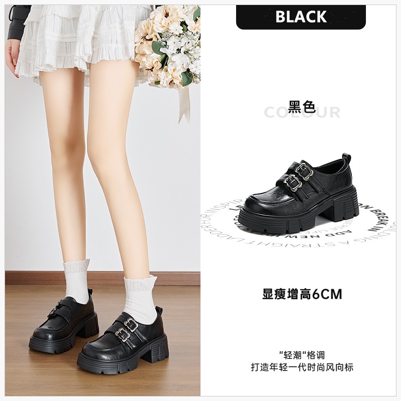 전체 소가죽~영국풍 레트로 두꺼운 밑창 로퍼 2025 가을 겨울 신상 블랙 굽높이 증가 여성용 가죽 신발스토어 가기