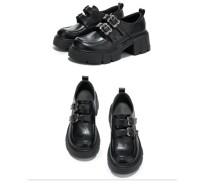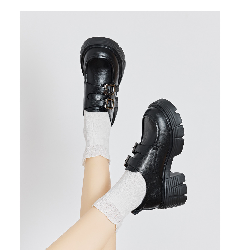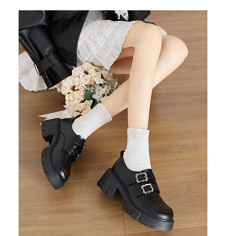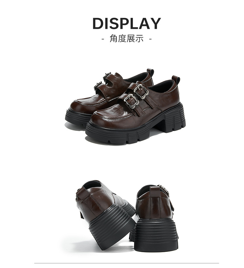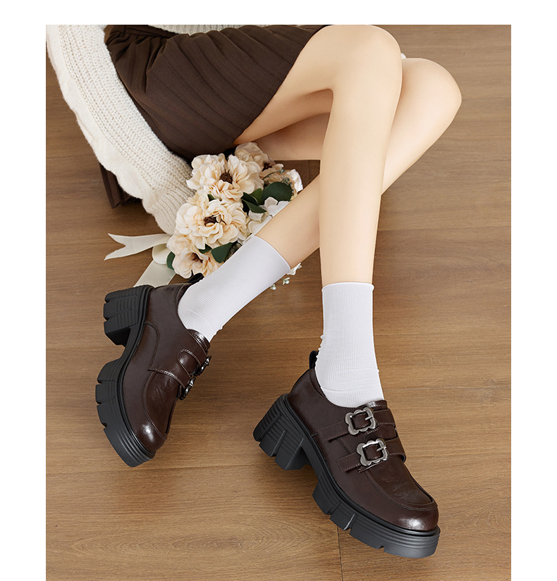전체 소가죽~영국풍 레트로 두꺼운 밑창 로퍼 2025 가을 겨울 신상 블랙 굽높이 증가 여성용 가죽 신발스토어 가기