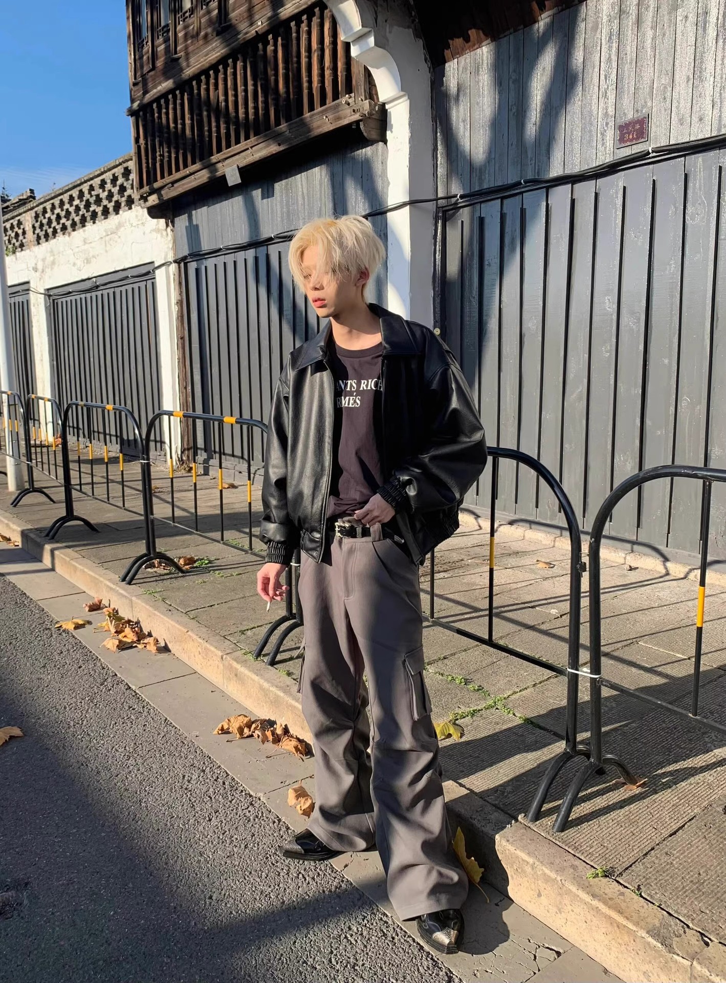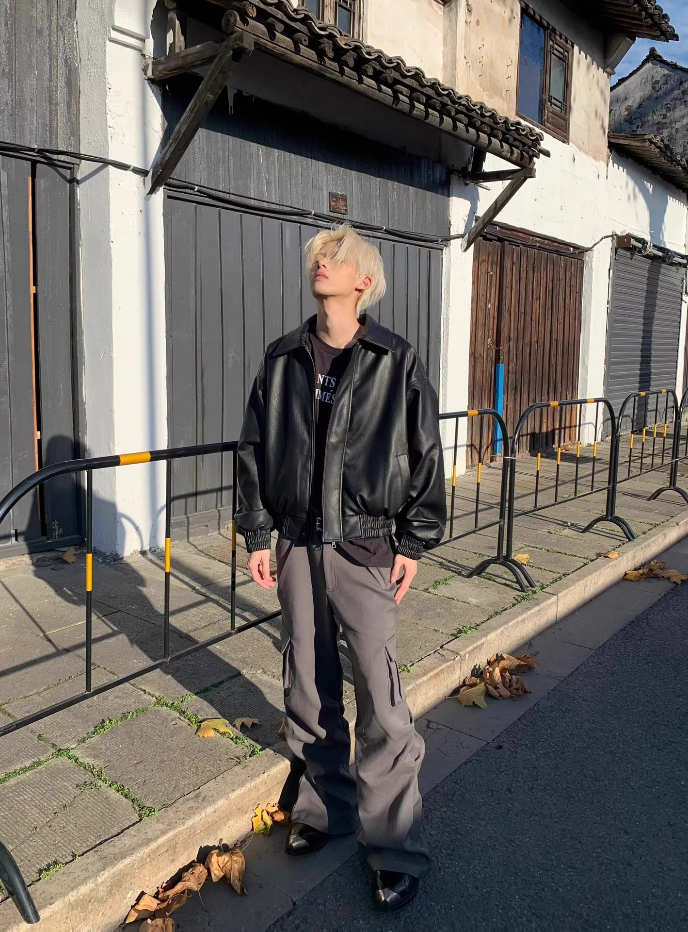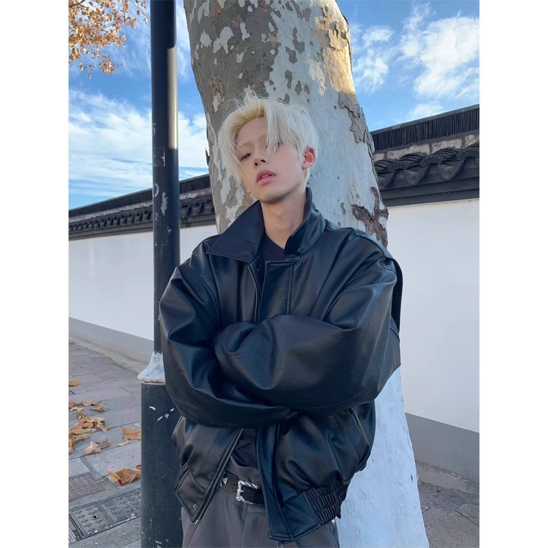 블랙 쇼트 아메리칸 스타일 클렌핏 가죽 자켓 남성 가을과 겨울 하이 엔드 느낌의 새로운 스타일 핸섬 에비에이터 재킷스토어 가기