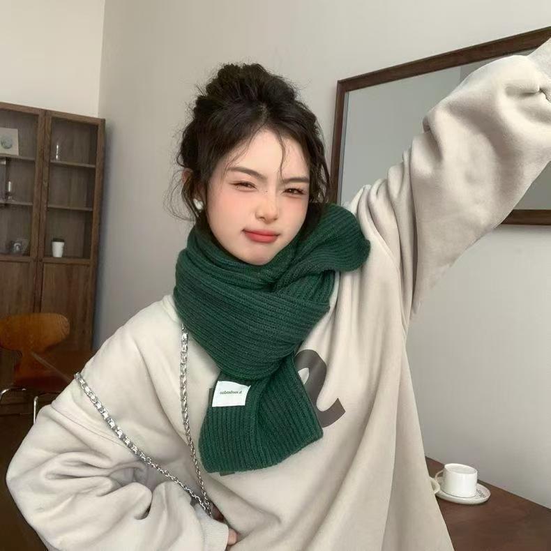새로운 한국어 버전 가을과 겨울 부드러운 니트 양모 스카프 여자 올 매치 따뜻한 학생 단색 원단 스카프 두꺼운 사랑 루