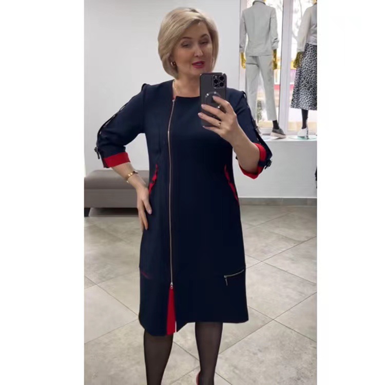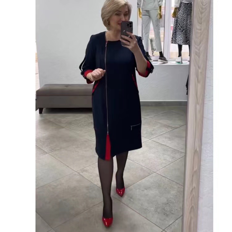 2025 새로운 AliExpress 아마존 크로스 국경 패션 사이드 지퍼 재킷 Y 크루 넥 긴 원피스 패션스토어 가기