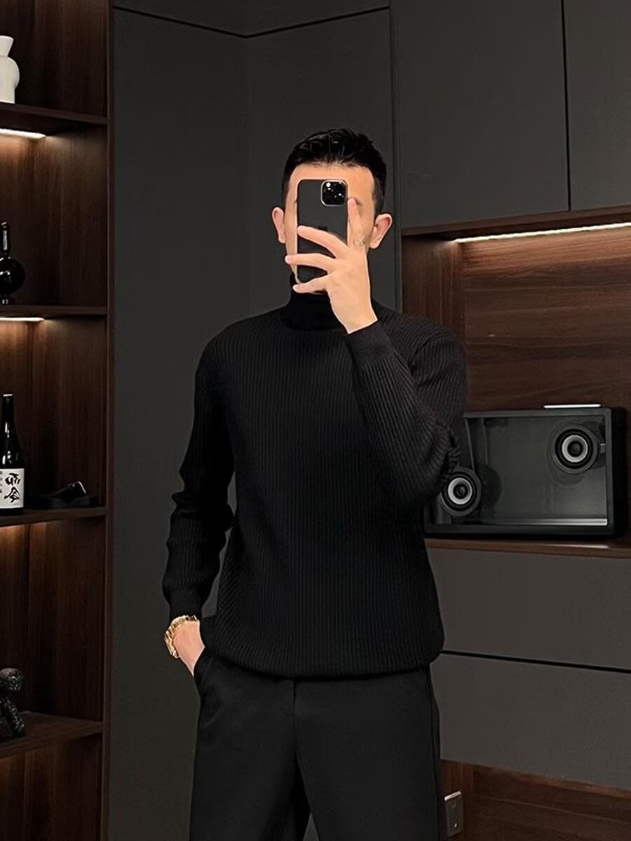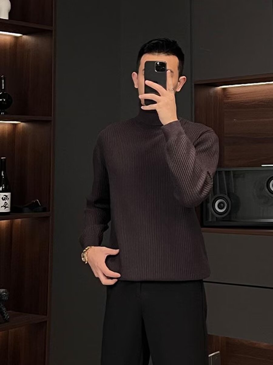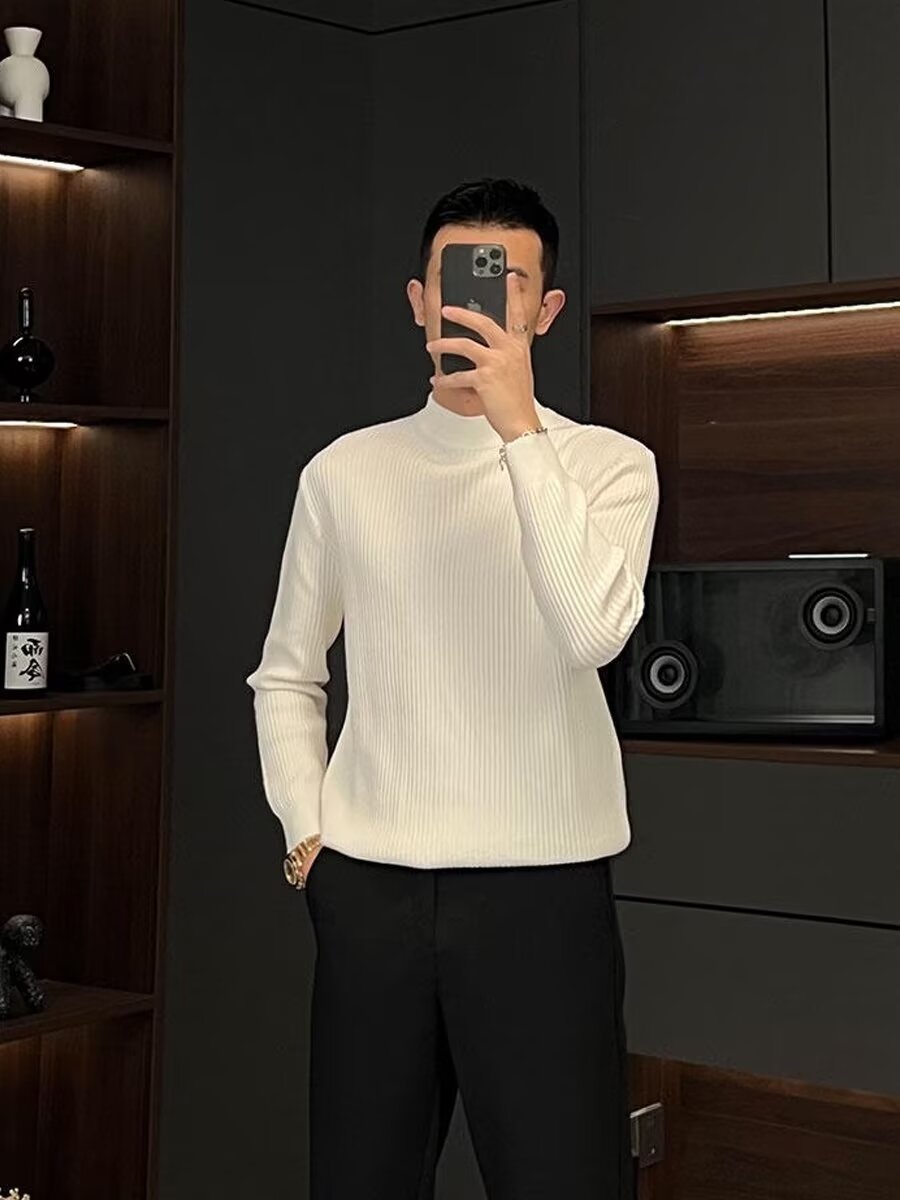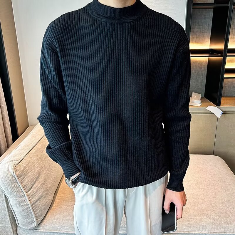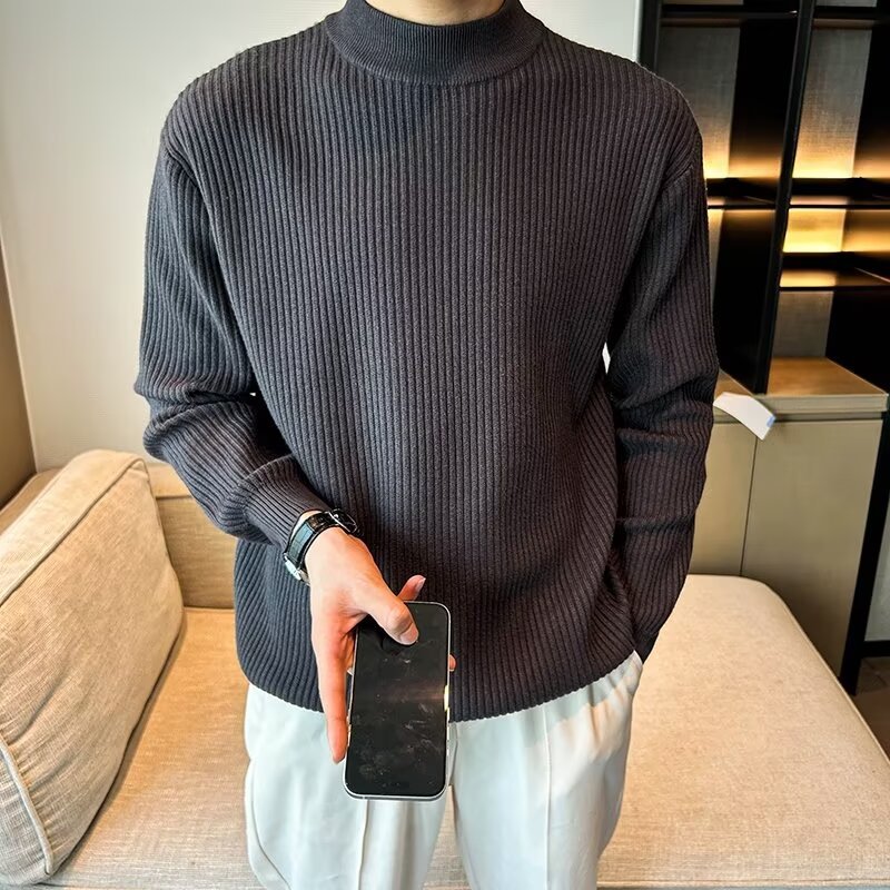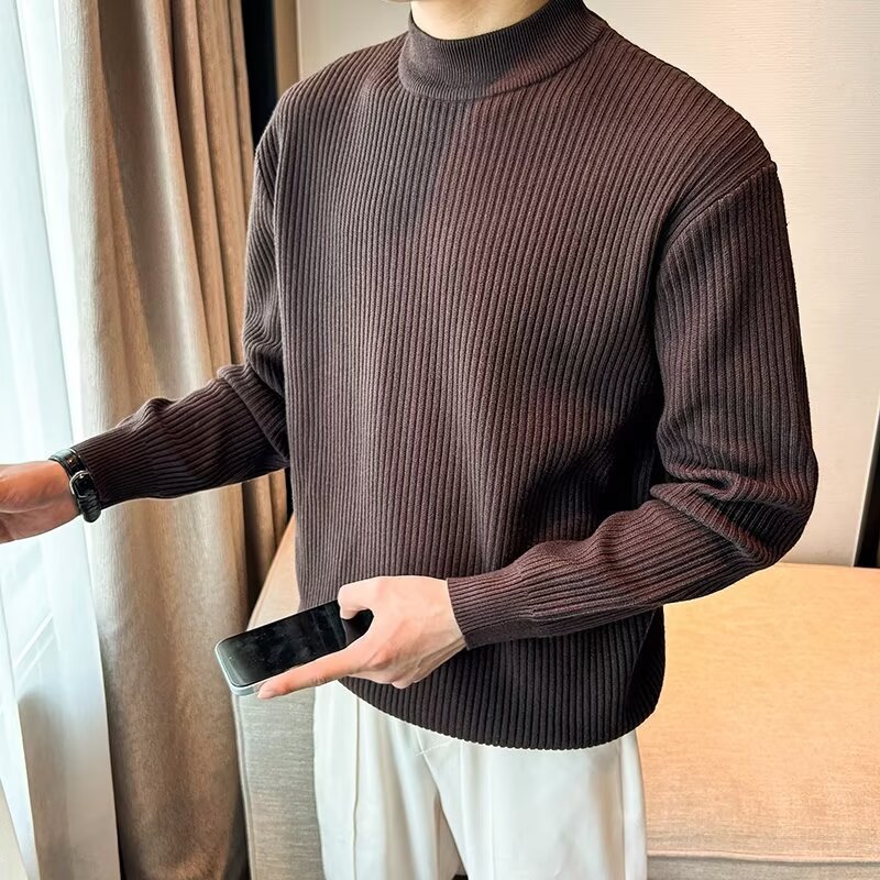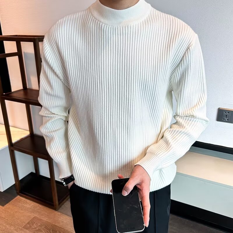 질감 반 터틀넥 스웨터 남자의 가을과 겨울 스트레치 슬림 핏 줄무늬 긴팔 스웨터 따뜻한 내베이스 셔츠스토어 가기