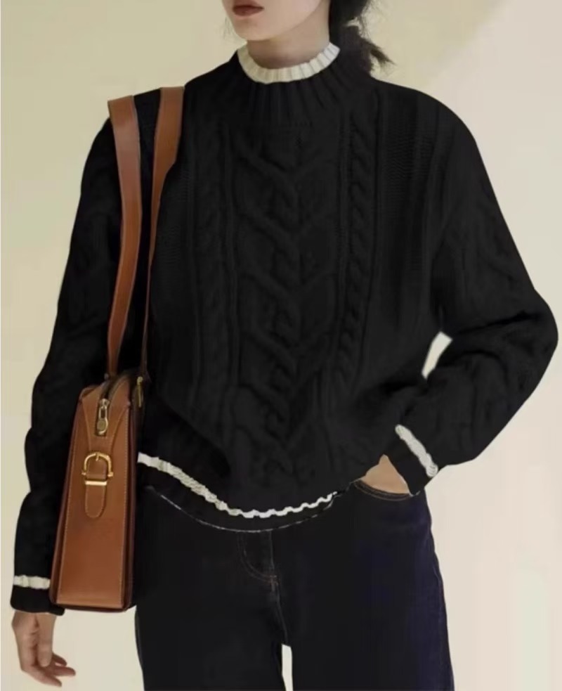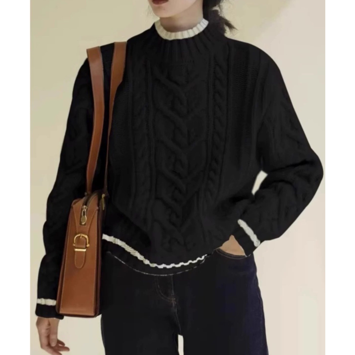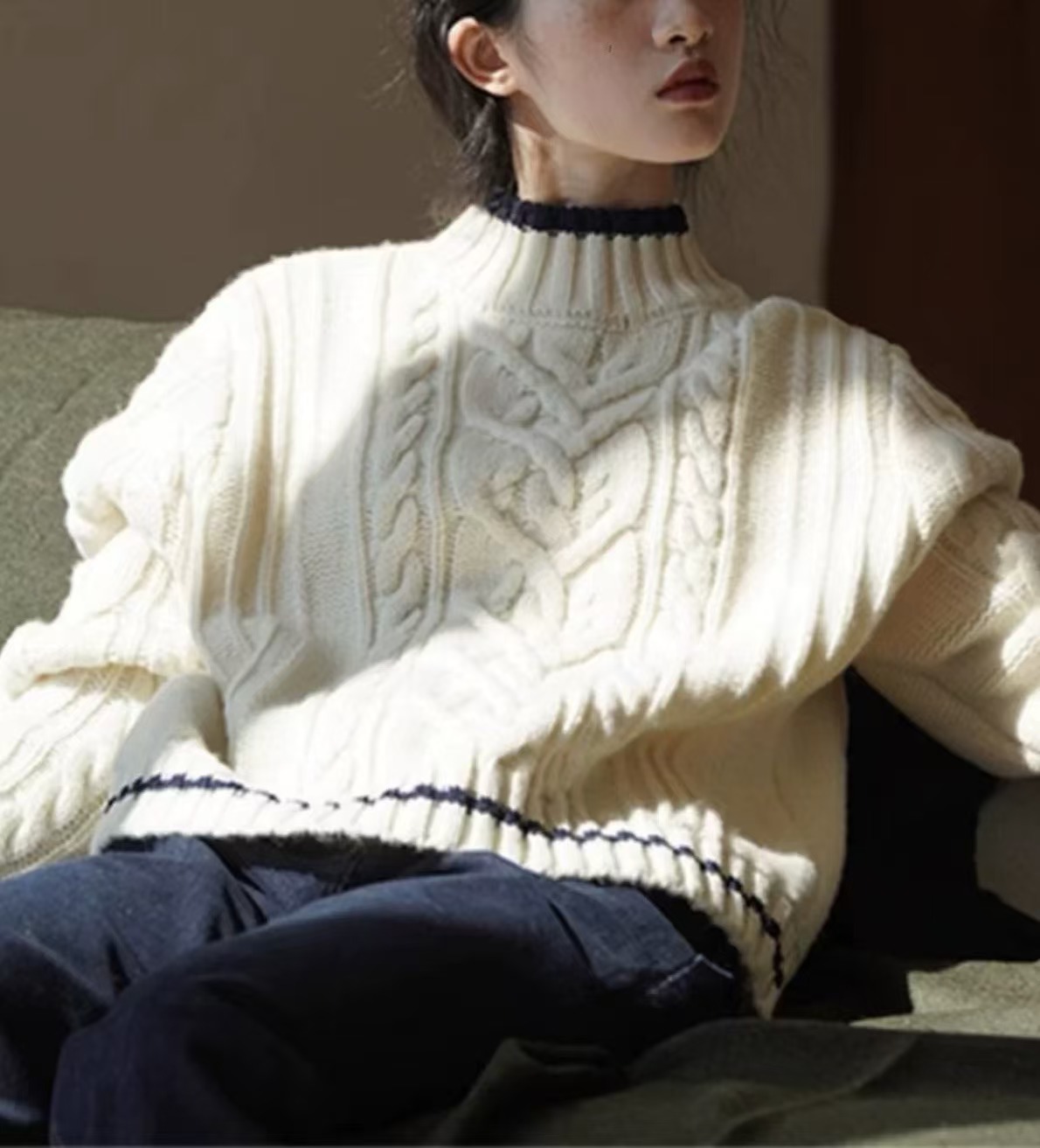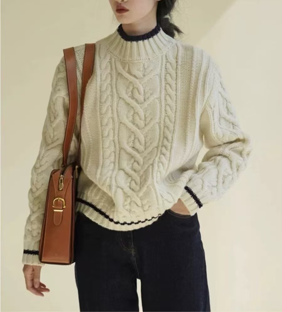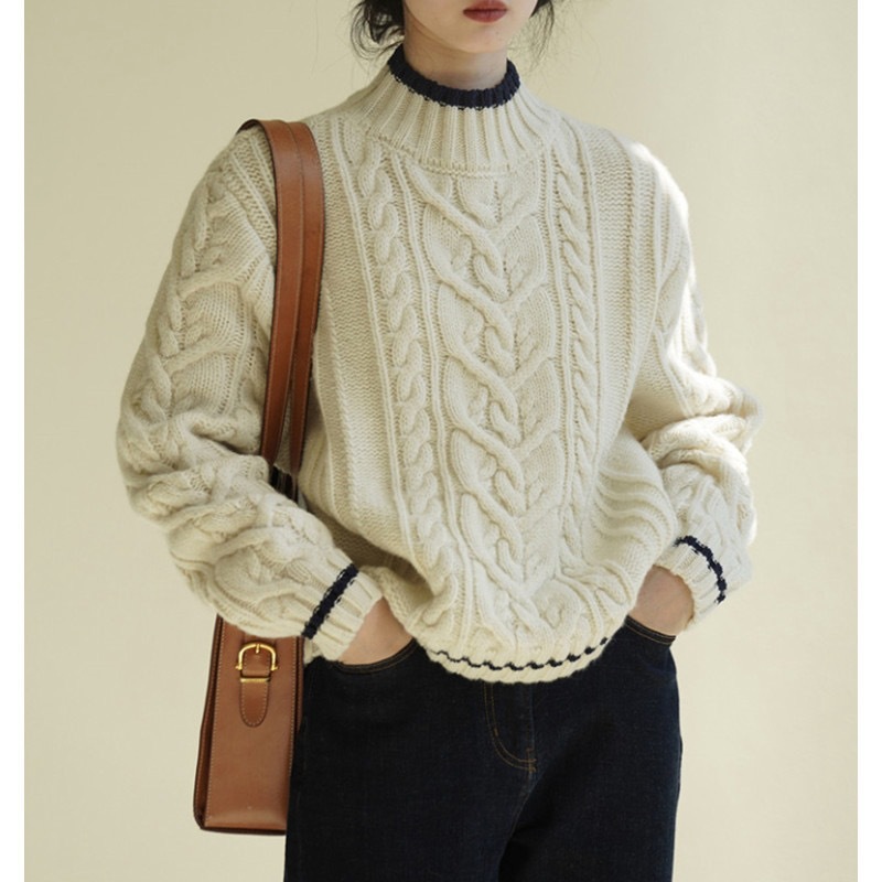 하프 터틀넥 스웨터 여성의 가을과 겨울 2024 새로운 트위스트 니트 스웨터 풀오버 내부 기본 부드러운 왁스 같은 기질 두꺼운 탑스토어 가기