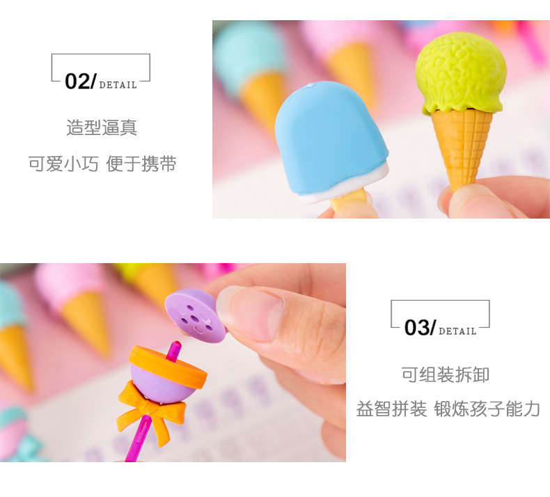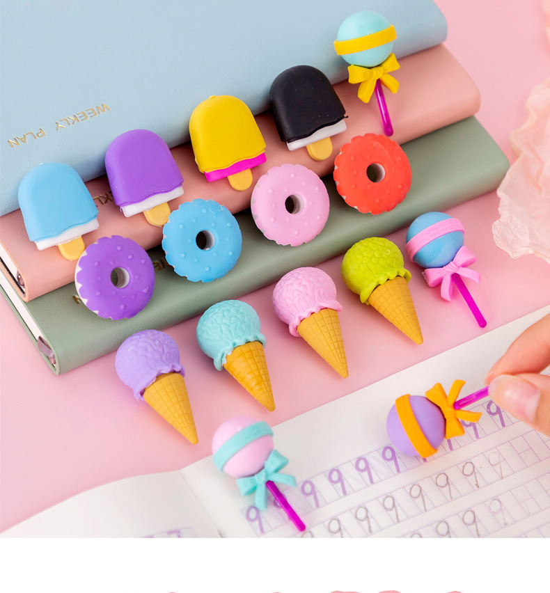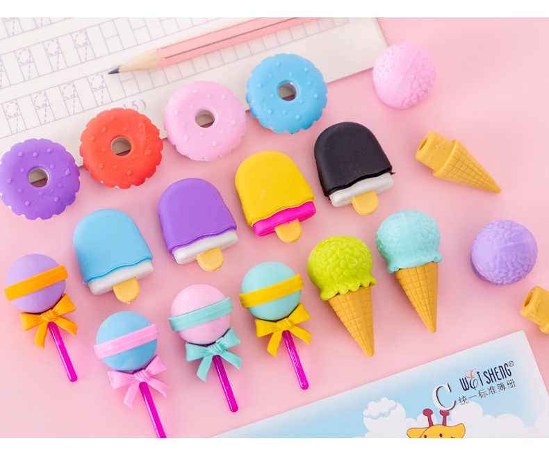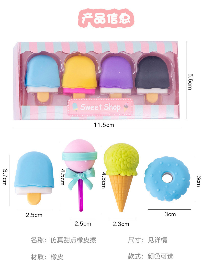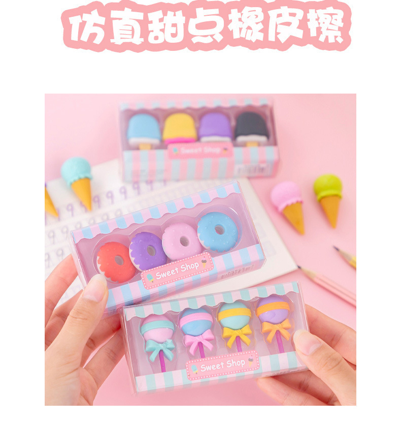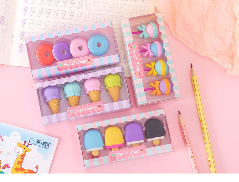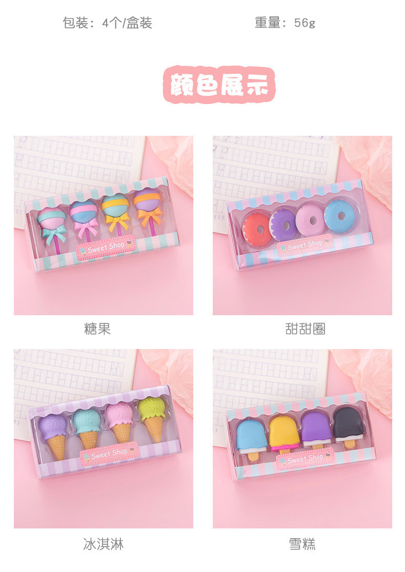 4 개의 마카롱 컬러 곰 선물 상자 디저트 롤리팝 고무 세트 학생 창조적 인 문구 고무 상자