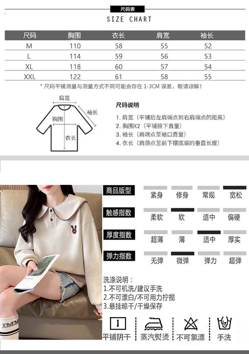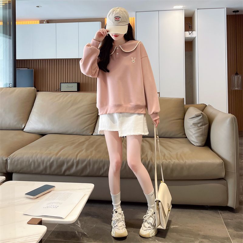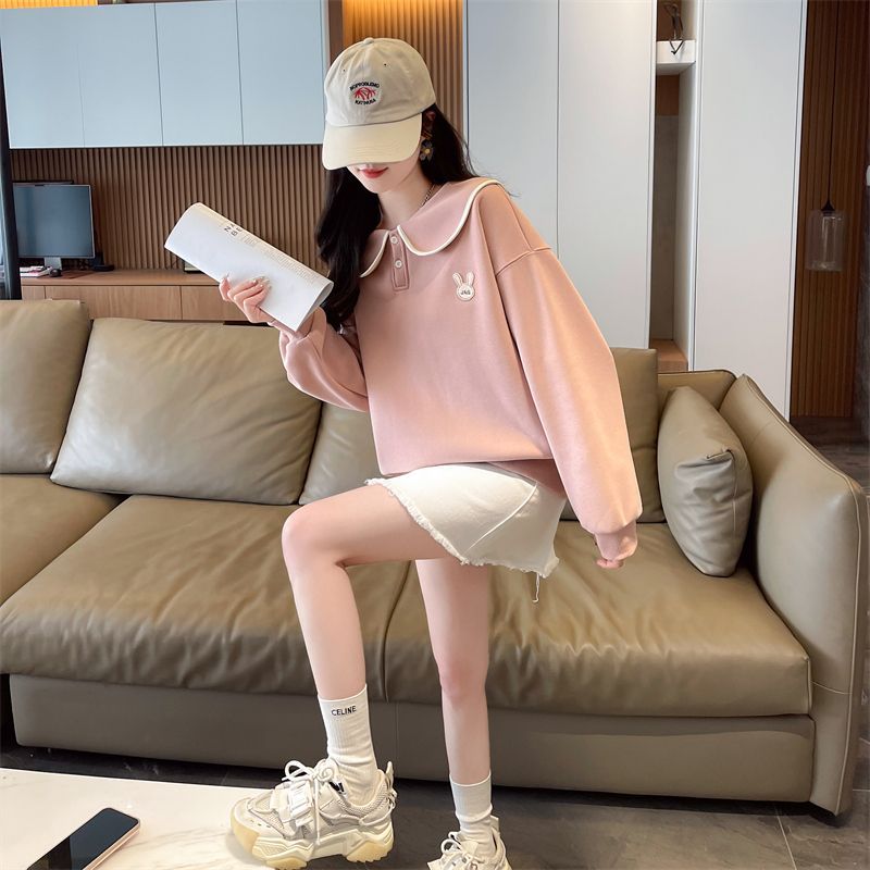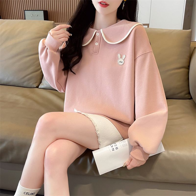 인형 칼라 스웨트 셔츠 여성 2025 새로운 봄과 가을 한국 스타일 느슨한 기모 학생 올 매치 자수 탑 얇은 재킷스토어 가기