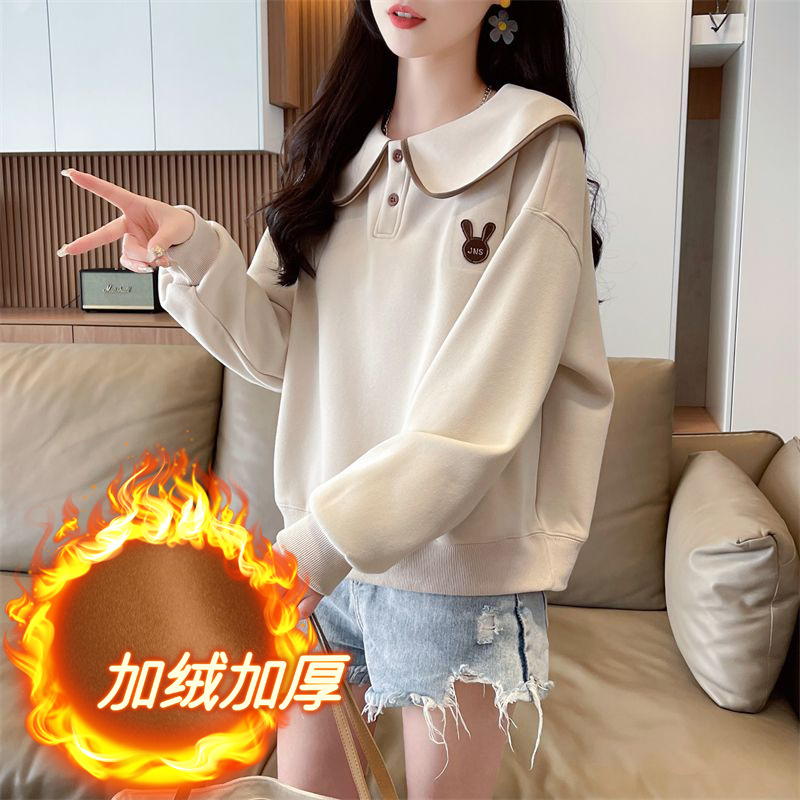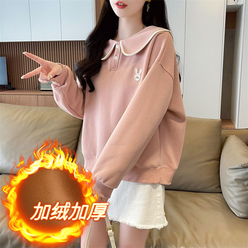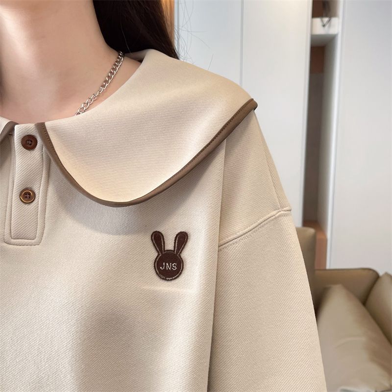 인형 칼라 스웨트 셔츠 여성 2025 새로운 봄과 가을 한국 스타일 느슨한 기모 학생 올 매치 자수 탑 얇은 재킷