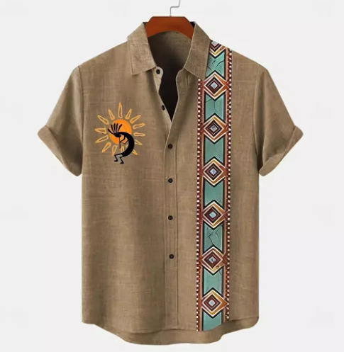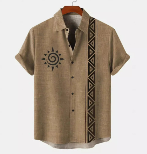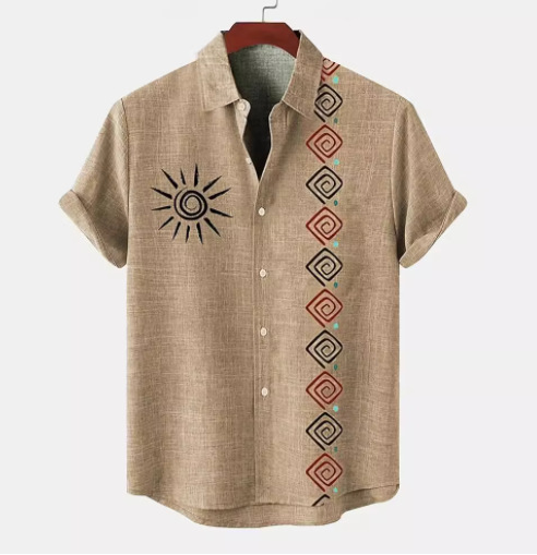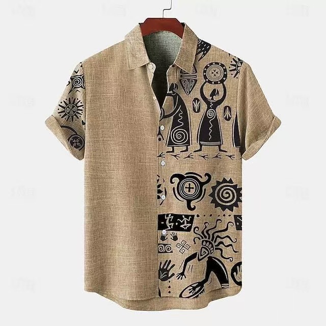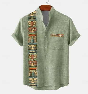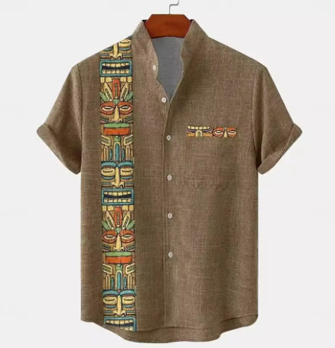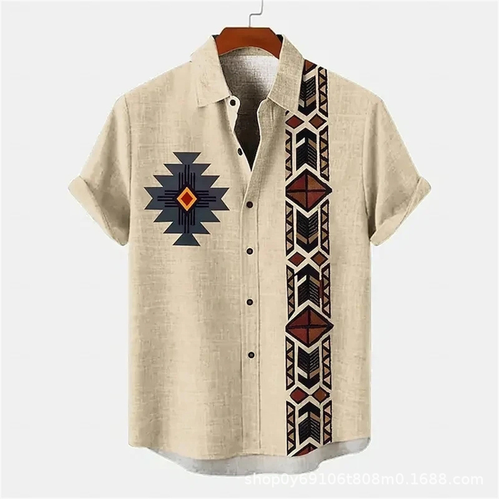 새로운 빈티지 캐주얼 짧은 소매 셔츠 남자의 자카드 느슨한 셔츠 아프리카 부족 3D 인쇄 국경 아마존스토어 가기