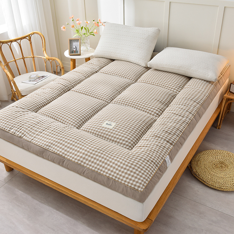 국경 간 원사 염색 두꺼운 3 차원 깃털 실크 코튼 매트리스 격자 무늬 매트리스 가정용 접이식 학생 기숙사 매트리스스토어 가기