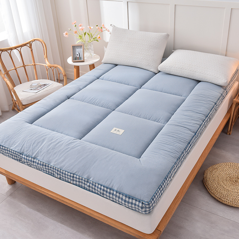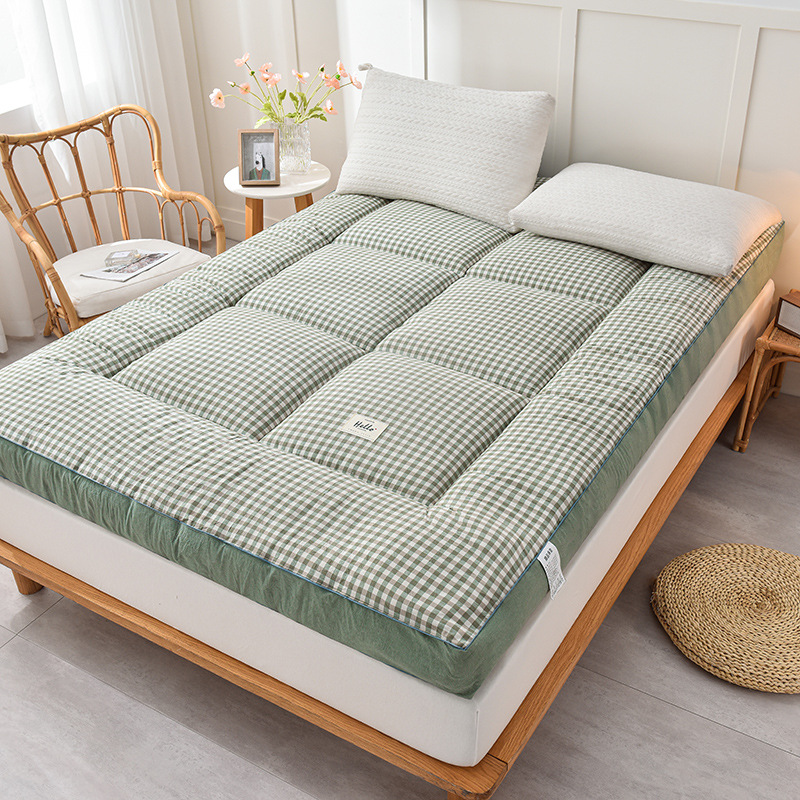 국경 간 원사 염색 두꺼운 3 차원 깃털 실크 코튼 매트리스 격자 무늬 매트리스 가정용 접이식 학생 기숙사 매트리스