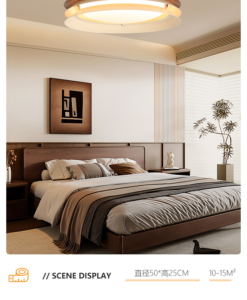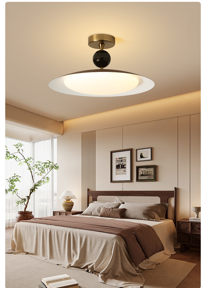 마스터 침실 천장 램프 레트로 UFO 호두 나무 곡물 연구 램프 새로운 중국 스타일 중동 고대 침묵 바람 중산 램프