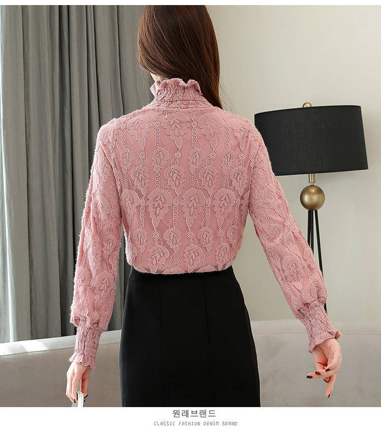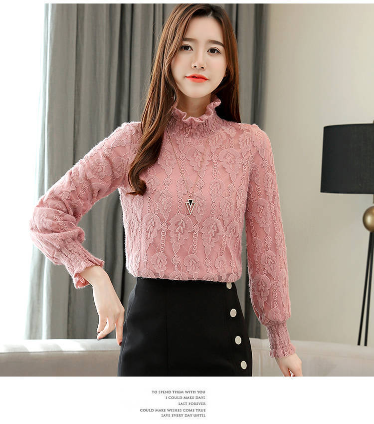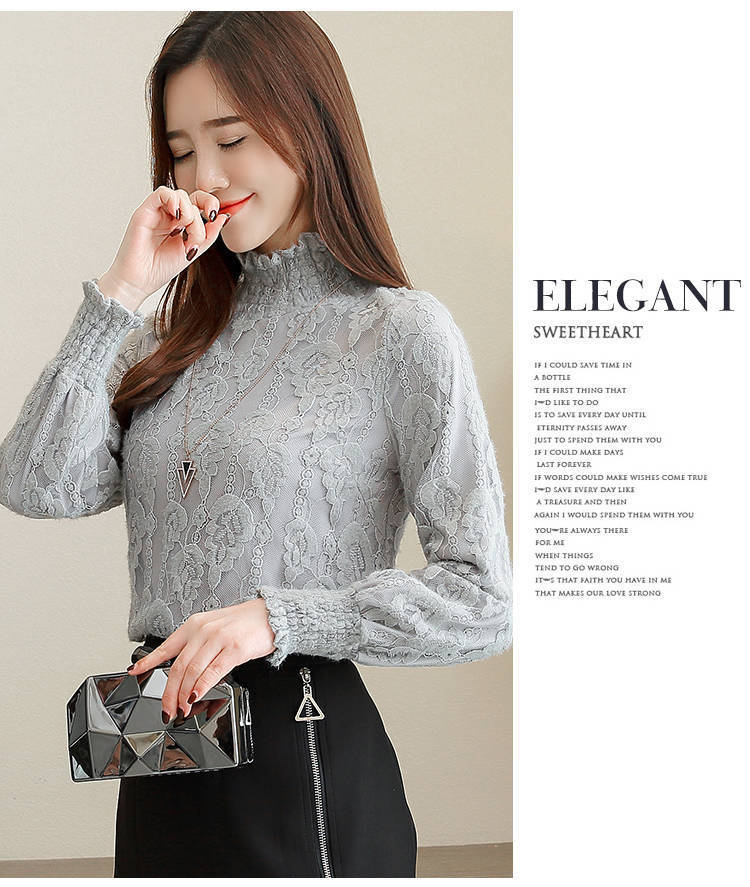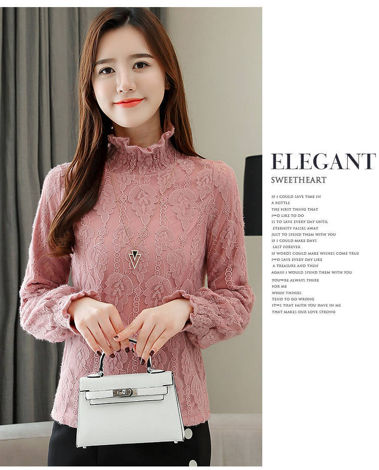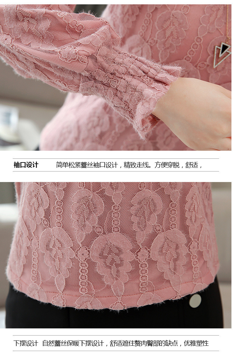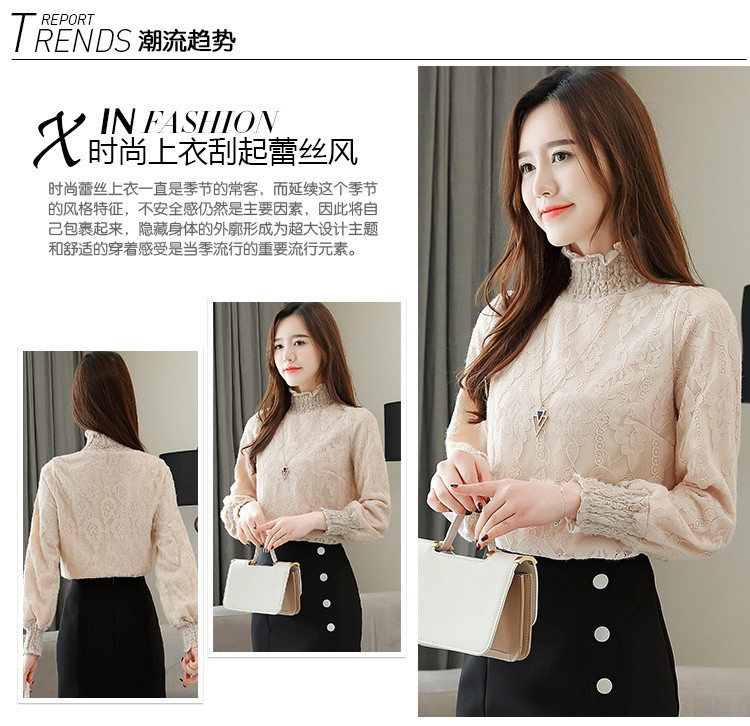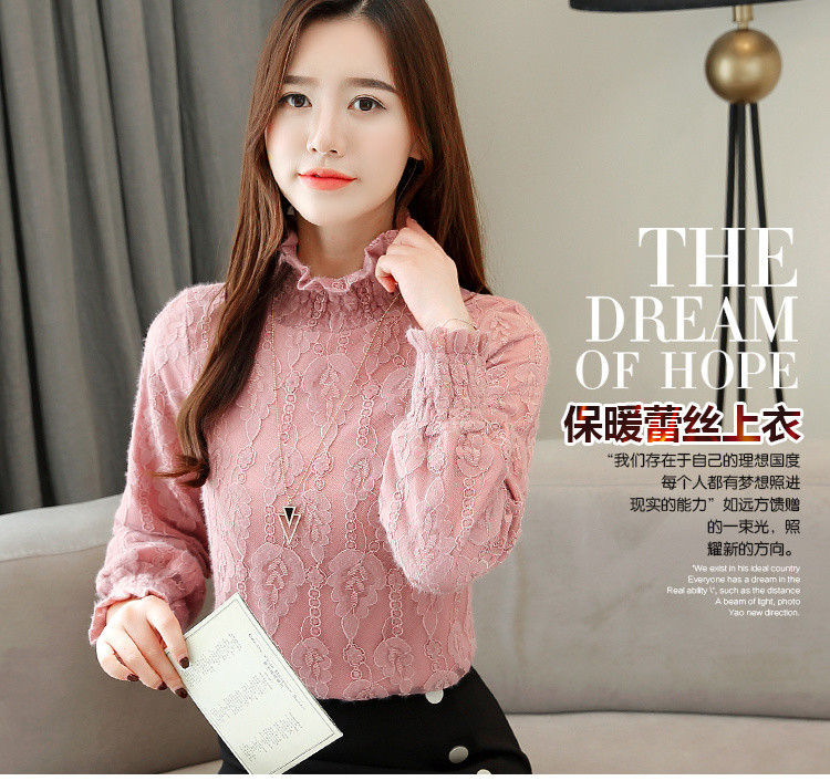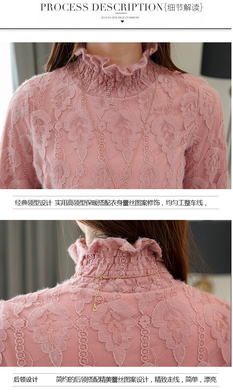 A6C 얇은/기모 레이스베이스 셔츠 여성용 긴 소매 가을과 겨울 높은 목 두꺼운 최고 여성의 서양 스타일 따뜻한 작은스토어 가기
