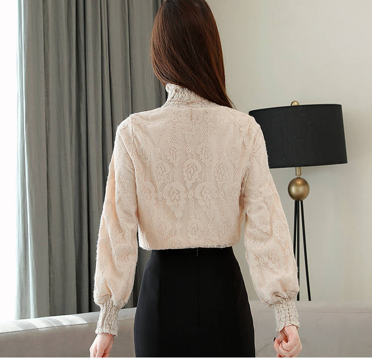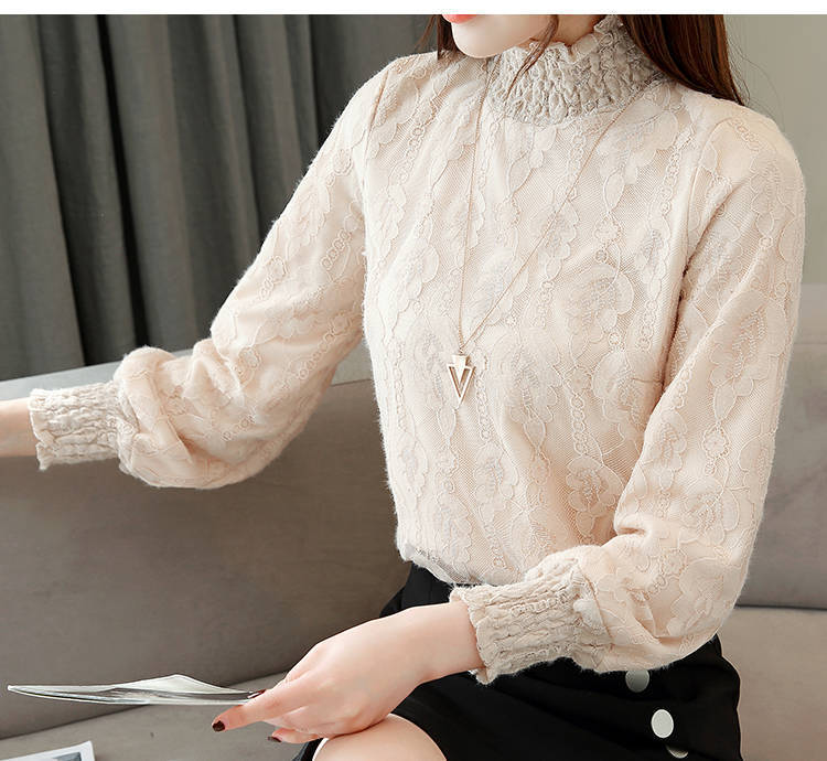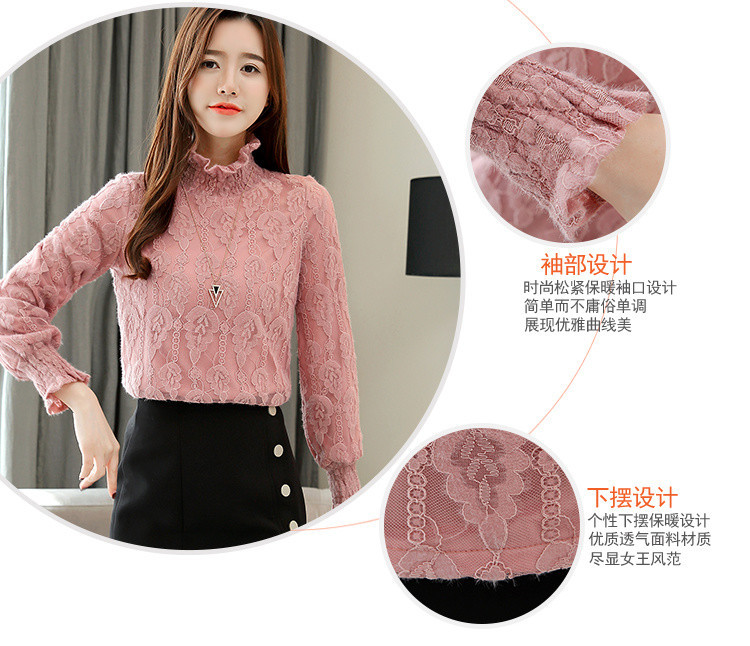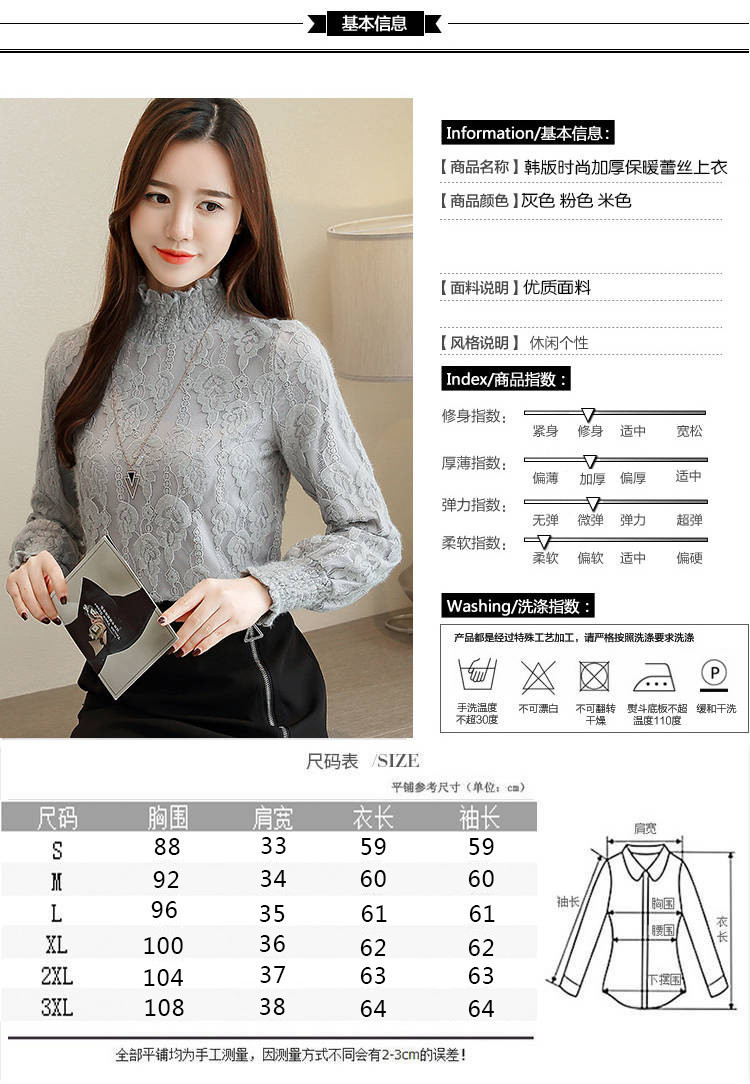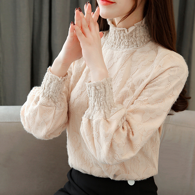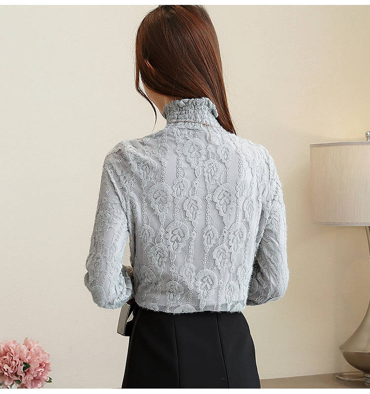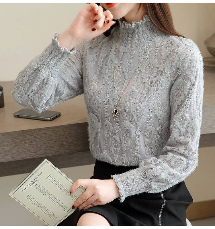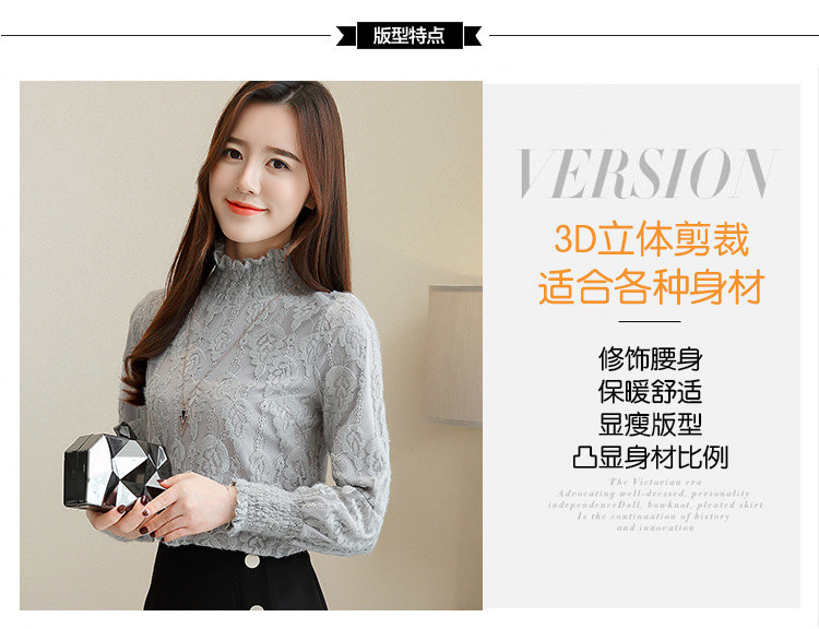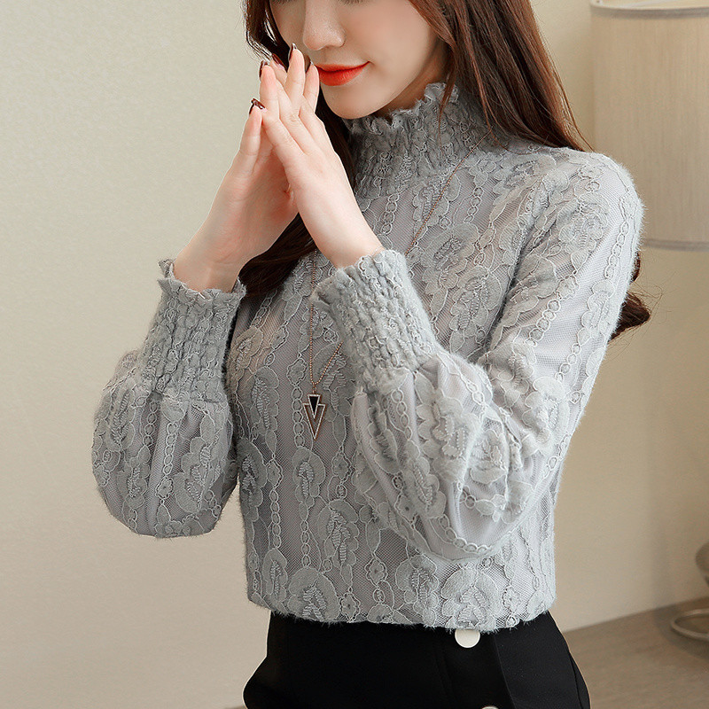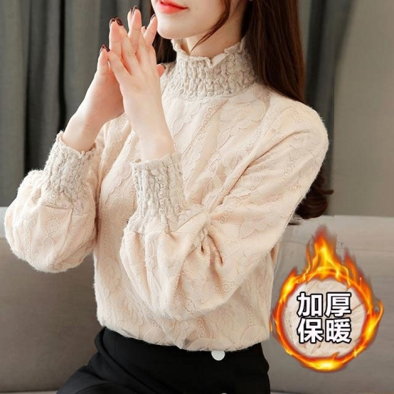 A6C 얇은/기모 레이스베이스 셔츠 여성용 긴 소매 가을과 겨울 높은 목 두꺼운 최고 여성의 서양 스타일 따뜻한 작은