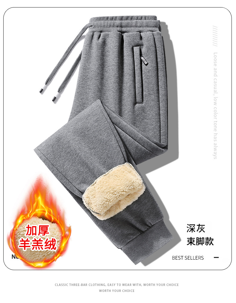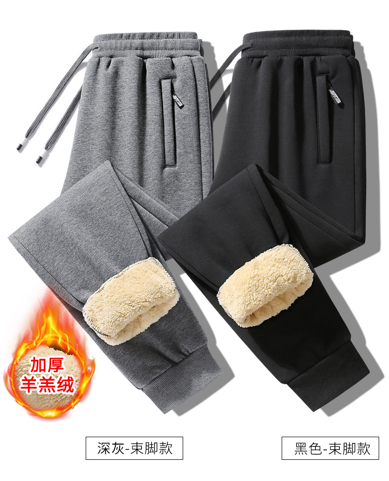 겨울옷 두꺼운 양고기 벨벳 바지 남자 겨울 기모 캐주얼 바지 남자 가을과 겨울 느슨한 아빠의 유행 운동복