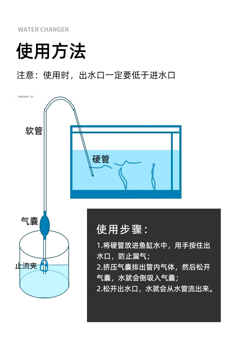 국경 간 어항 물갈이기 미니 변기 청소기 흡입관 물 펌프 사이펀 흡입기 청소용 변기 흡입기
