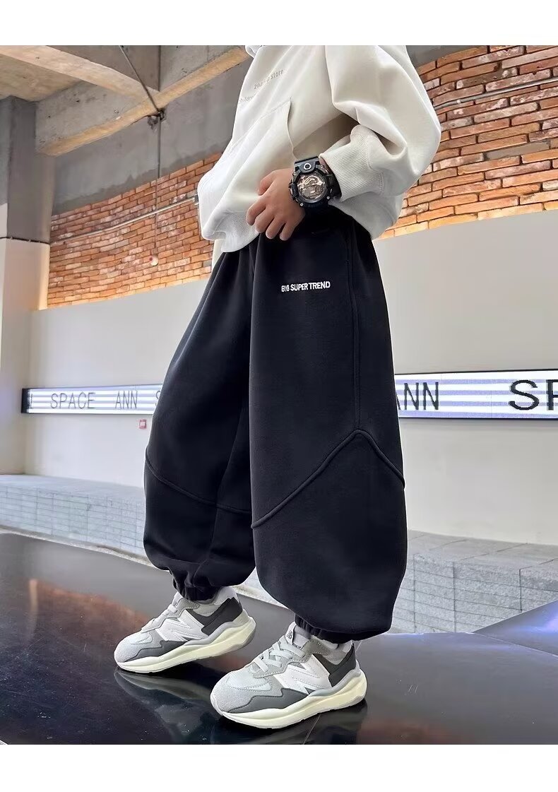 남학생의 봄과 가을은 한국식 캐주얼 스포츠 바지 2024 새로운 어린이 소년 가을과 겨울 느슨한 트렌디 쿨 바지스토어 가기