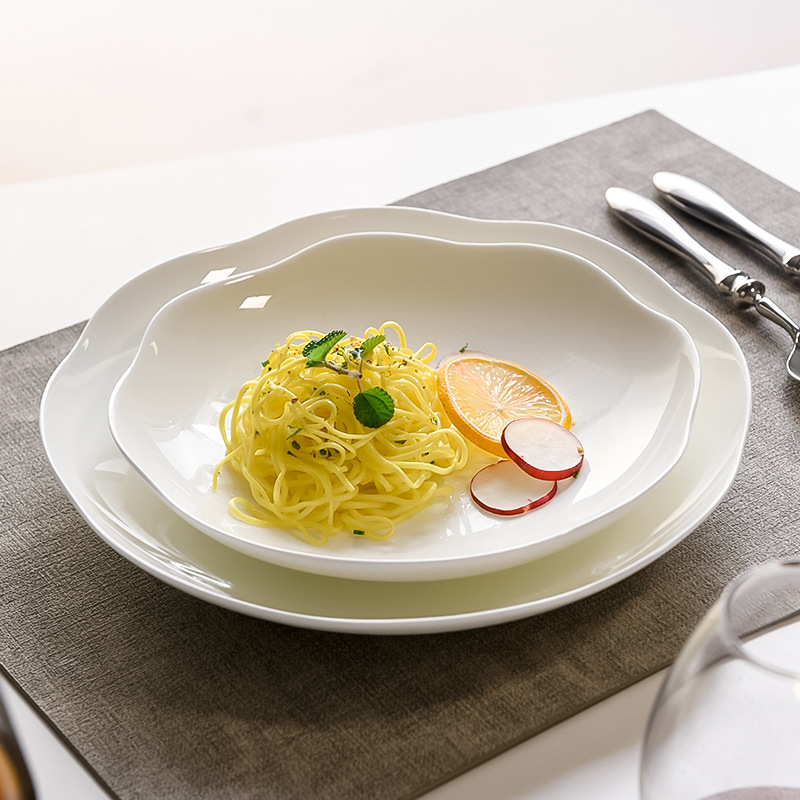 가정용 뼈 중국 그릇 세트 간단한 접시 식기 볶음 접시 순수한 흰색 플랫 플레이트 가정용 세라믹 유럽식 Naqin Xuan