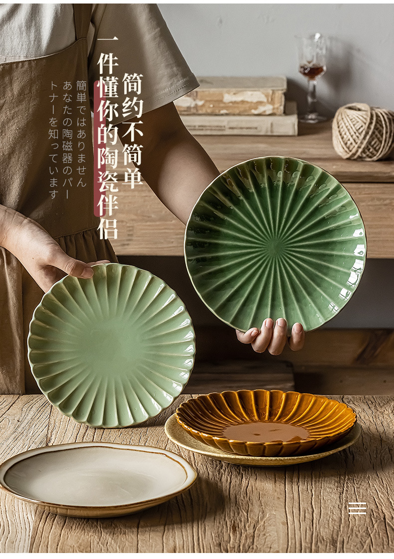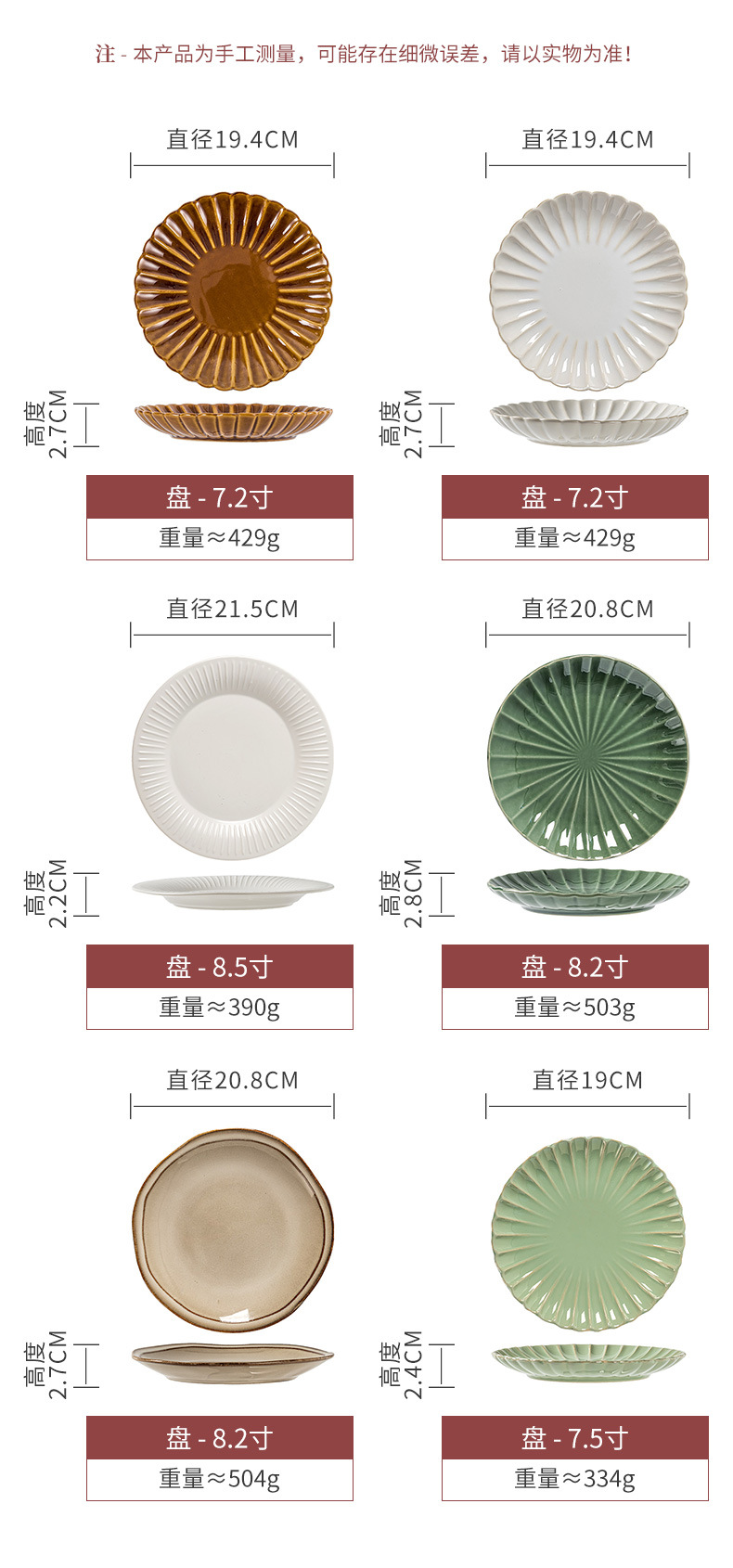 접시 접시 가정용 세라믹 식기 디너 플레이트 그릇 접시 센스 일본식 플레이트 서양 음식 과일 플레이트 레트로 딥 플레이트 진쑤언스토어 가기