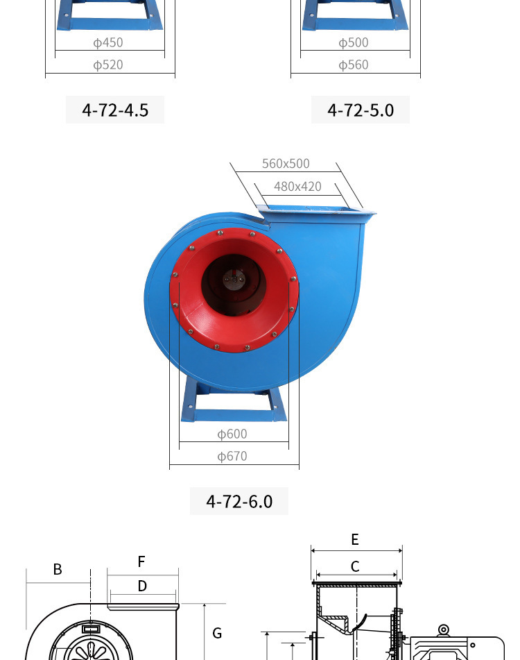 4-72 원심 팬 환기 산업 먼지 제거 침묵하는 페인트 룸 보일러 원심 유도 드래프트 팬 고온 저항