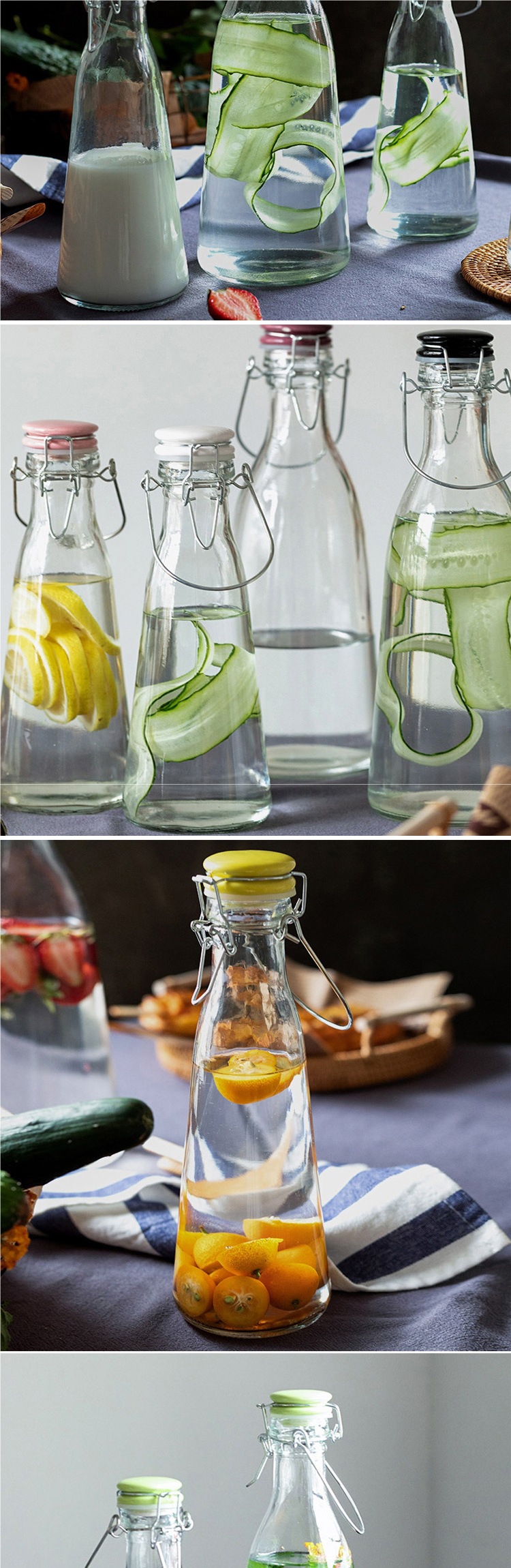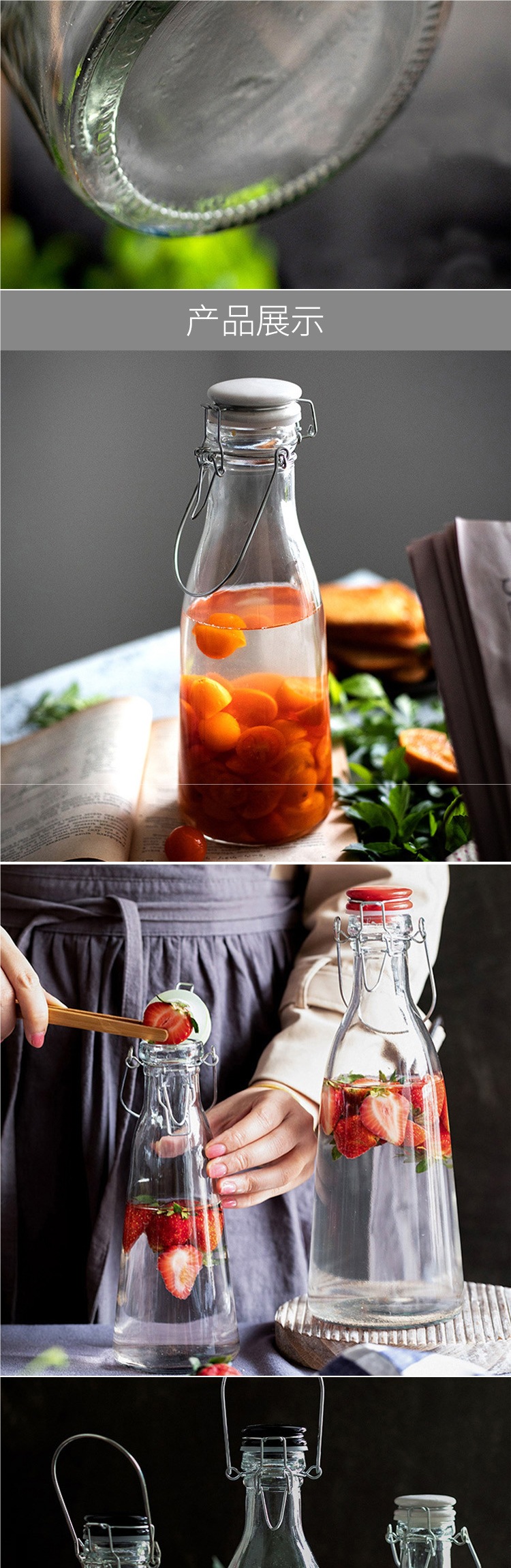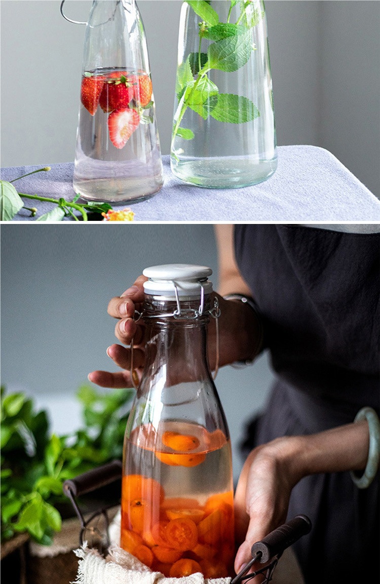 손잡이 먹이 병 큰 입 유리 손잡이 버클 먹이는 병 봉인 수제 주스 병 효소 병 홈 양조 병스토어 가기