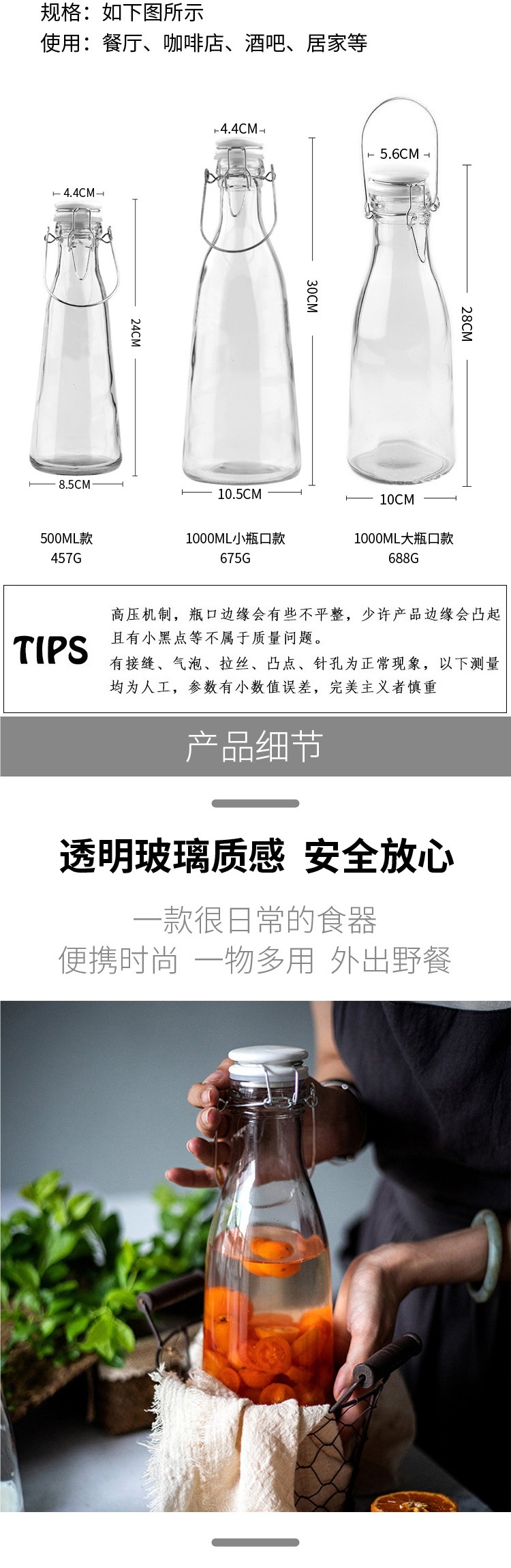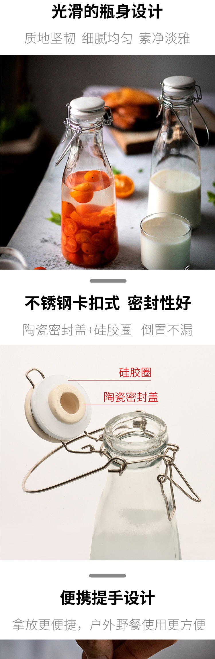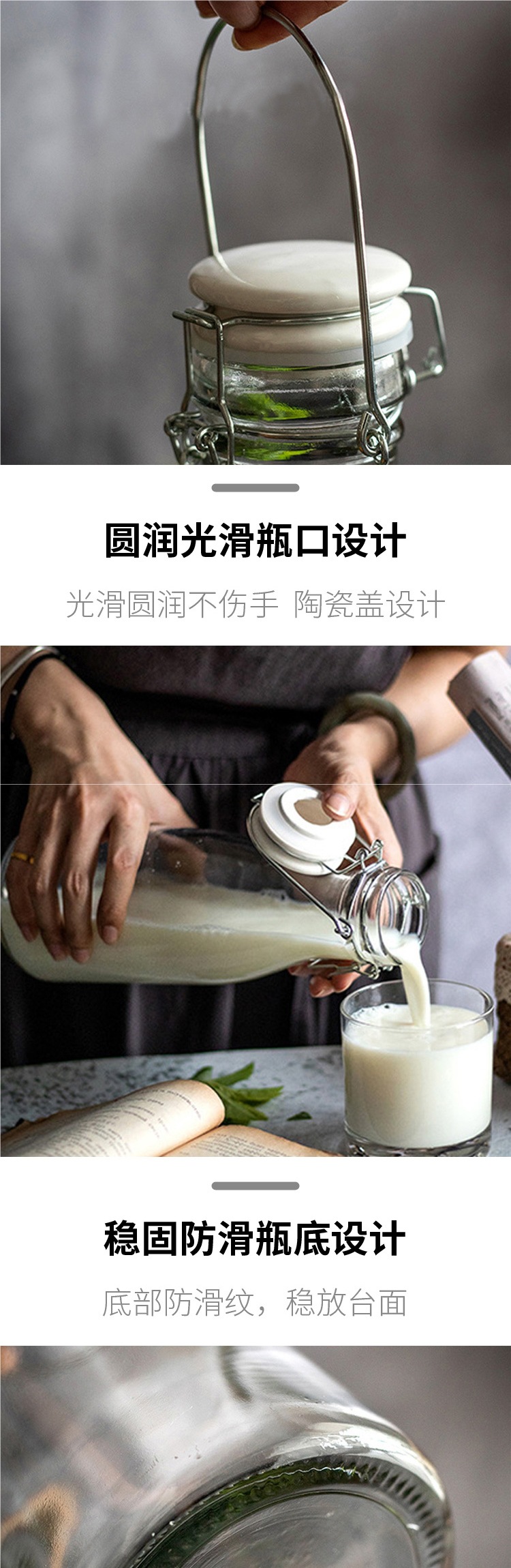 손잡이 먹이 병 큰 입 유리 손잡이 버클 먹이는 병 봉인 수제 주스 병 효소 병 홈 양조 병