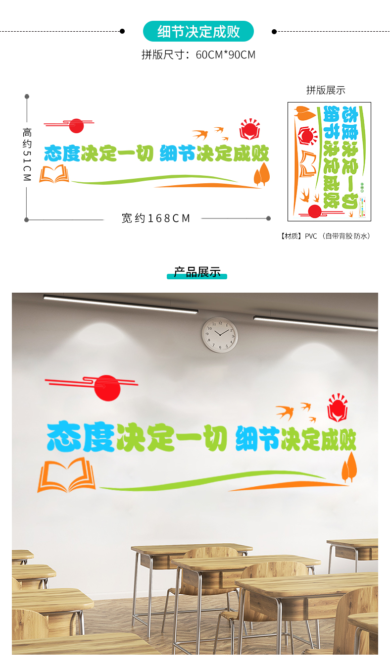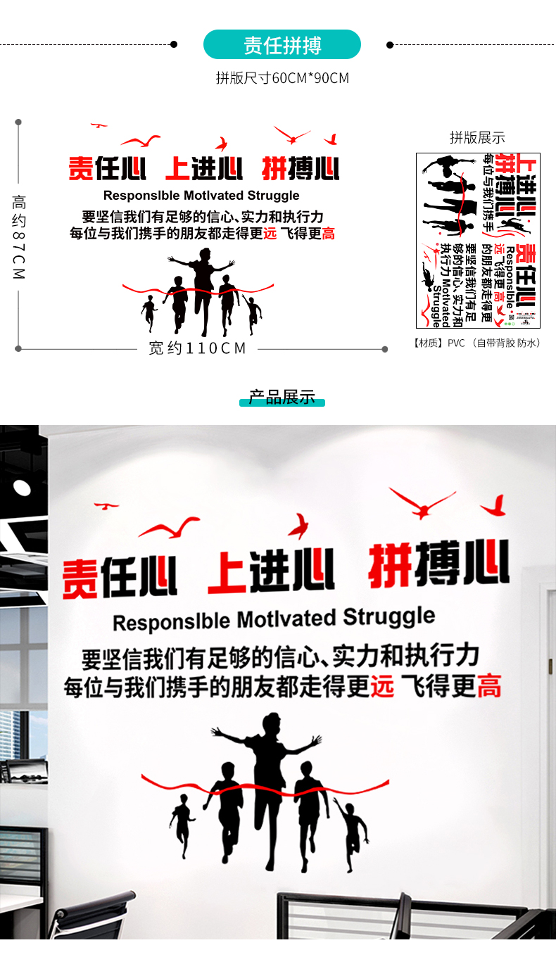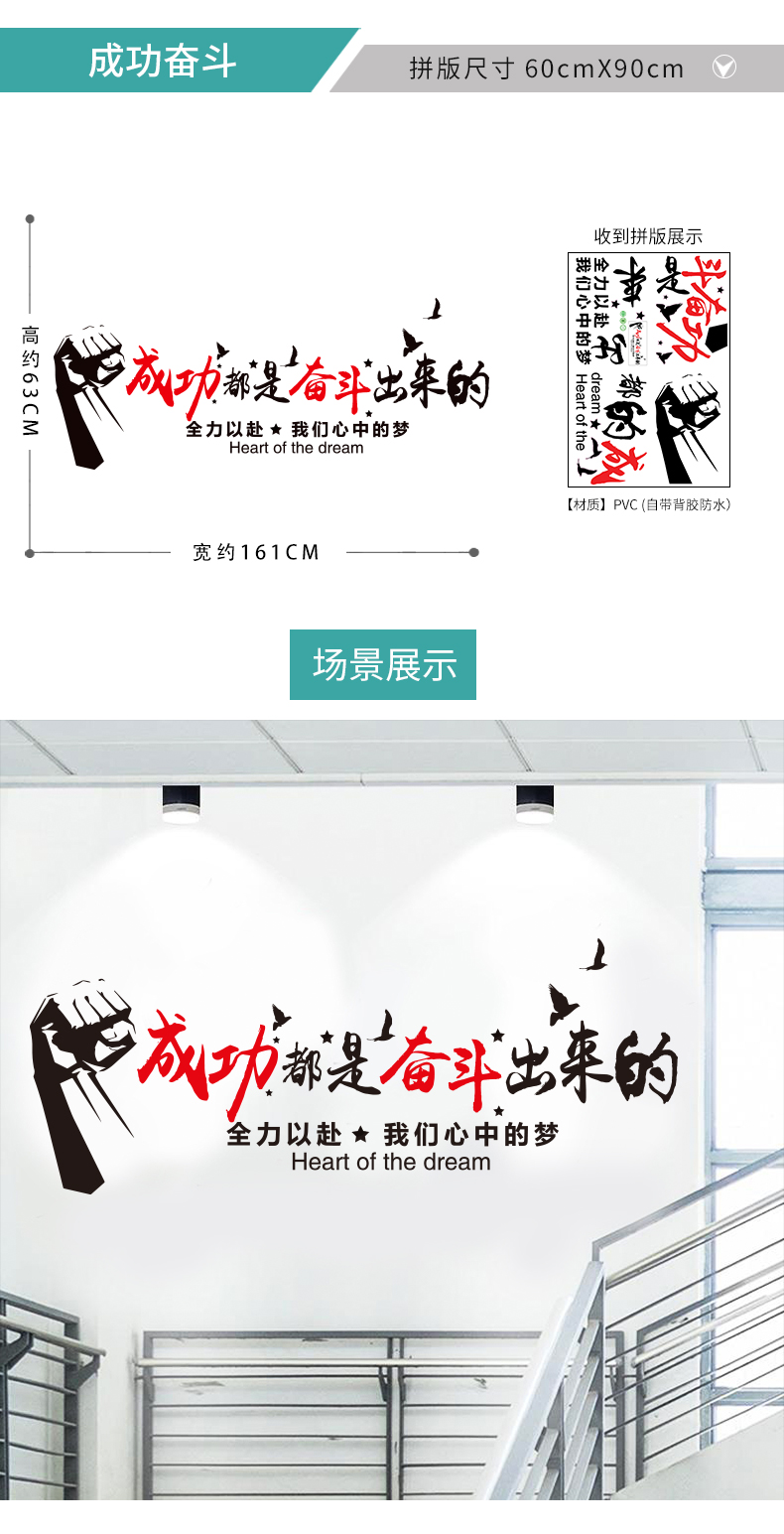 감동적인 벽 스티커 포스터 스티커 교실 레이아웃 회사 기업 문화 벽 사무실 장식 벽 Qin Xuan