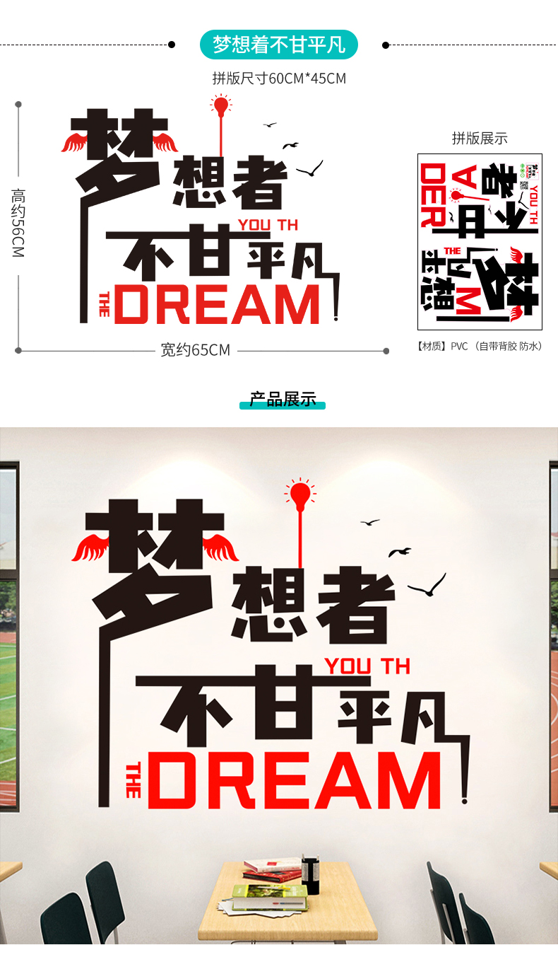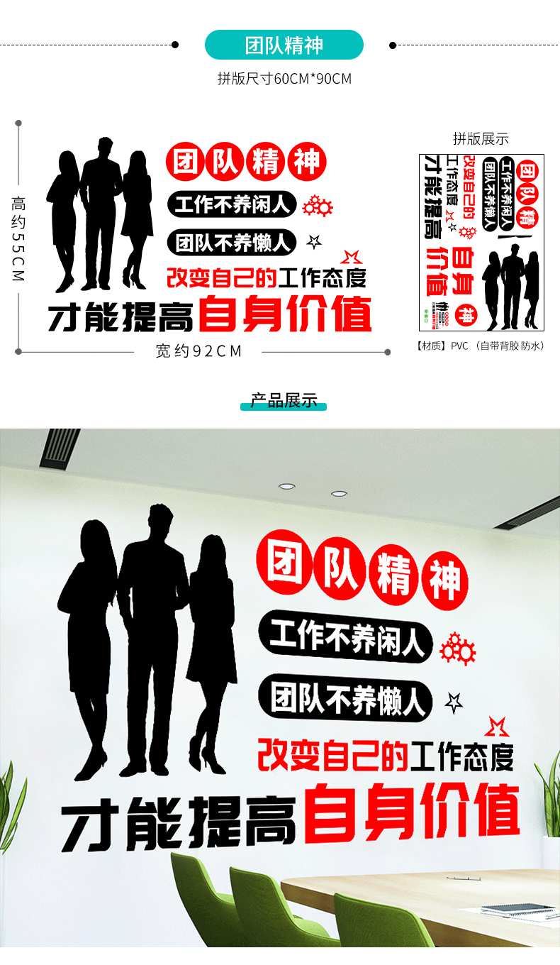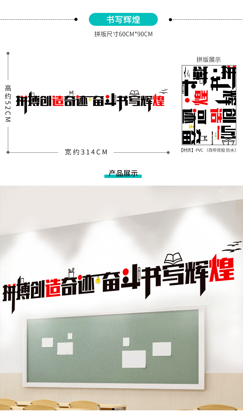 감동적인 벽 스티커 포스터 스티커 교실 레이아웃 회사 기업 문화 벽 사무실 장식 벽 Qin Xuan