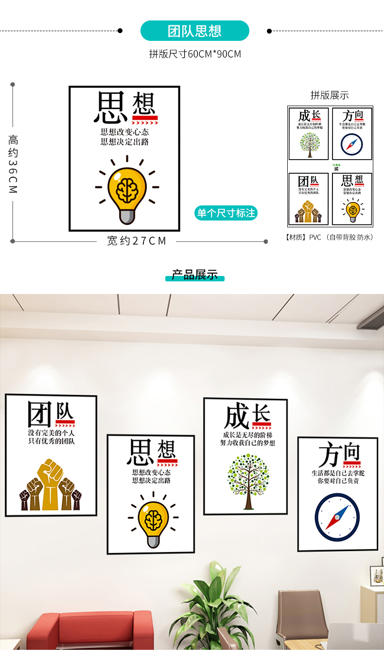 감동적인 벽 스티커 포스터 스티커 교실 레이아웃 회사 기업 문화 벽 사무실 장식 벽 Qin Xuan스토어 가기