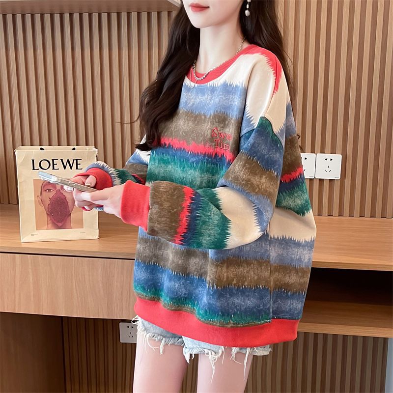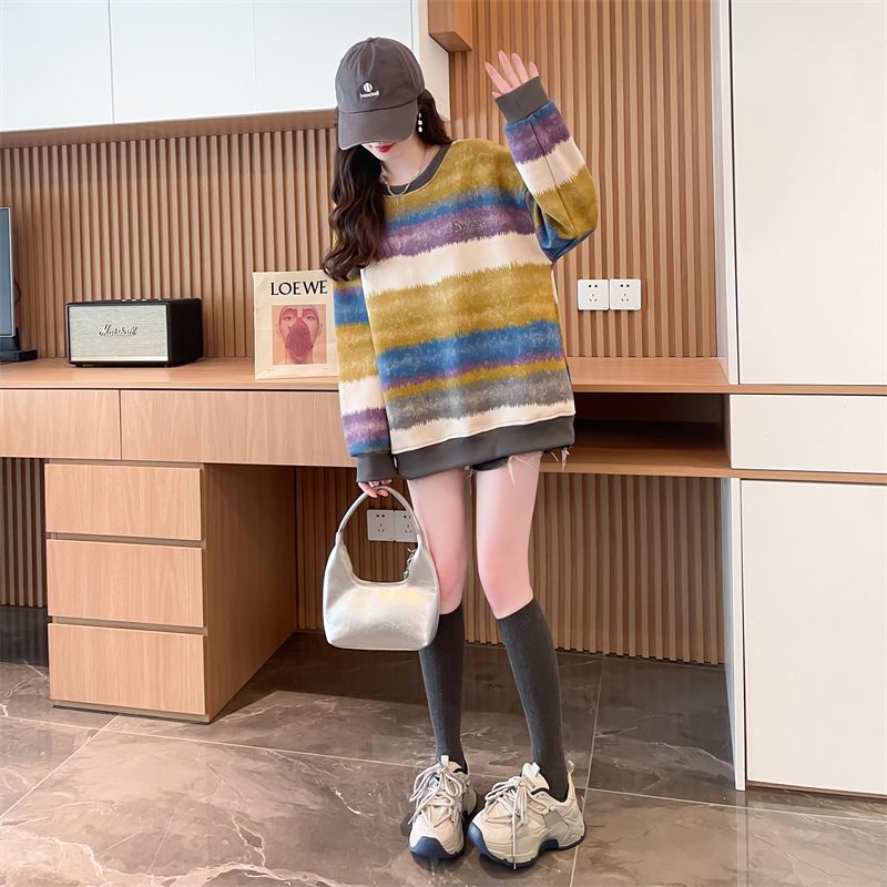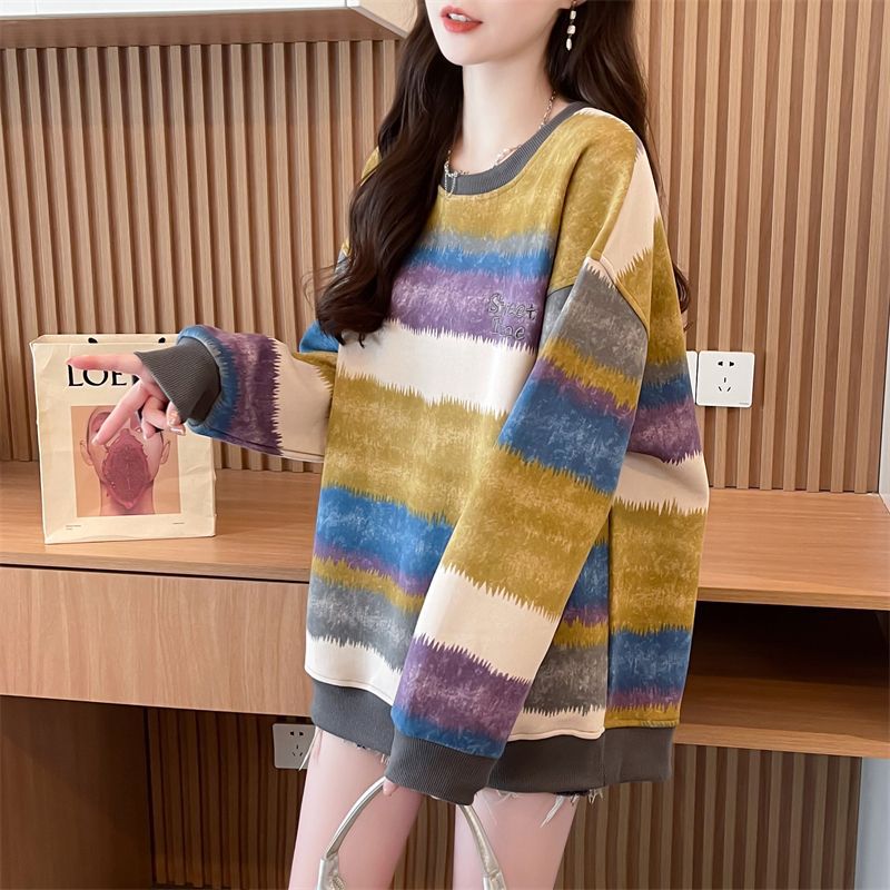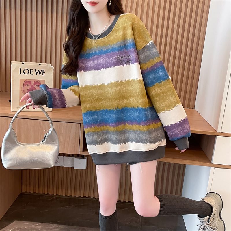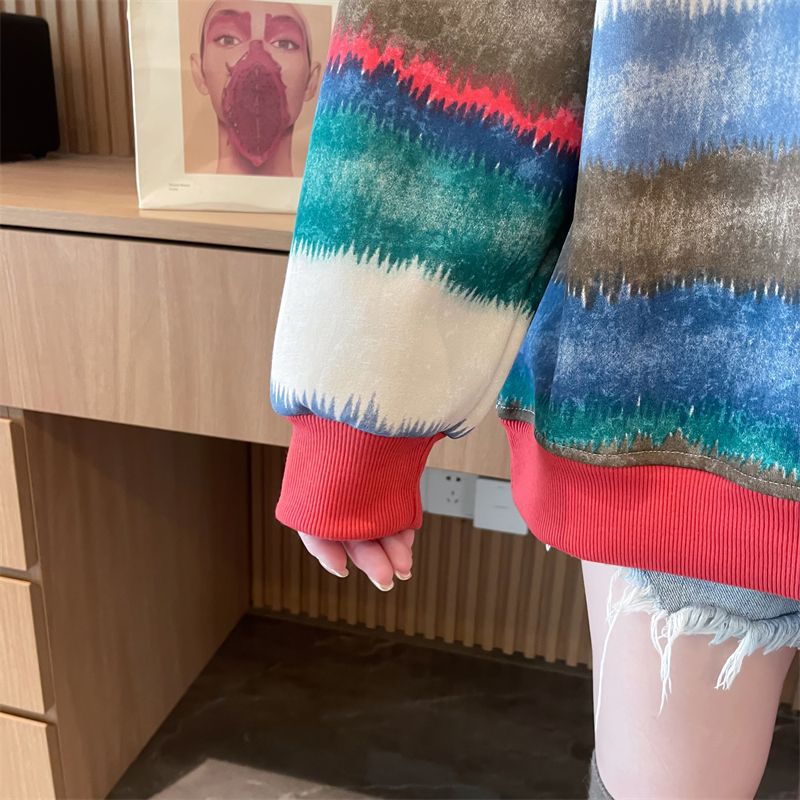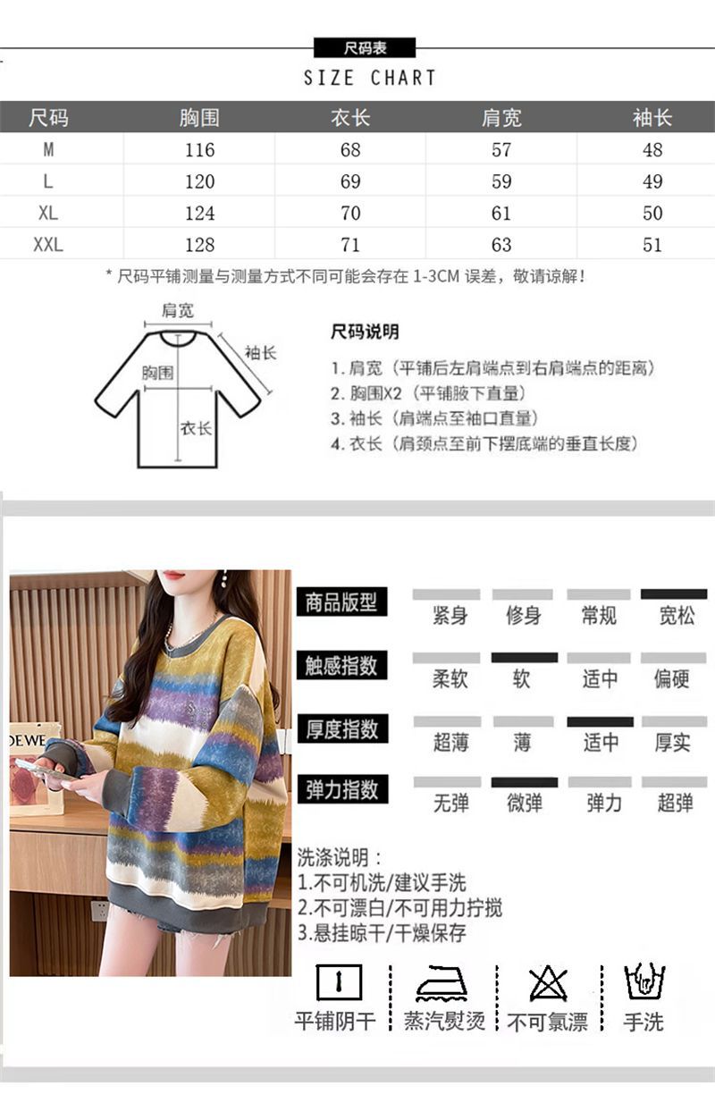이른 봄 그라디언트 스트라이프 스웨터 여성의 봄과 가을 2025 새로운 플러스 사이즈 느슨한 게으른 바람 넥타이 염색 재킷 코트스토어 가기