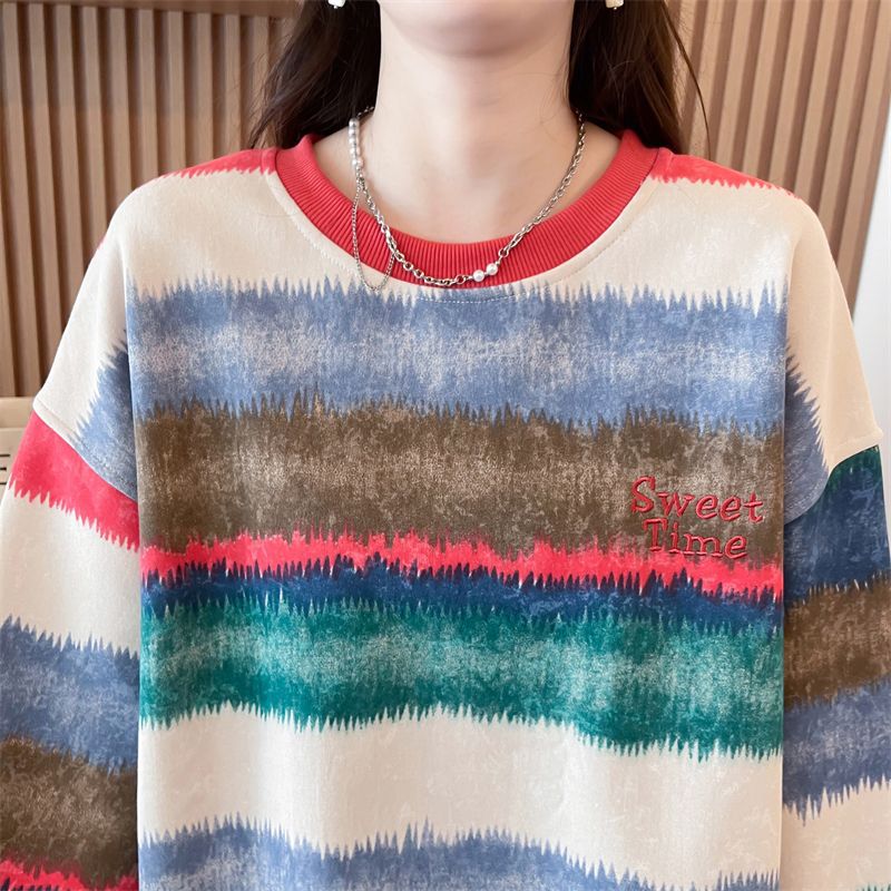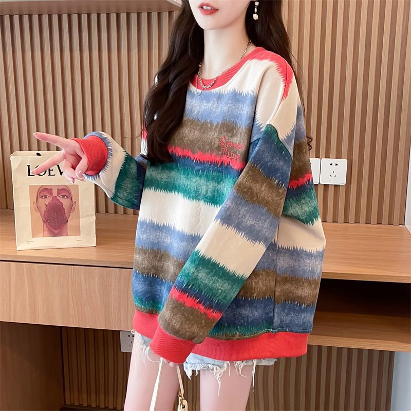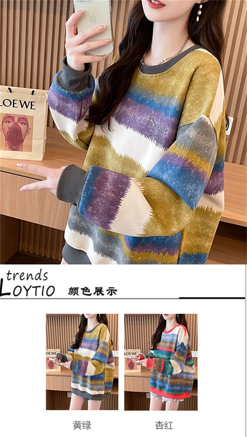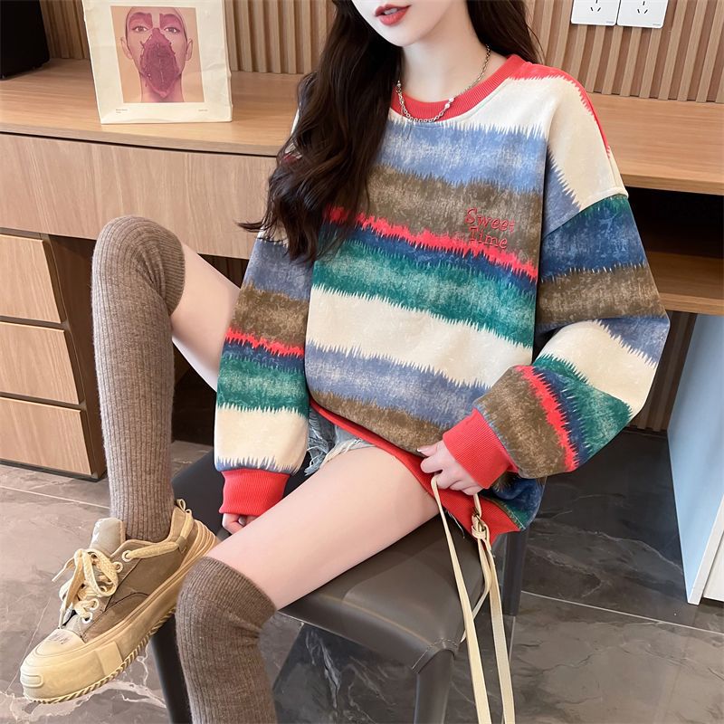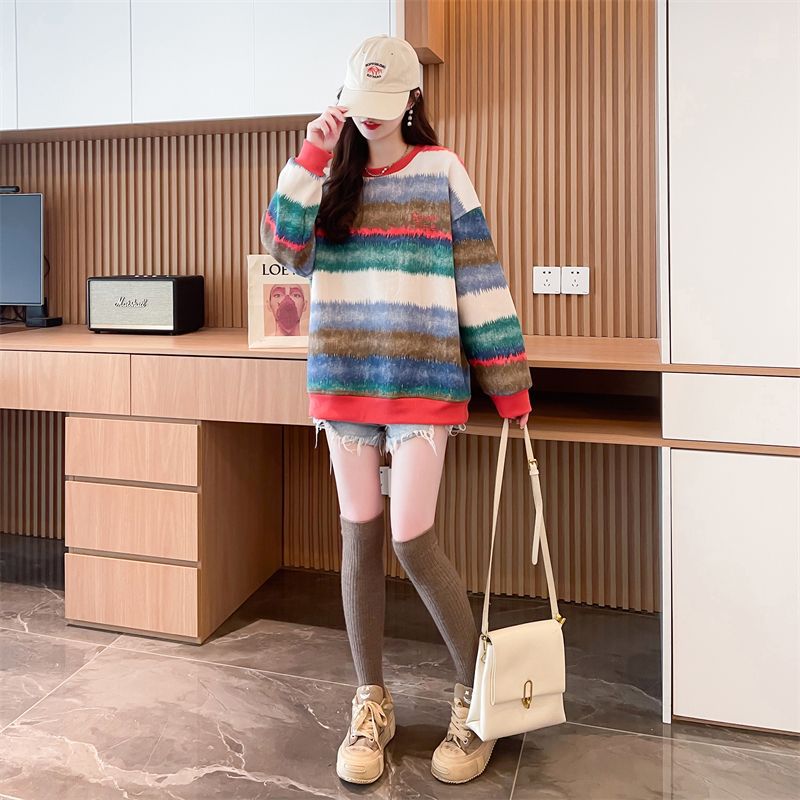 이른 봄 그라디언트 스트라이프 스웨터 여성의 봄과 가을 2025 새로운 플러스 사이즈 느슨한 게으른 바람 넥타이 염색 재킷 코트스토어 가기