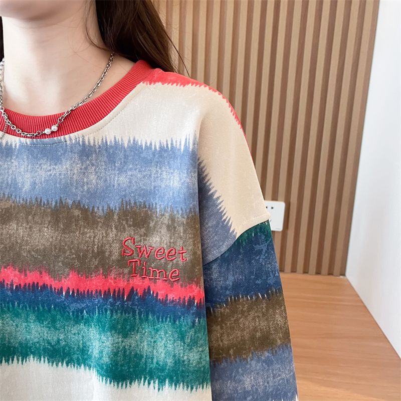 이른 봄 그라디언트 스트라이프 스웨터 여성의 봄과 가을 2025 새로운 플러스 사이즈 느슨한 게으른 바람 넥타이 염색 재킷 코트