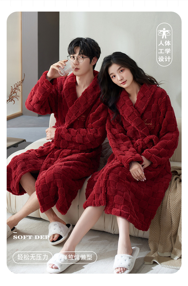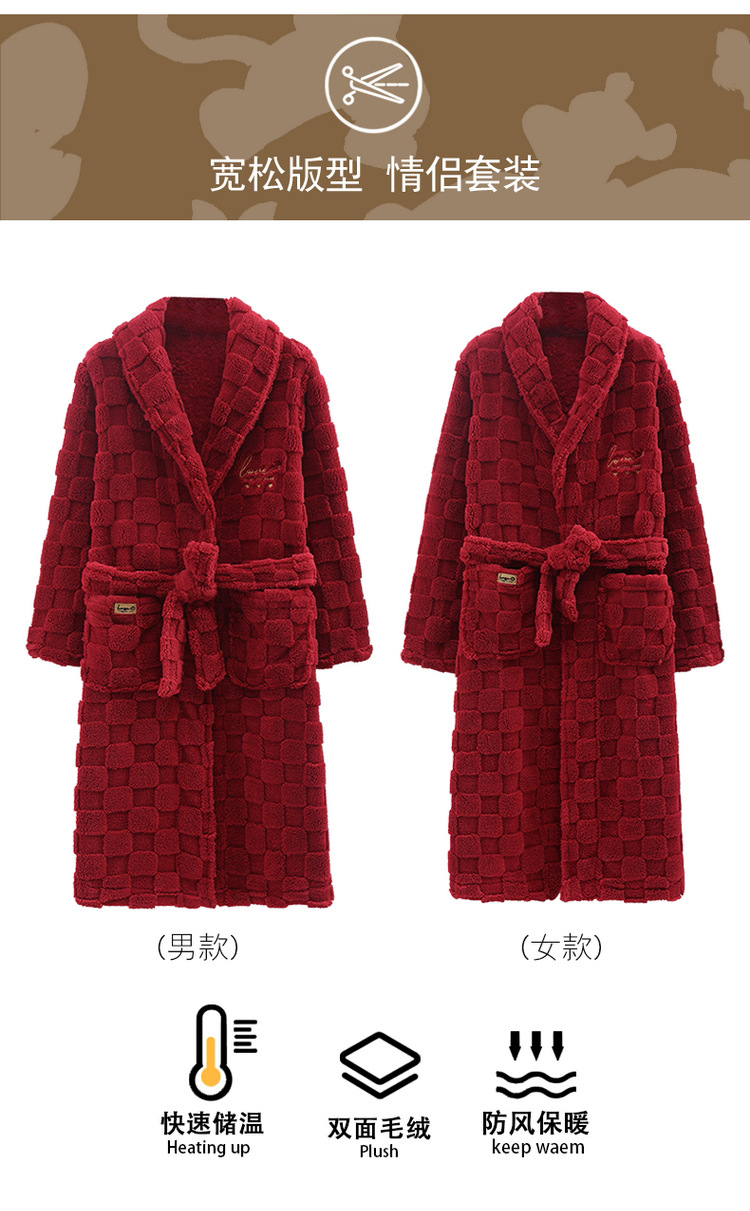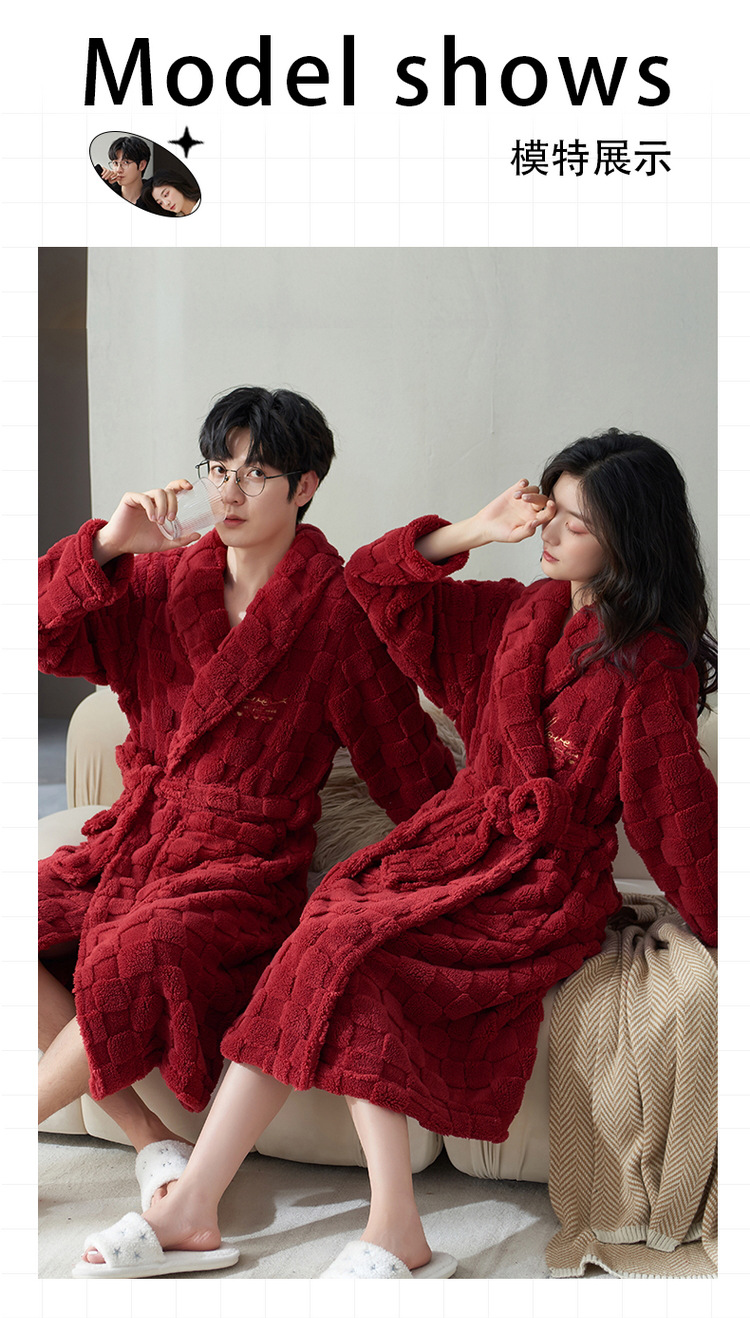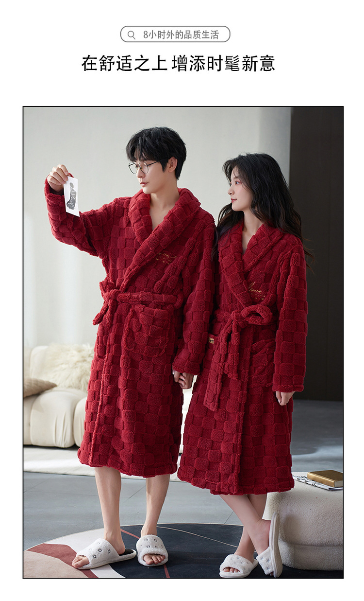 잠옷 웨딩 신혼 부부 세트 레드 산호 양털 남녀 두꺼운 기모 커플 잠옷 가을과 겨울