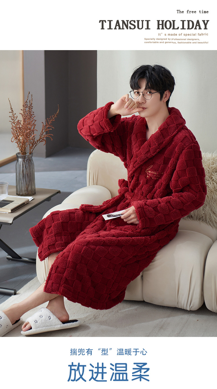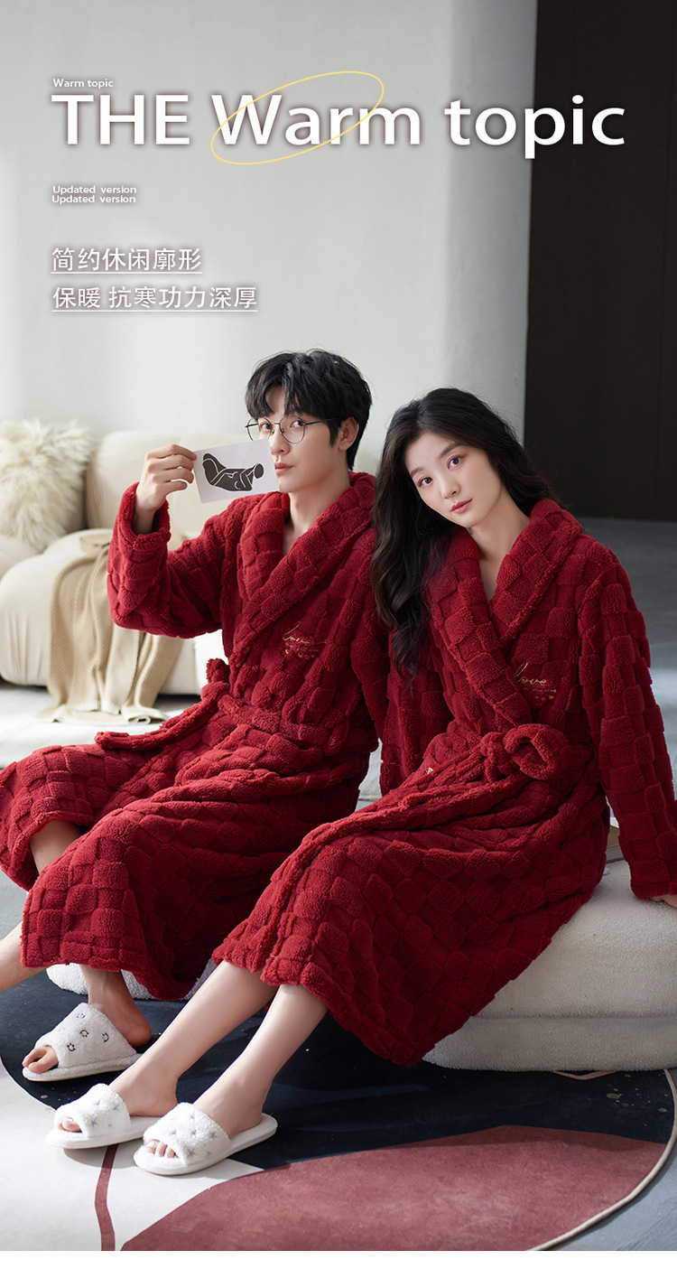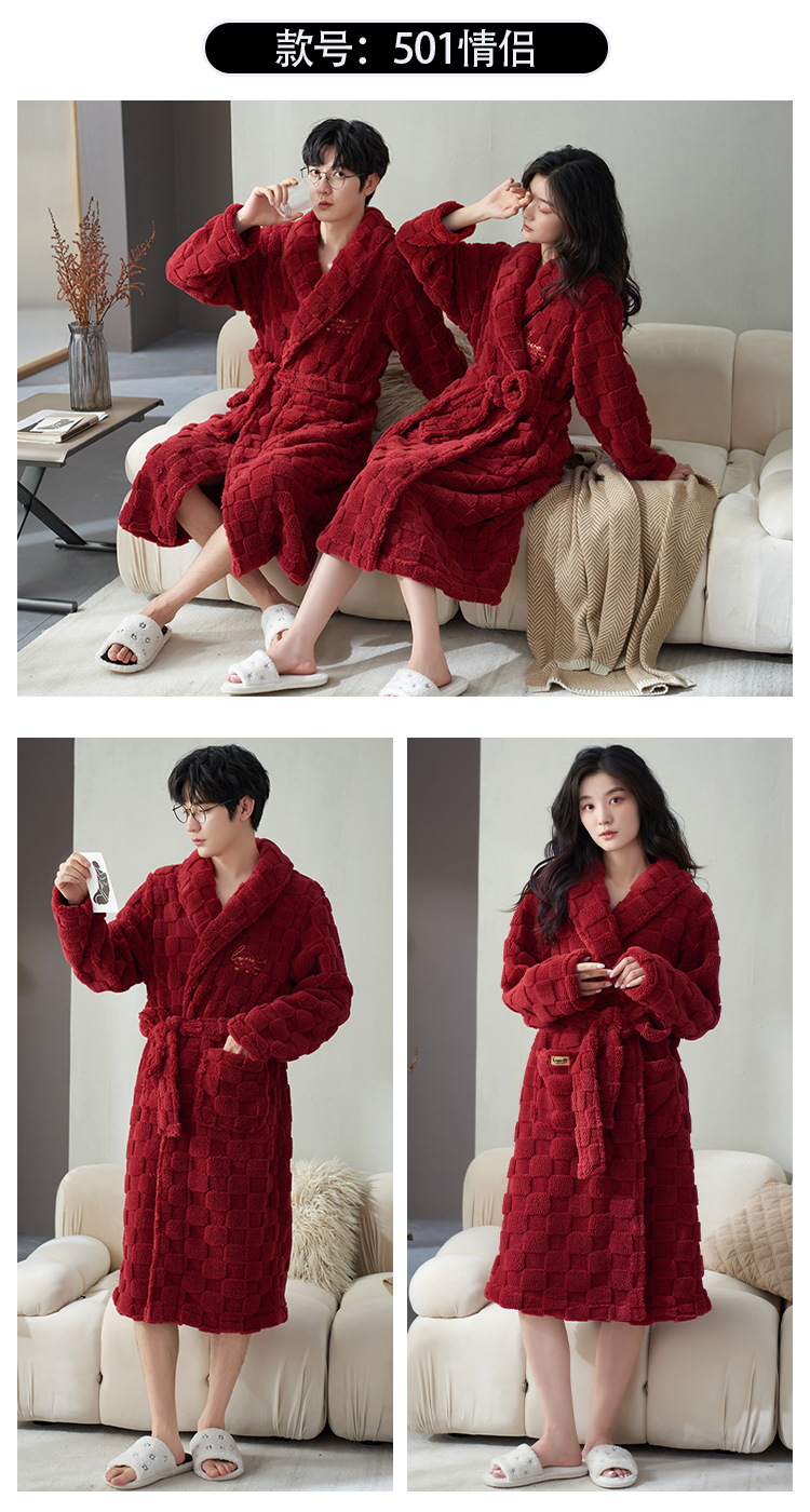 잠옷 웨딩 신혼 부부 세트 레드 산호 양털 남녀 두꺼운 기모 커플 잠옷 가을과 겨울