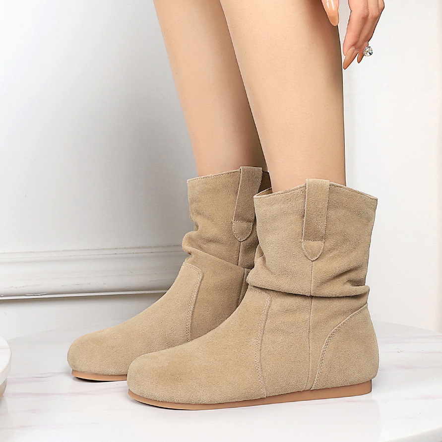87-1 Cowhide 내부 높이 증가 빈티지 짧은 부츠 여성용 새 가을 및 겨울 프로스트 가죽 여성용 부츠 라운드 헤드 짧은 배럴 Birkenstocks 더미 부츠