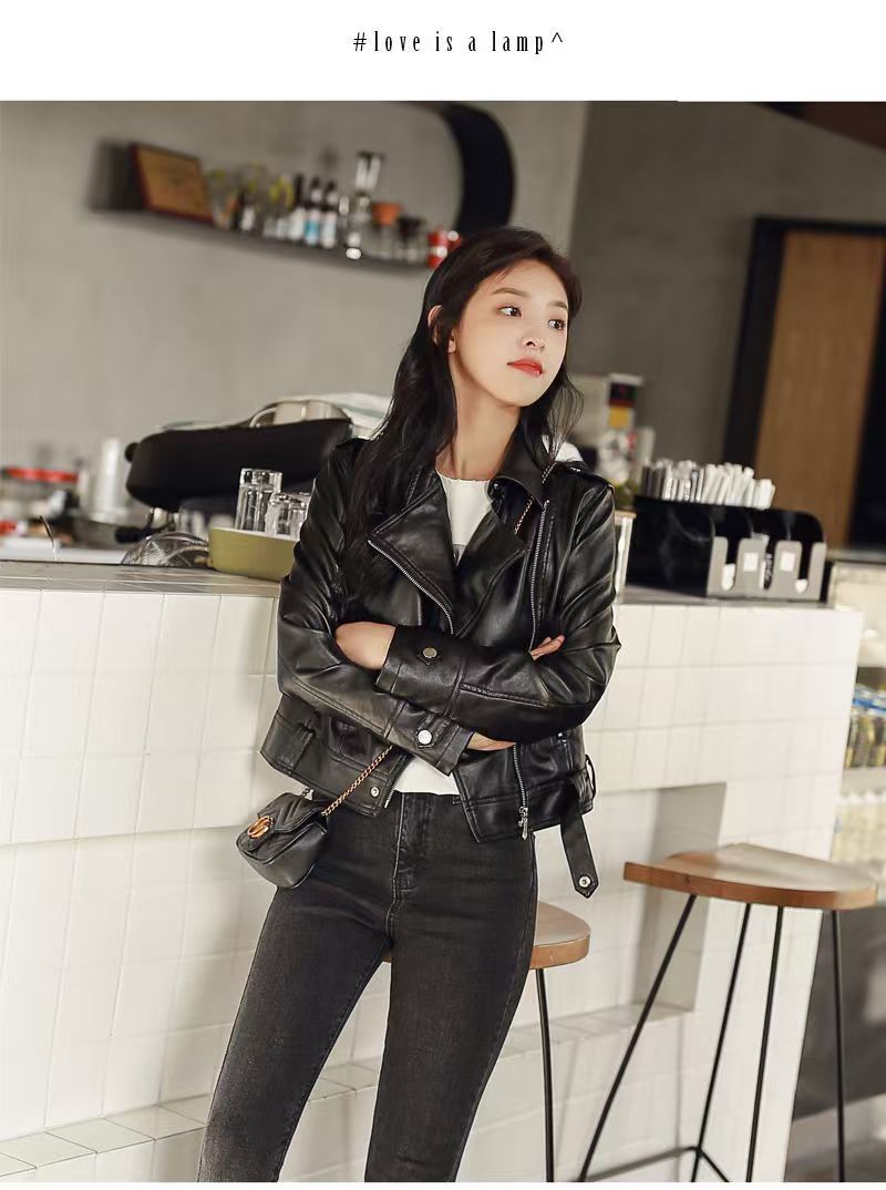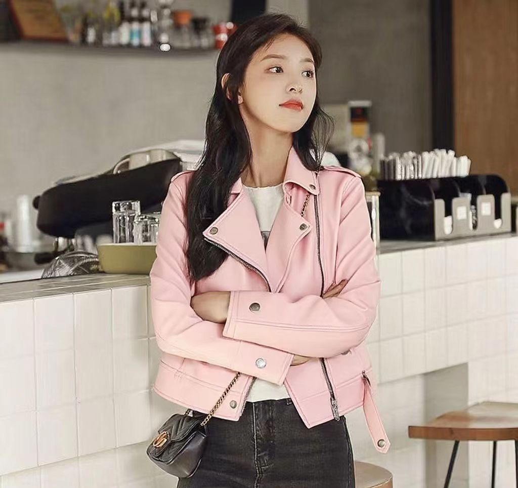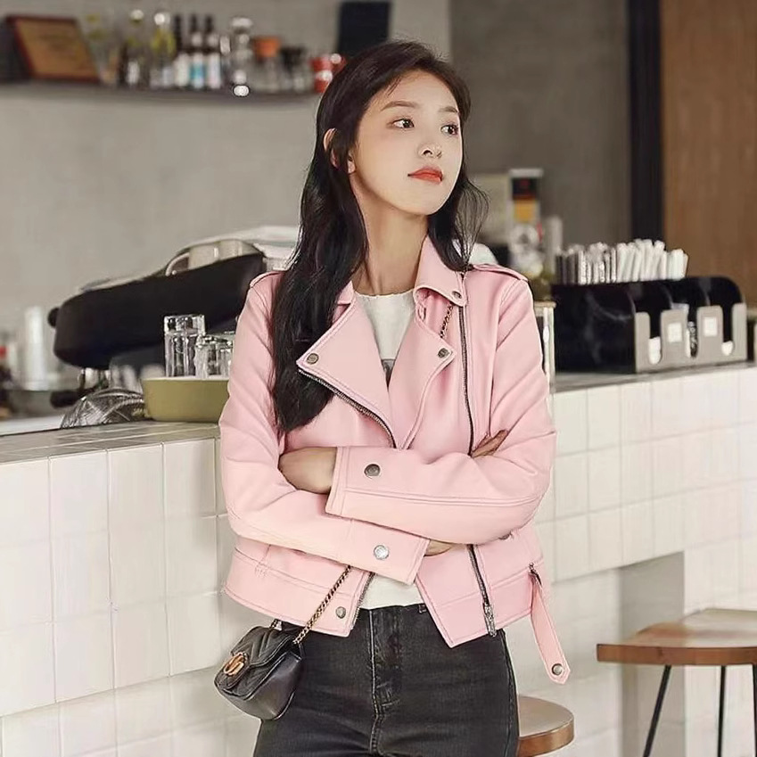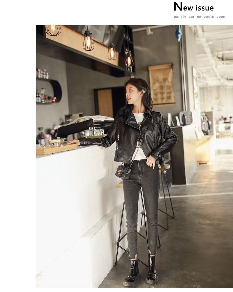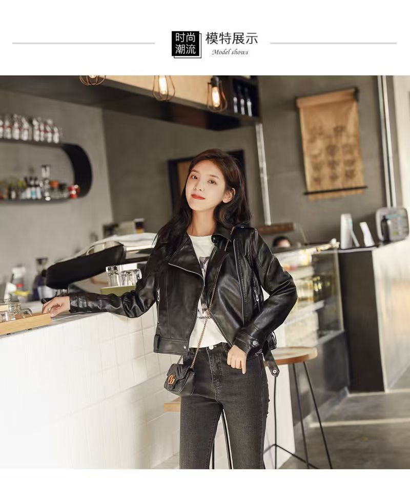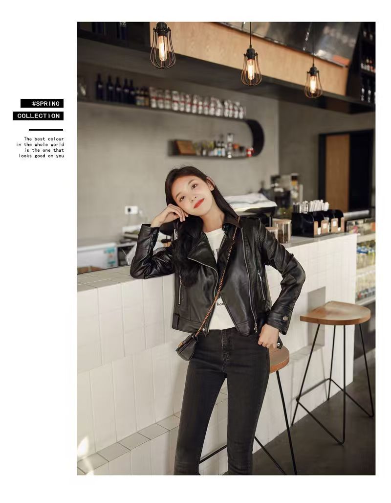 여성 가죽 자켓 여성 레귤러 스타일 2025 신상 한국 스타일 봄, 가을 다용도 슬림핏 스탠드 칼라 오토바이 가죽 자켓스토어 가기