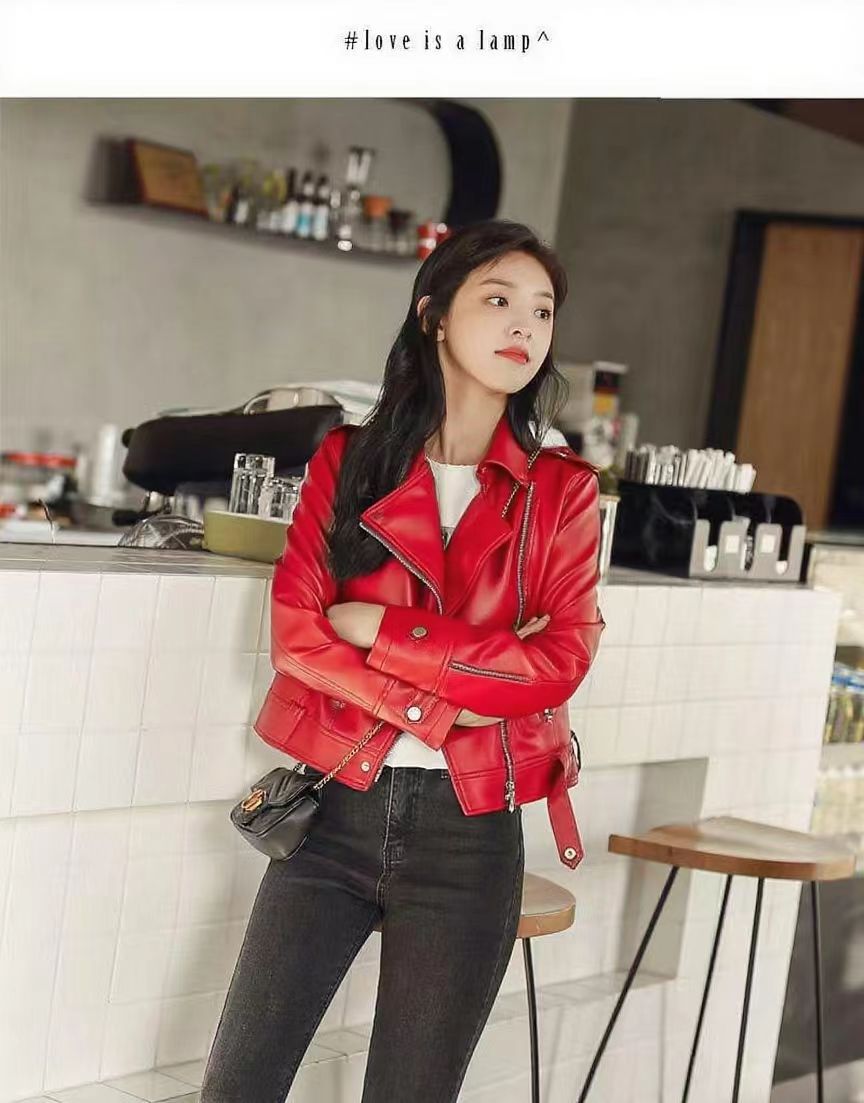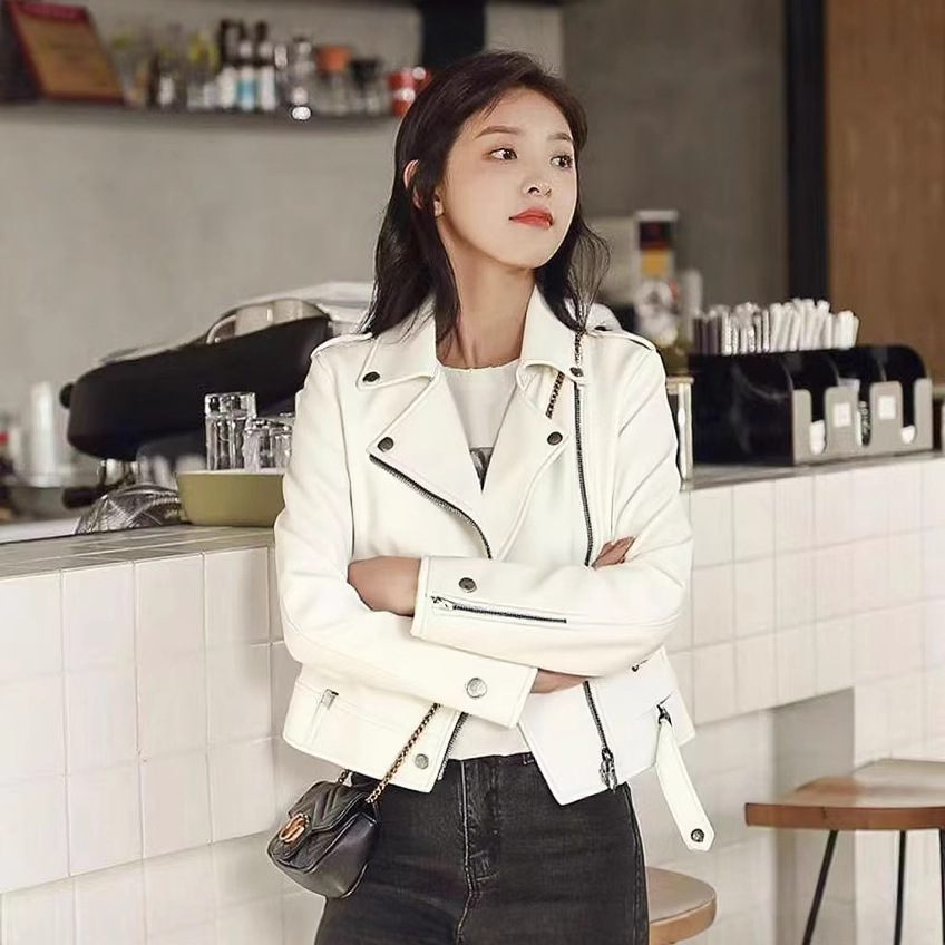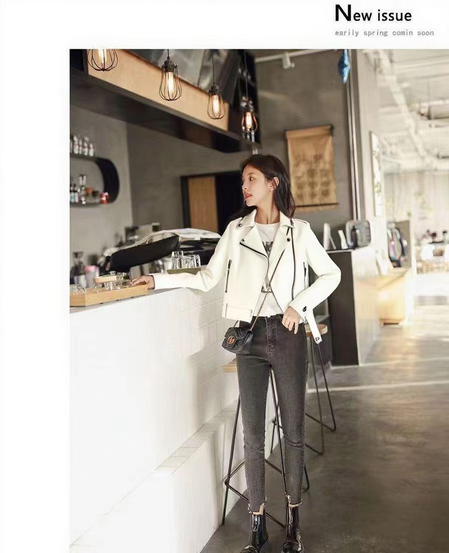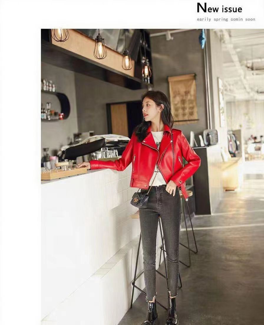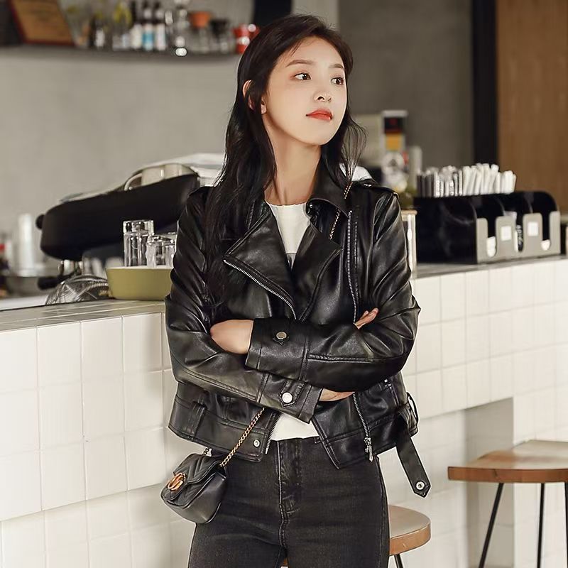 여성 가죽 자켓 여성 레귤러 스타일 2025 신상 한국 스타일 봄, 가을 다용도 슬림핏 스탠드 칼라 오토바이 가죽 자켓스토어 가기
