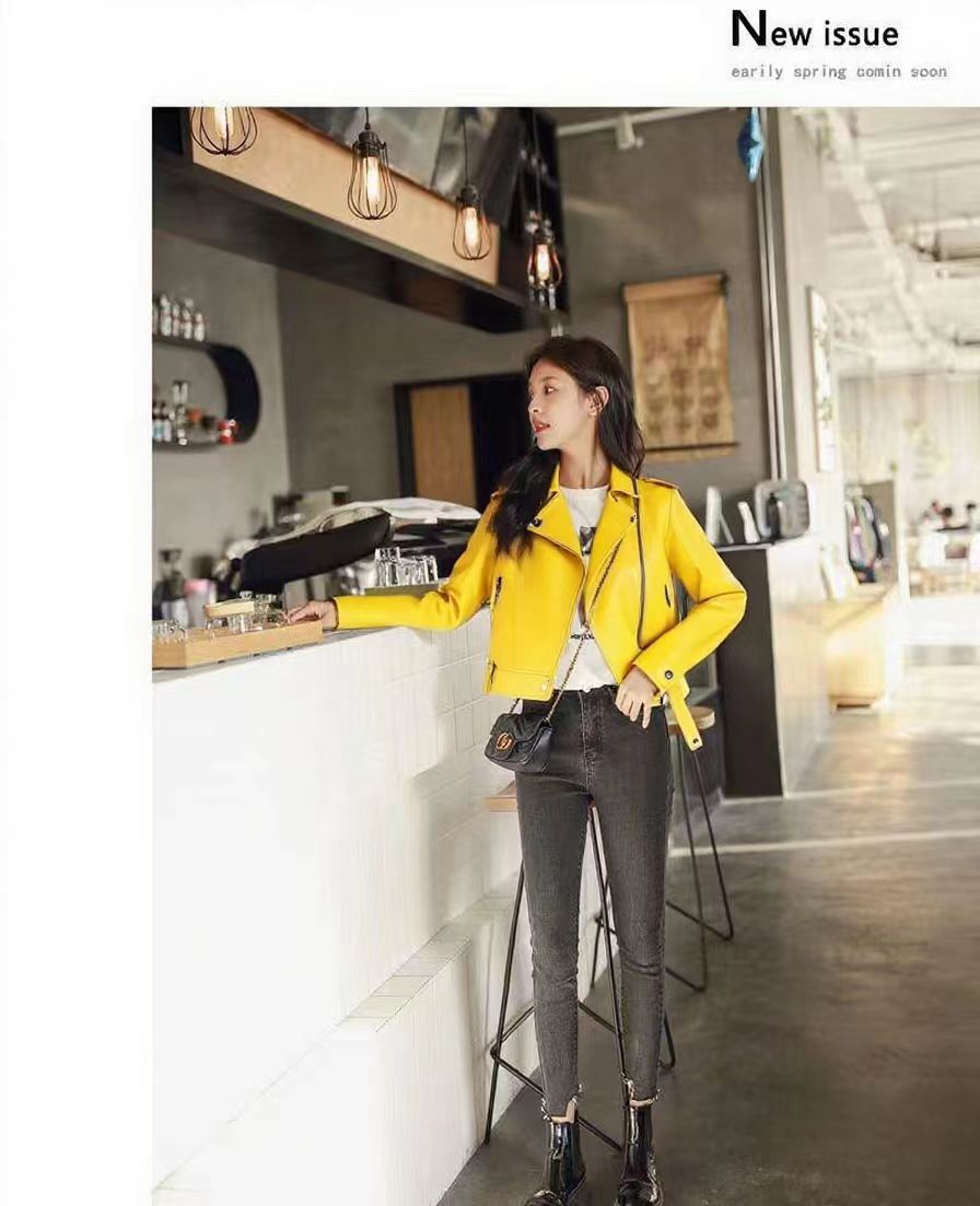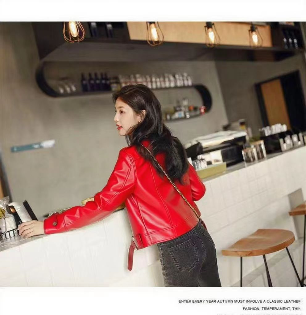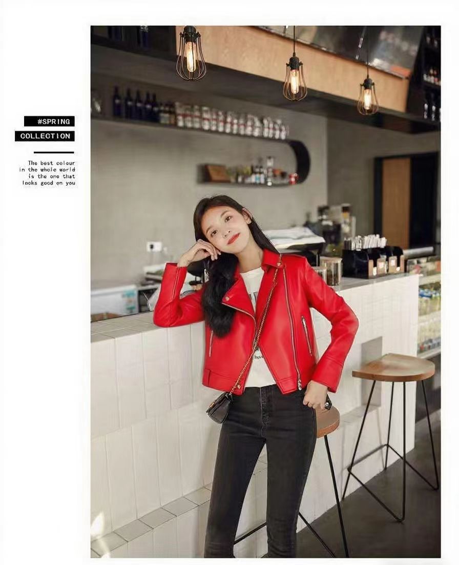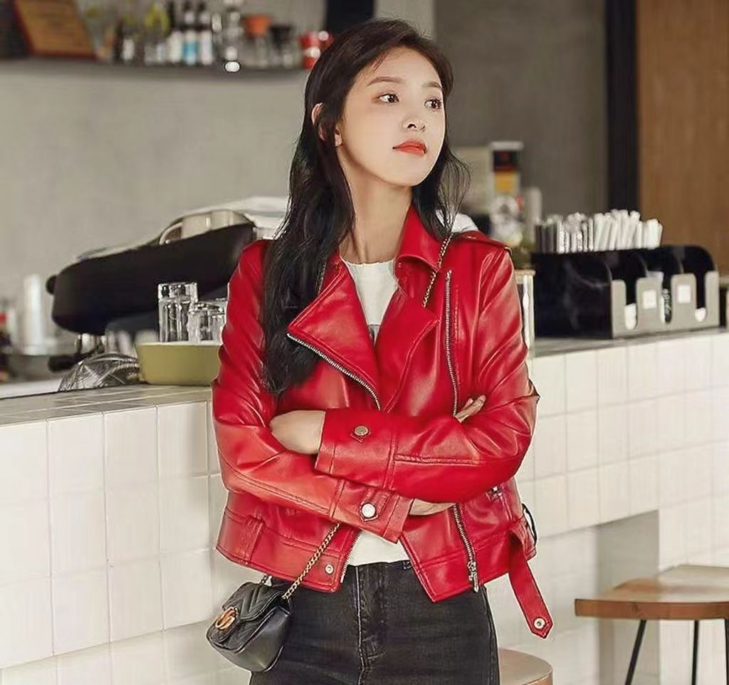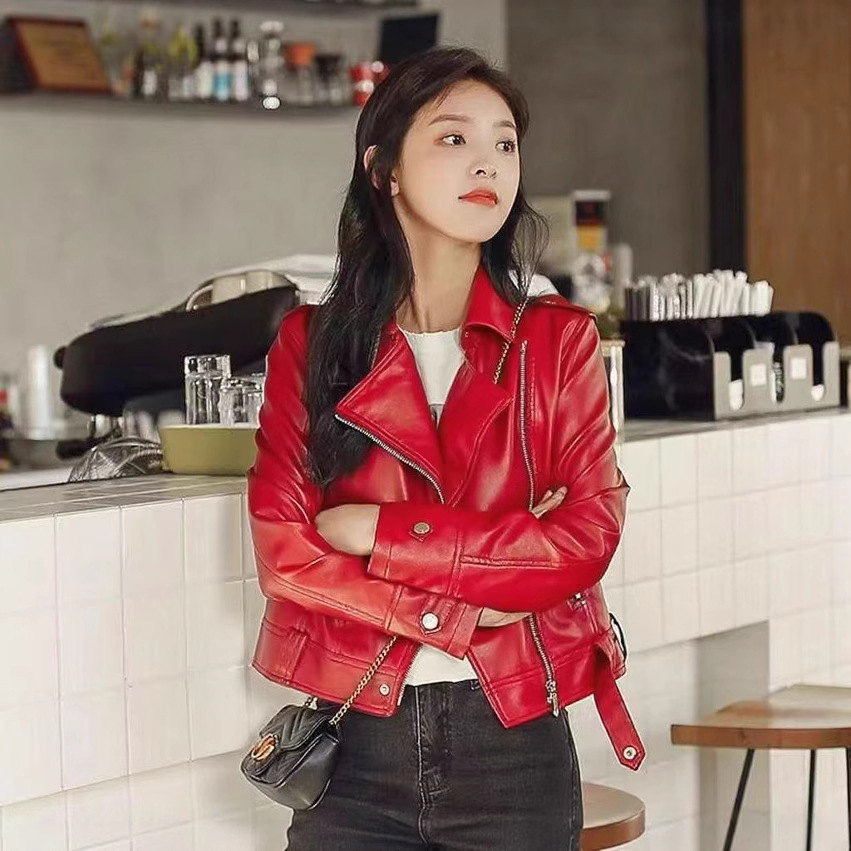 여성 가죽 자켓 여성 레귤러 스타일 2025 신상 한국 스타일 봄, 가을 다용도 슬림핏 스탠드 칼라 오토바이 가죽 자켓스토어 가기