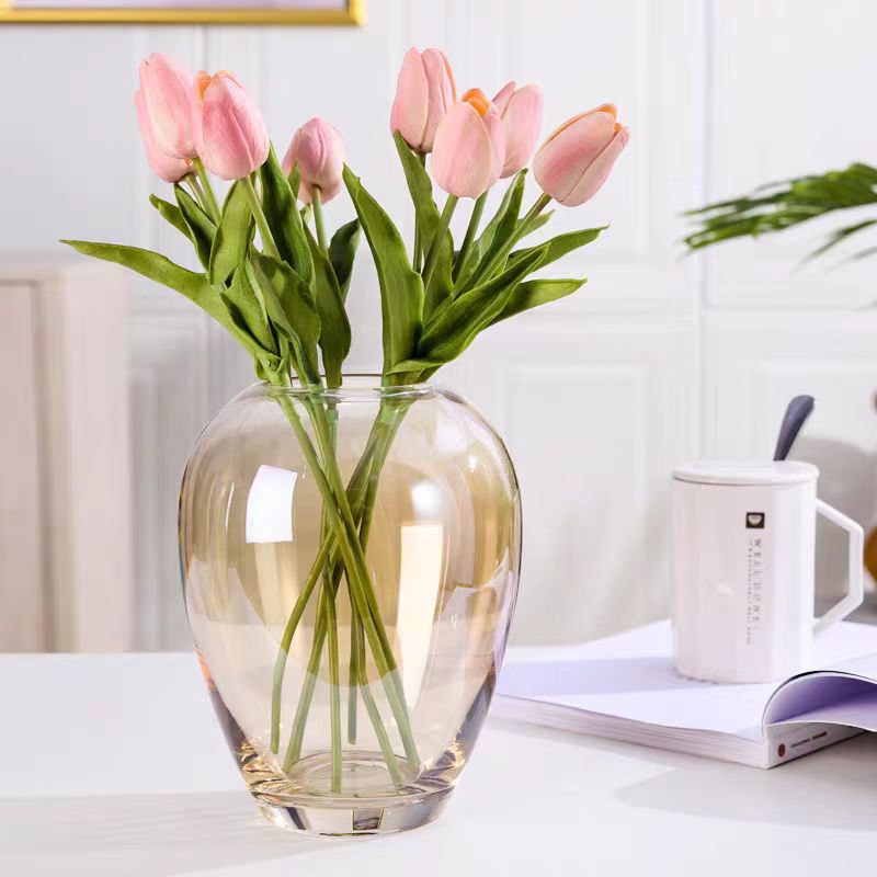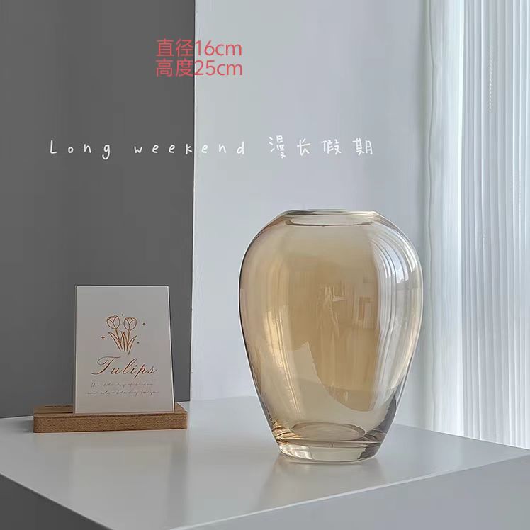 새로운 간단한 다크 브라운 투명 수제 그리드 유리 꽃병 거실 발코니 다이닝 테이블 꽃 부드러운 장식 장식스토어 가기