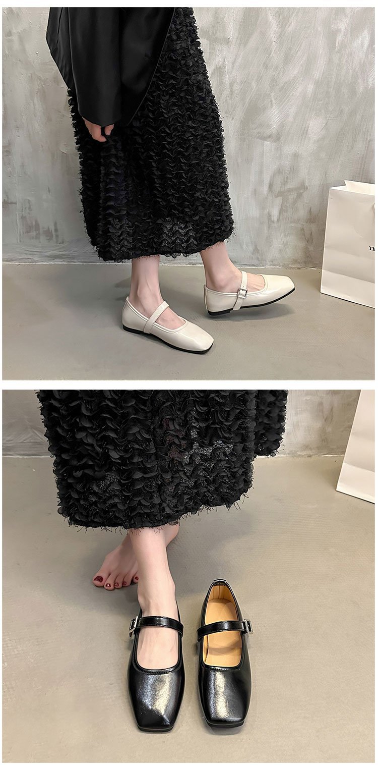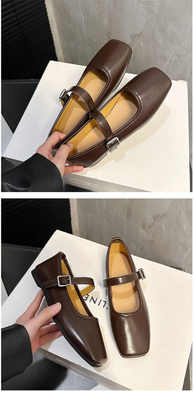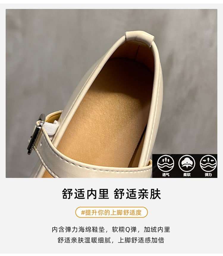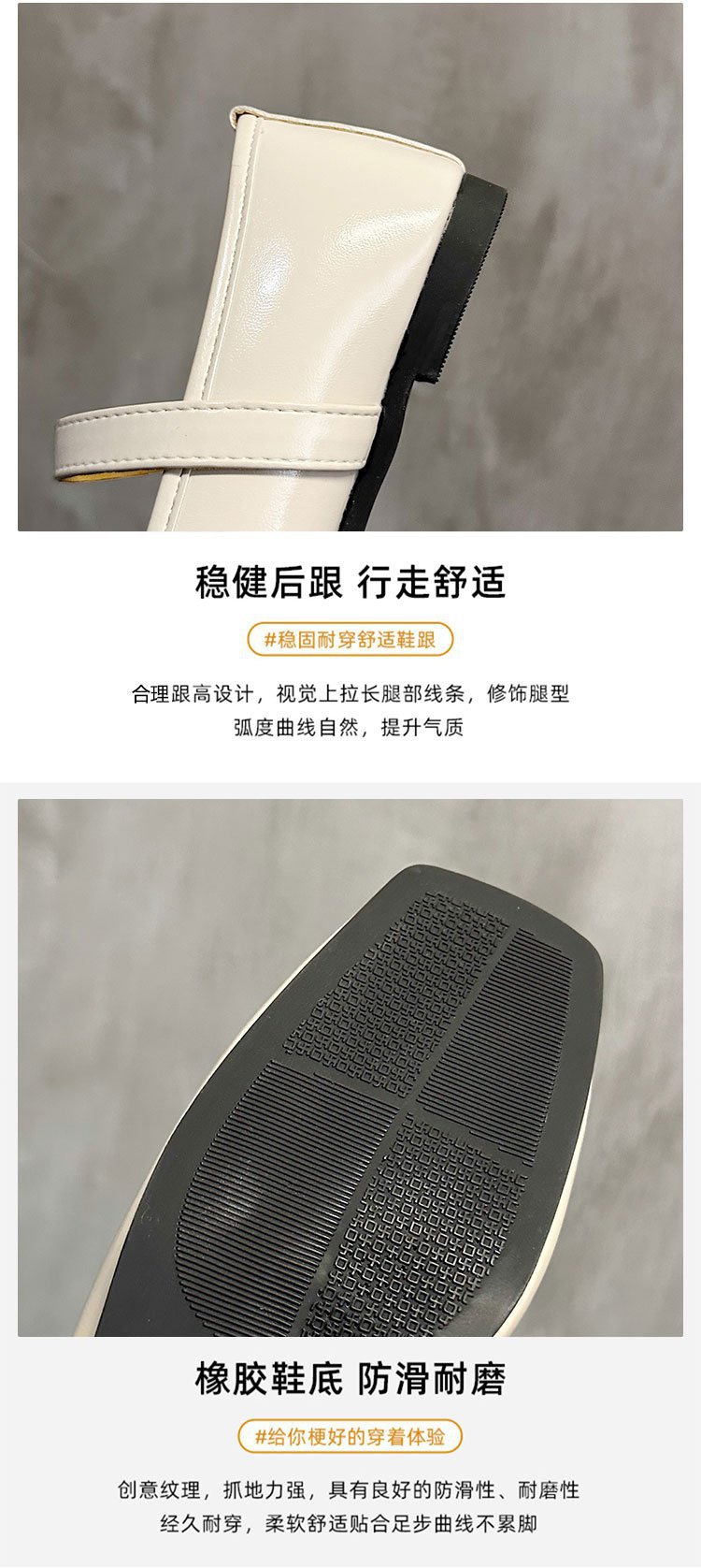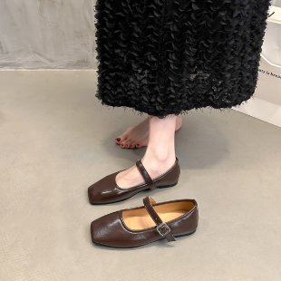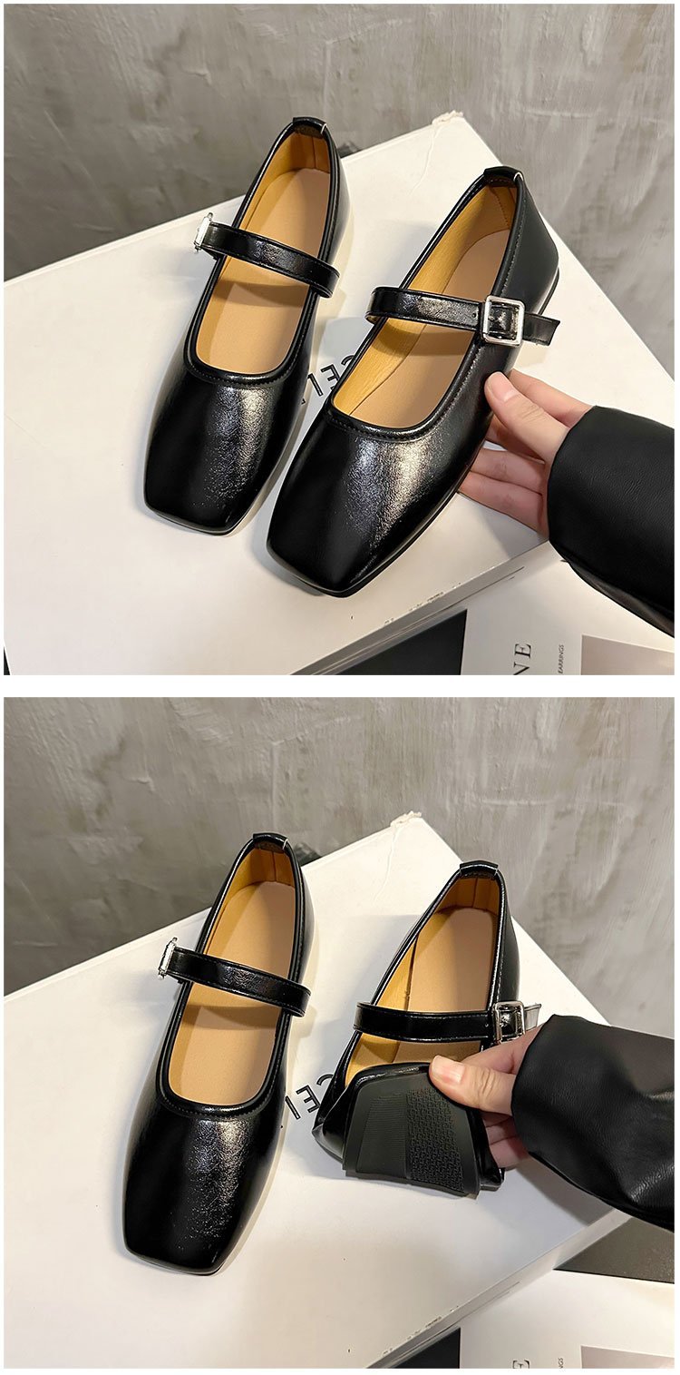 두꺼운 뒤꿈치 메리 제인 신발 2025 봄과 가을 얕은 입 광장 머리 낮은 발 뒤꿈치 싱글 레이어 신발 간단한 올 매치 편안한 가죽 신발스토어 가기
