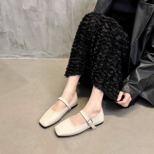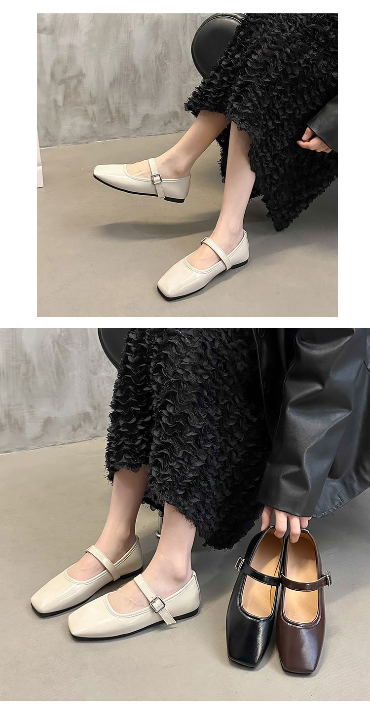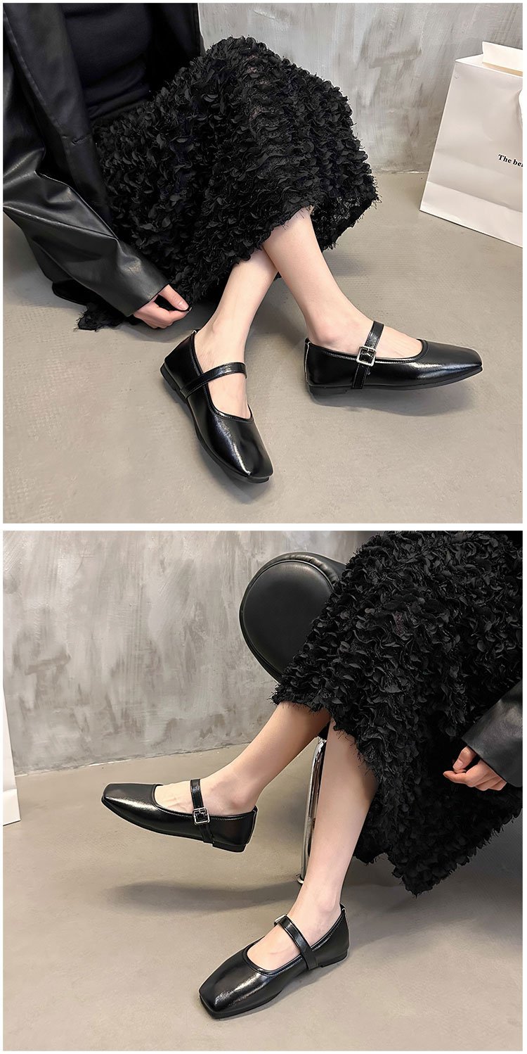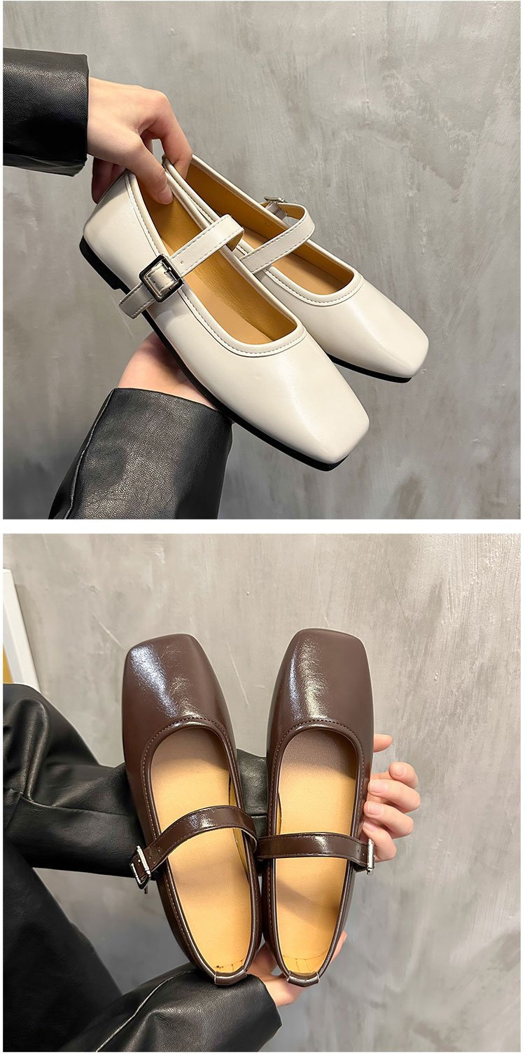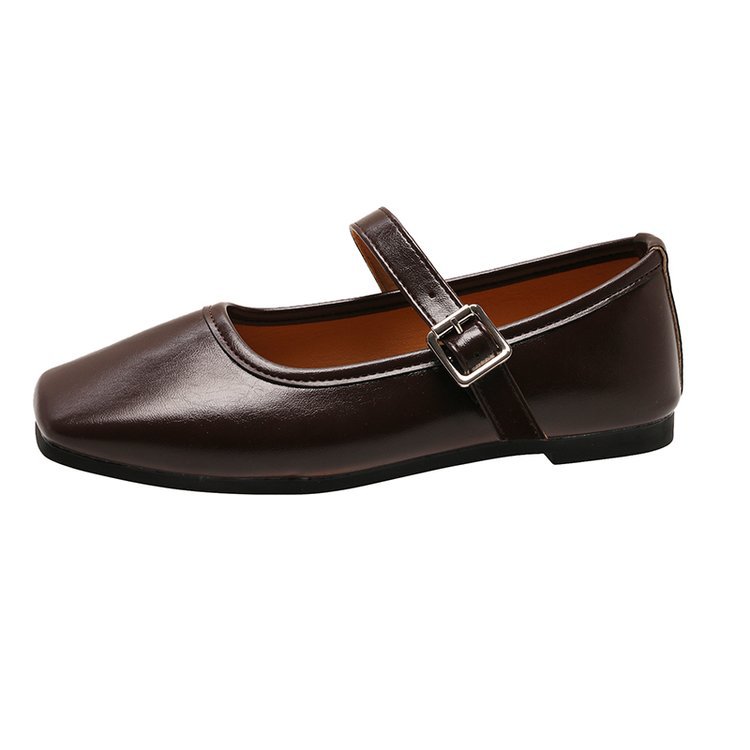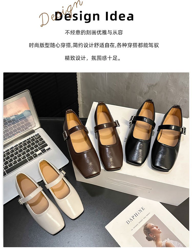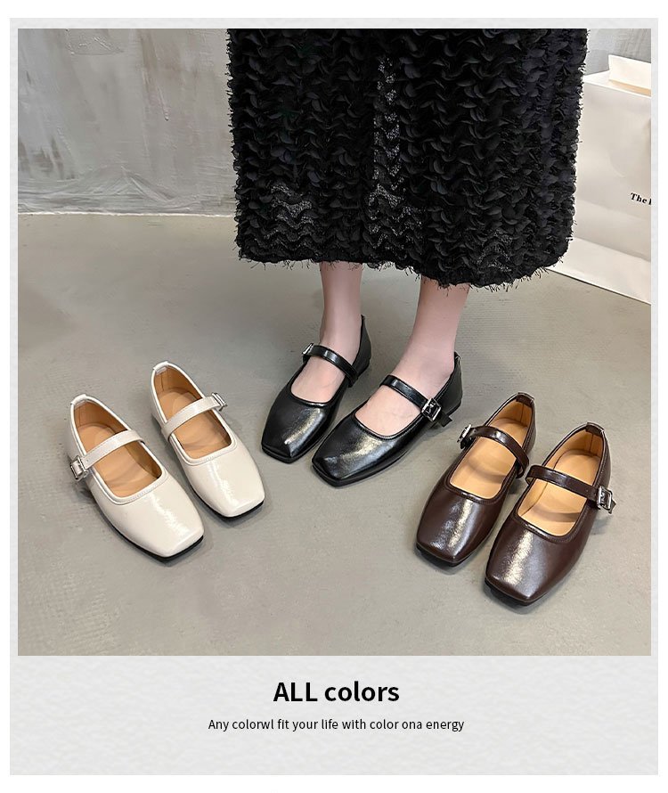 두꺼운 뒤꿈치 메리 제인 신발 2025 봄과 가을 얕은 입 광장 머리 낮은 발 뒤꿈치 싱글 레이어 신발 간단한 올 매치 편안한 가죽 신발스토어 가기