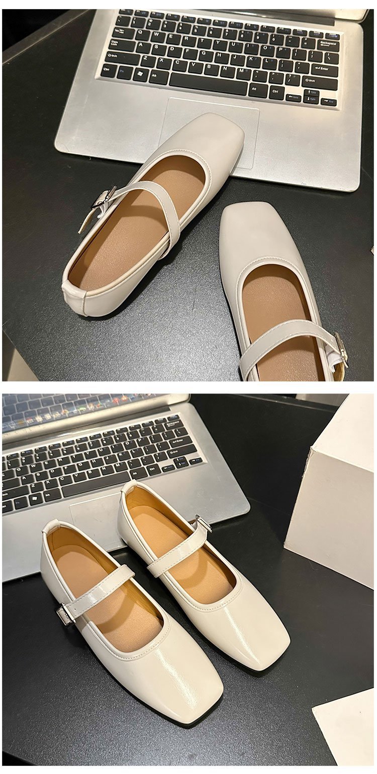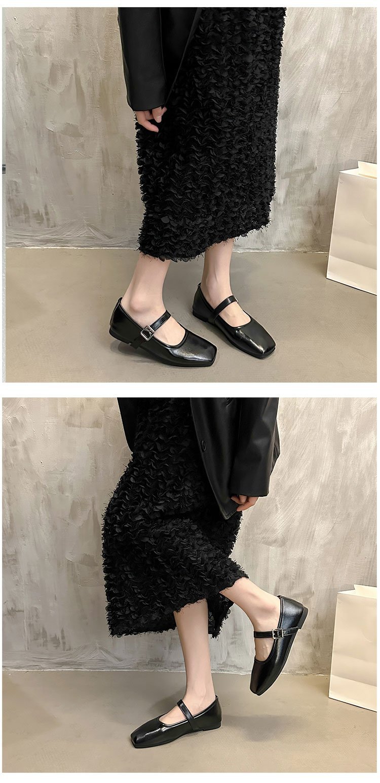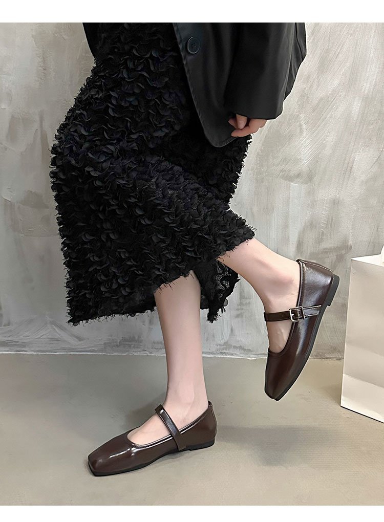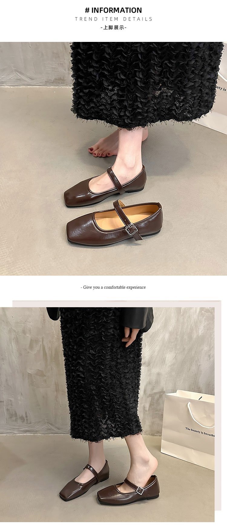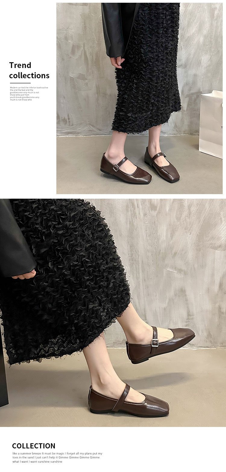 두꺼운 뒤꿈치 메리 제인 신발 2025 봄과 가을 얕은 입 광장 머리 낮은 발 뒤꿈치 싱글 레이어 신발 간단한 올 매치 편안한 가죽 신발스토어 가기