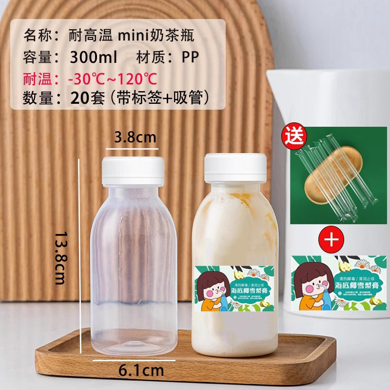 • 300ml 고온 방지 병 20개, 무료 흰색 캡 + 빨대 + 스티커