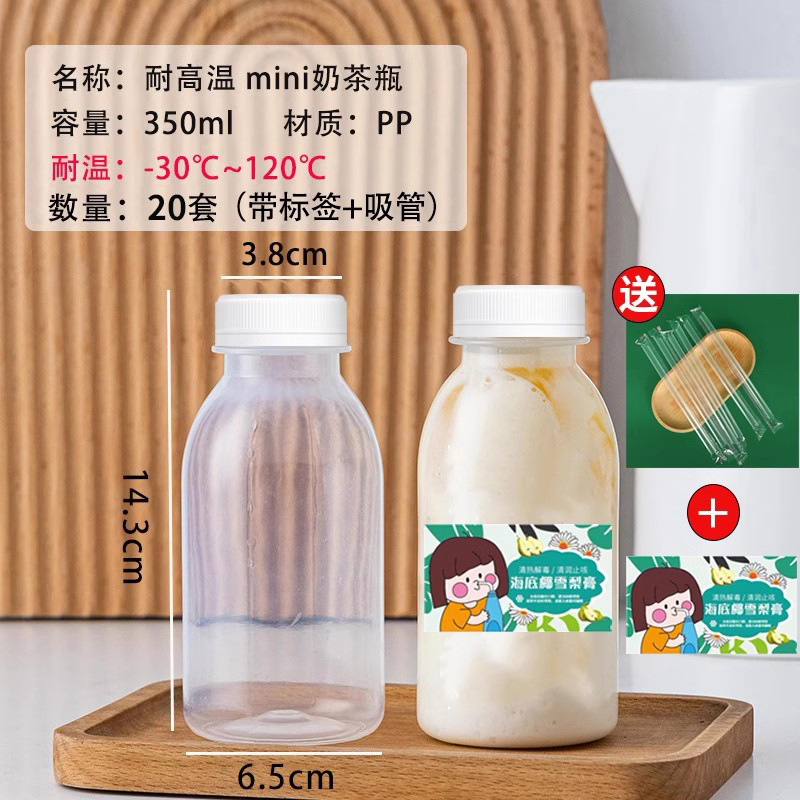 • 350ml 고온 방지 병 20개, 무료 흰색 캡 + 빨대 + 스티커