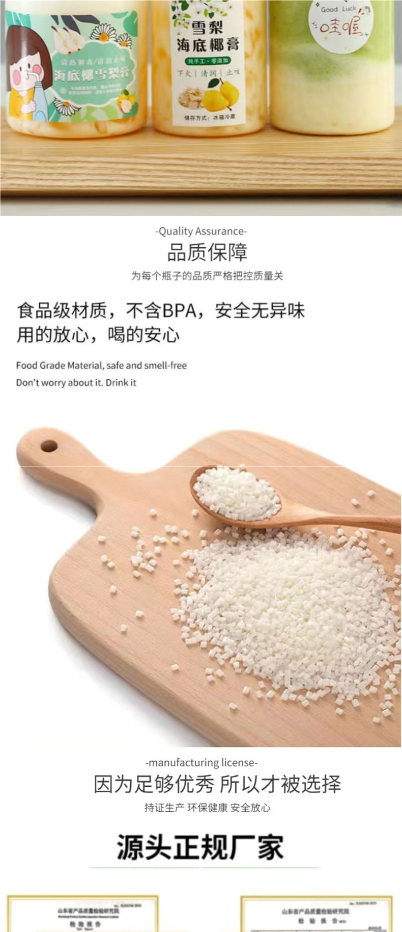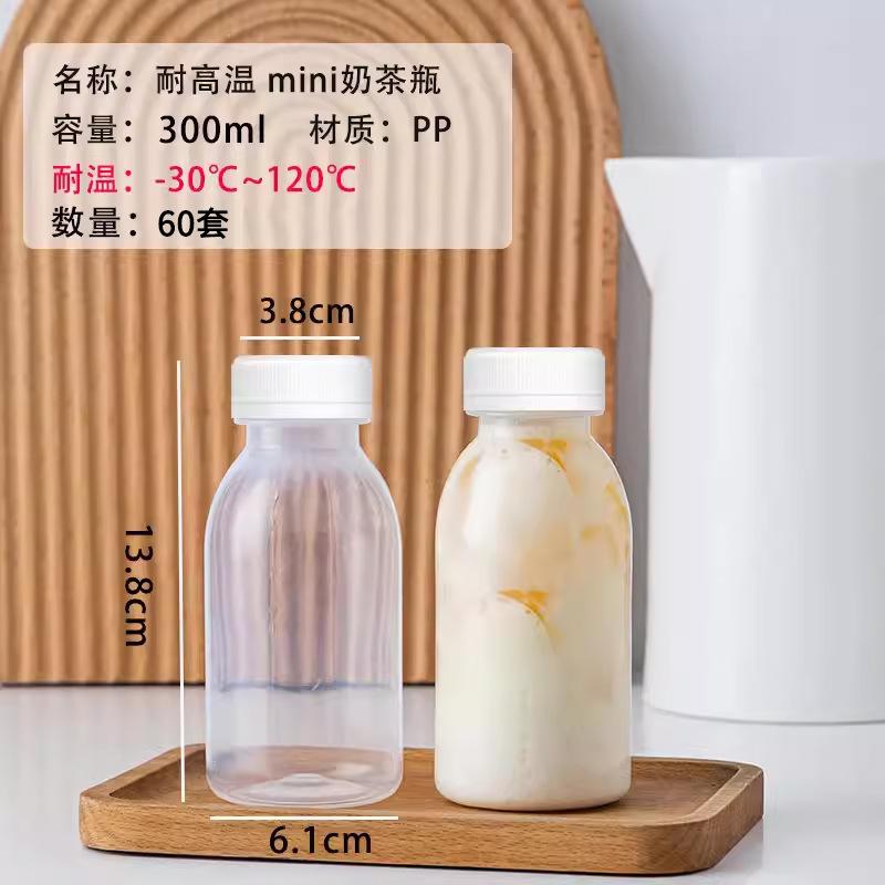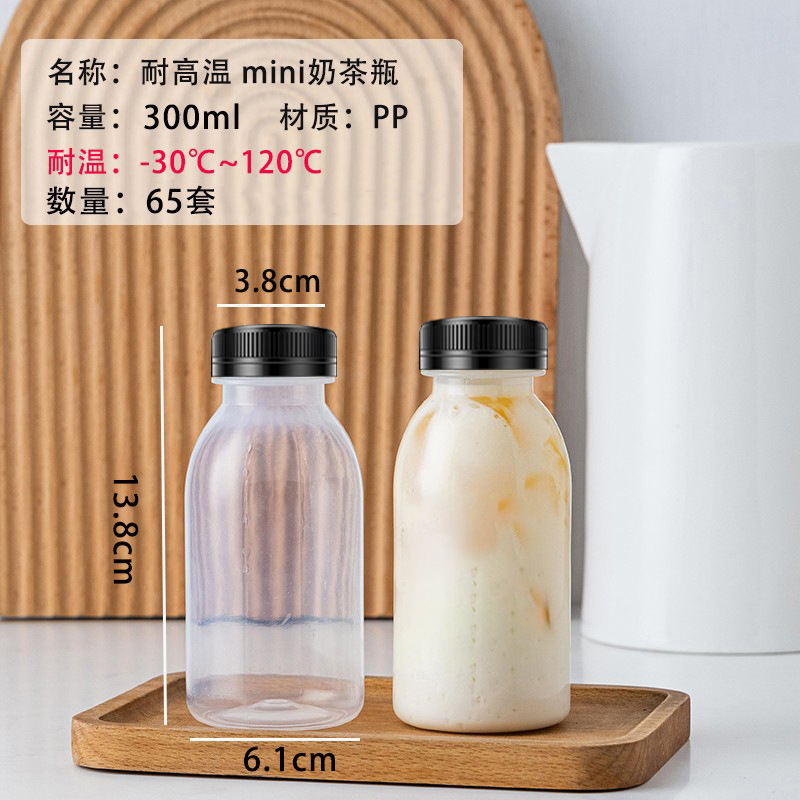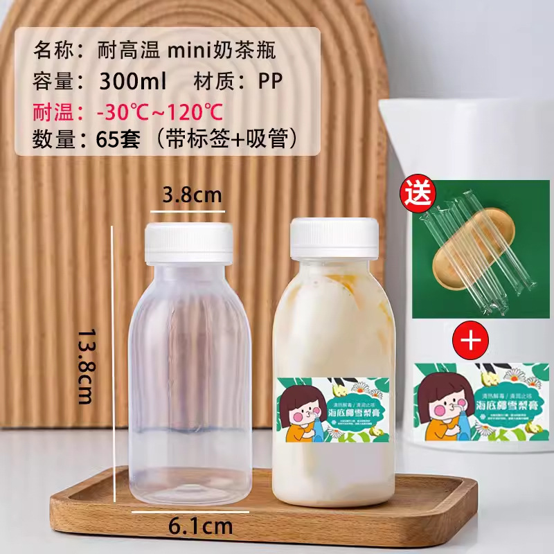 • 300ml 두꺼운 고온 방지 병 65개, 무료 흰색 캡 + 빨대 + 스티커