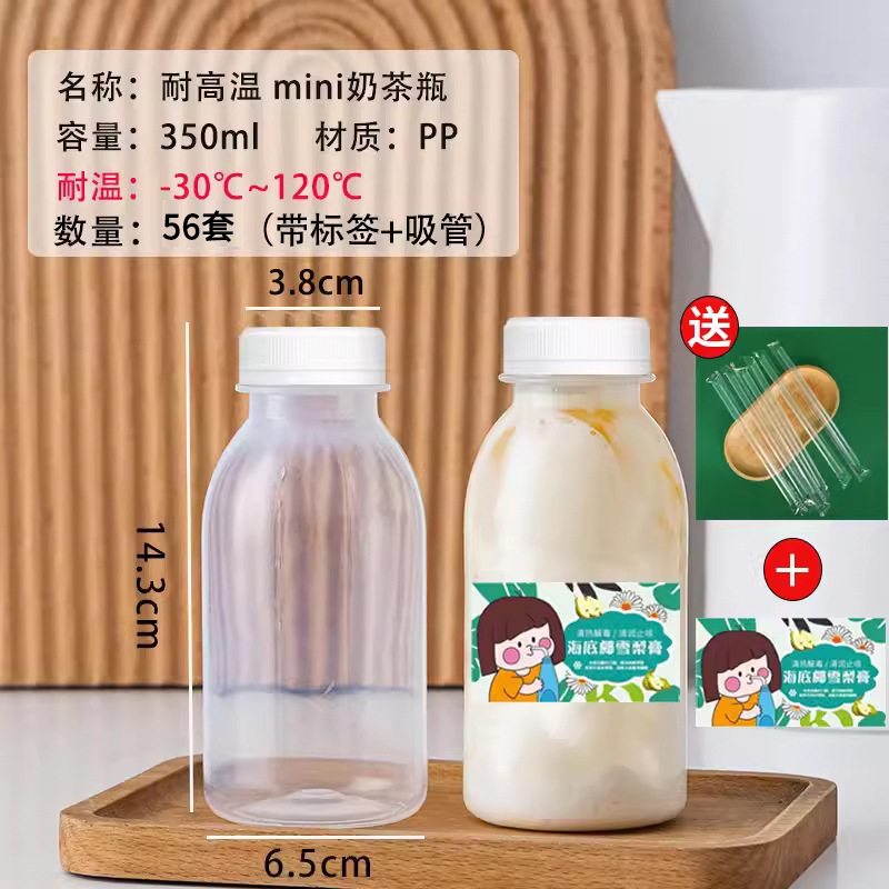 • 350ml 두꺼운 고온 방지 병 58개, 무료 흰색 캡 + 빨대 + 스티커