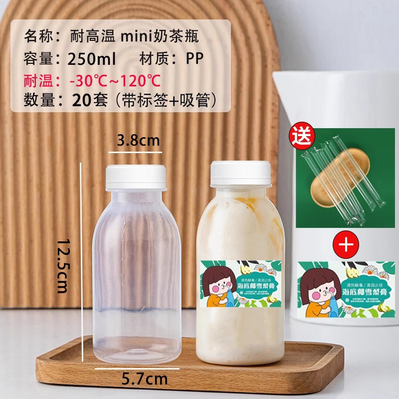 • 250ml 고온 방지 병 20개, 무료 흰색 캡 + 빨대 + 스티커
