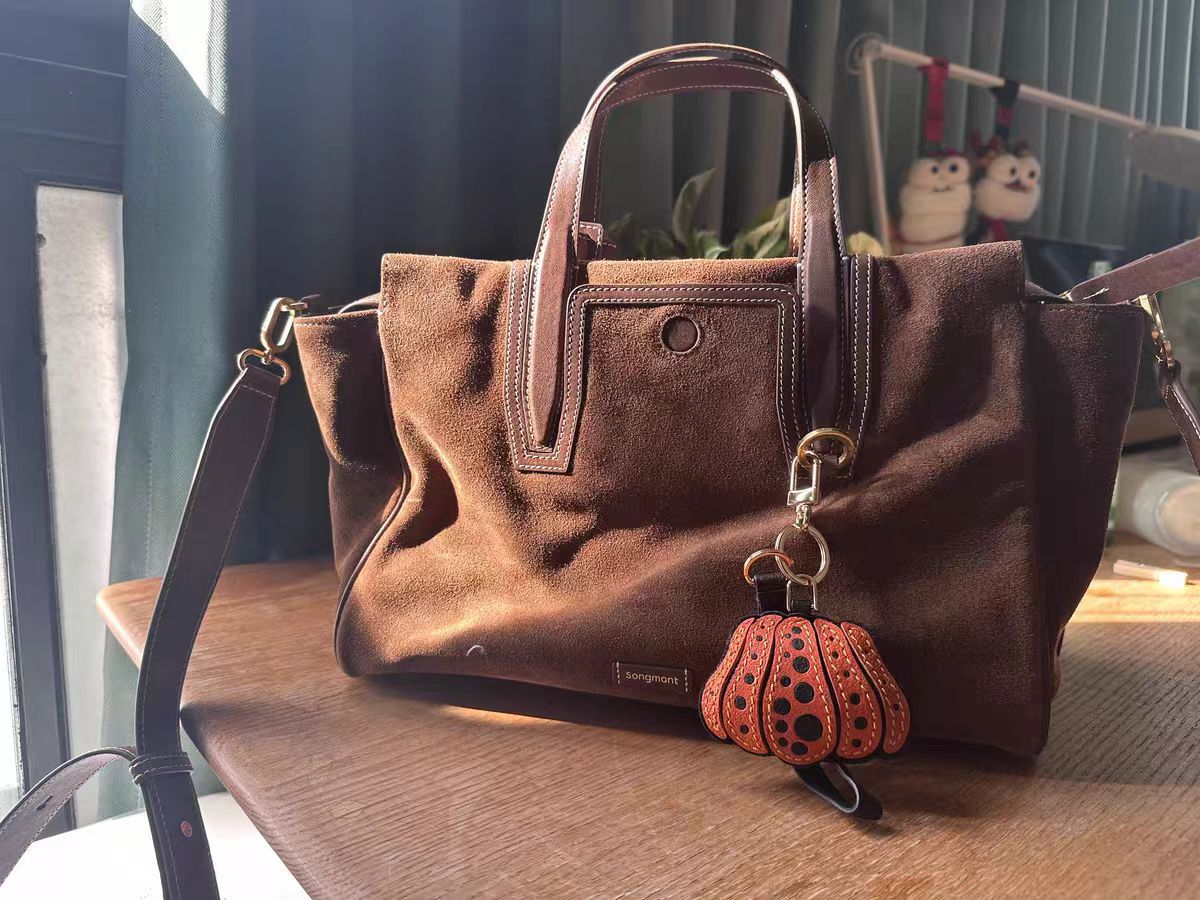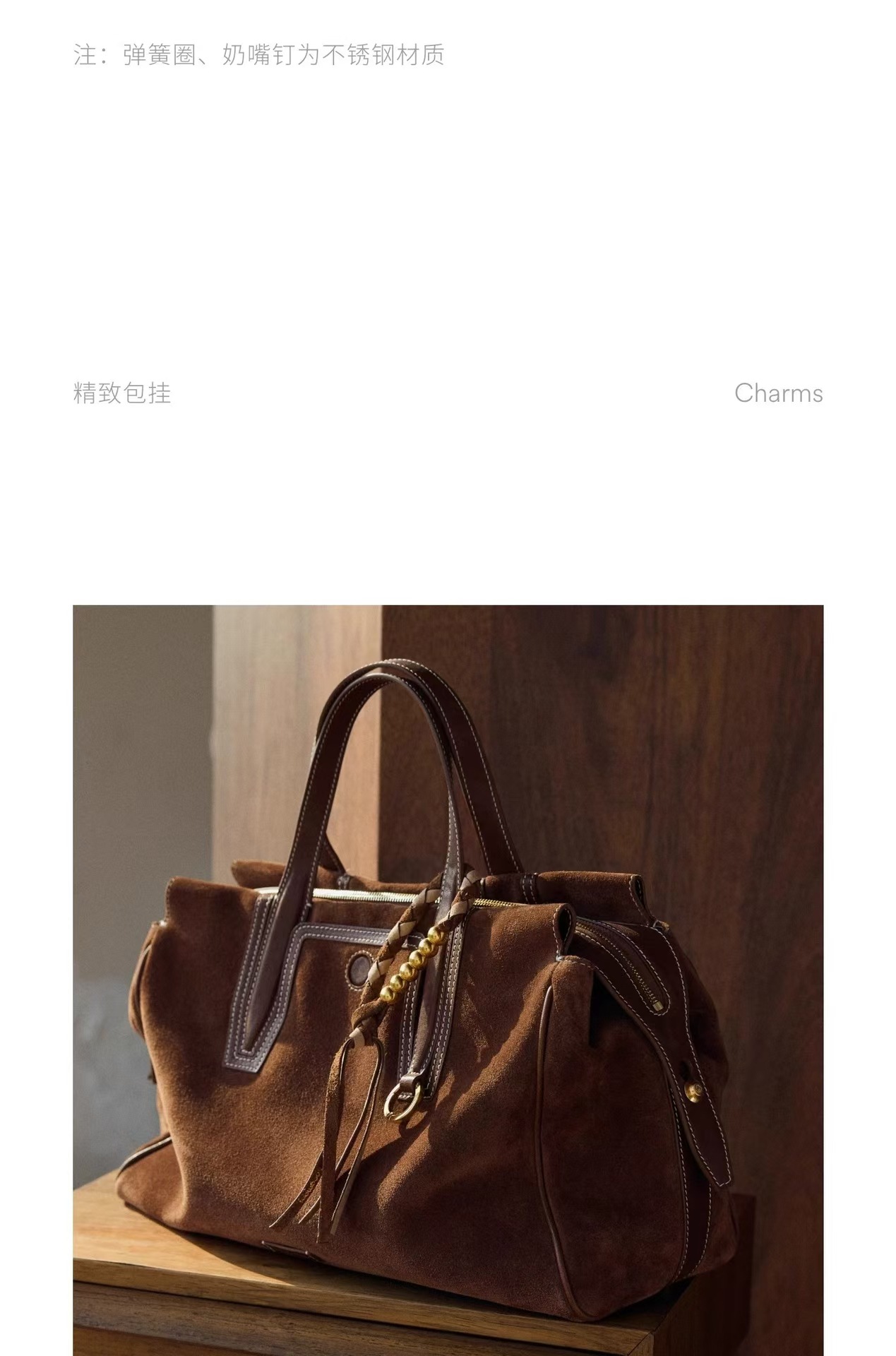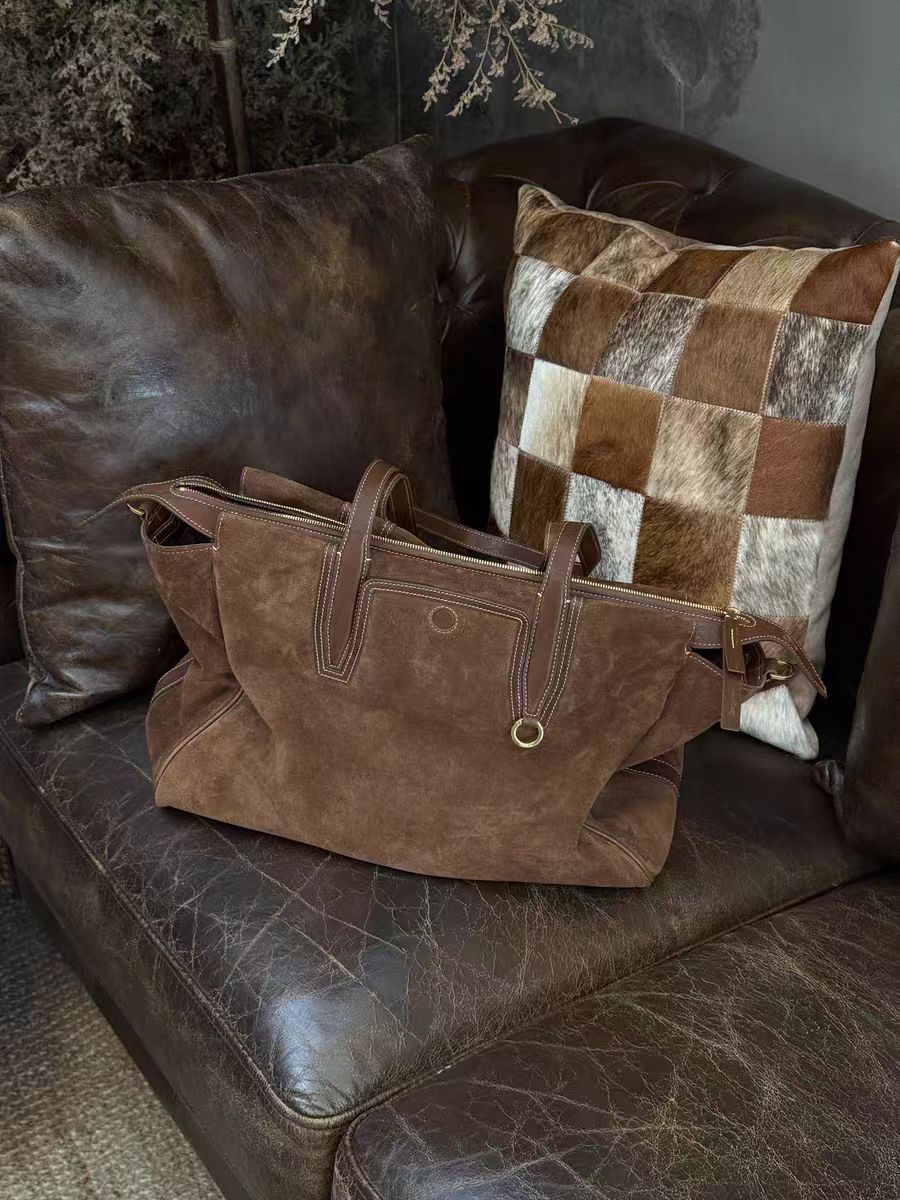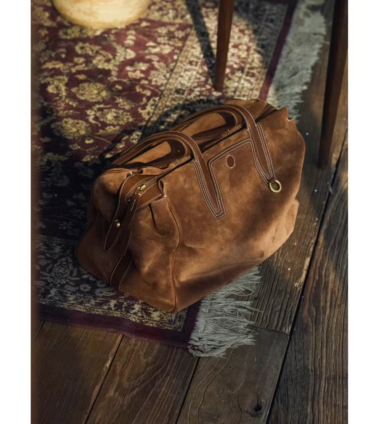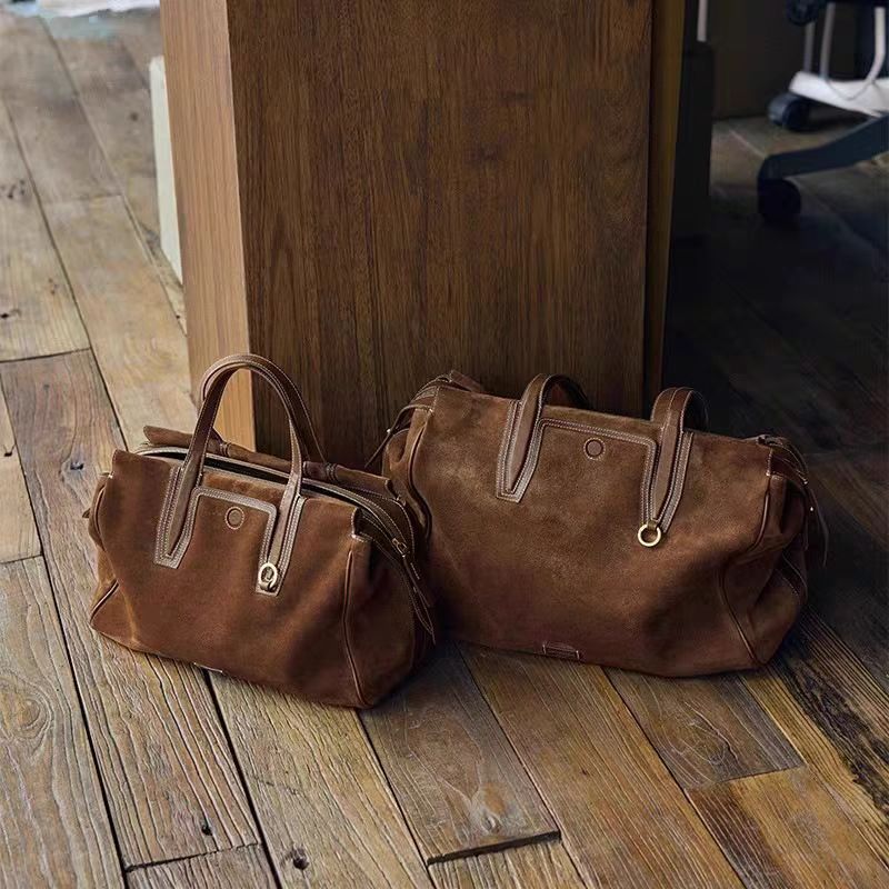 송 순이 스웨이드 가죽 보스턴 여행 가방