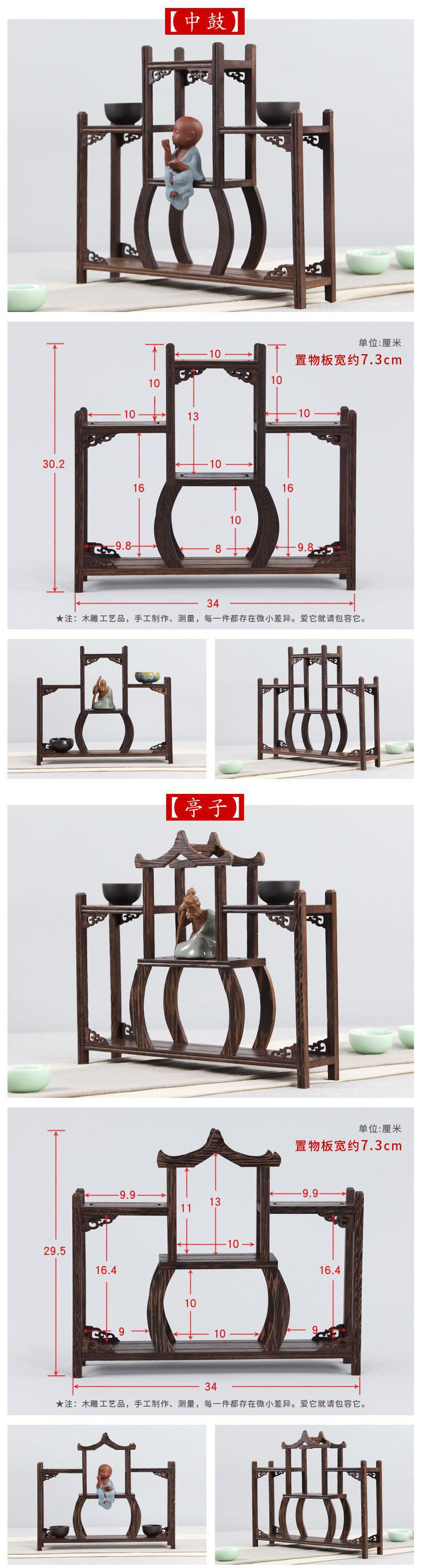 치킨 날개 나무 작은 골동품 랙 장식품 솔리드 우드 중국 스타일 티 컵 티 세트 랙 퍼플 샌드 주전자 전시회 진쑤언스토어 가기
